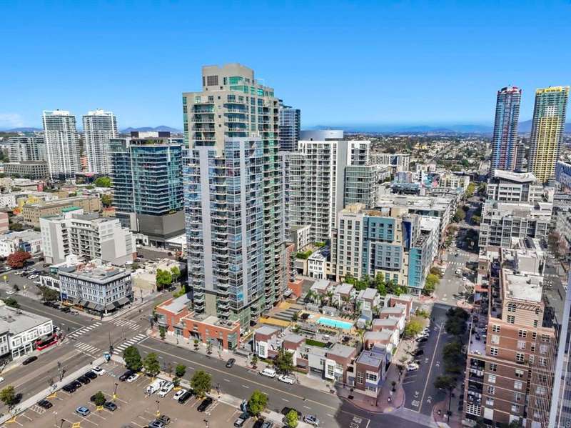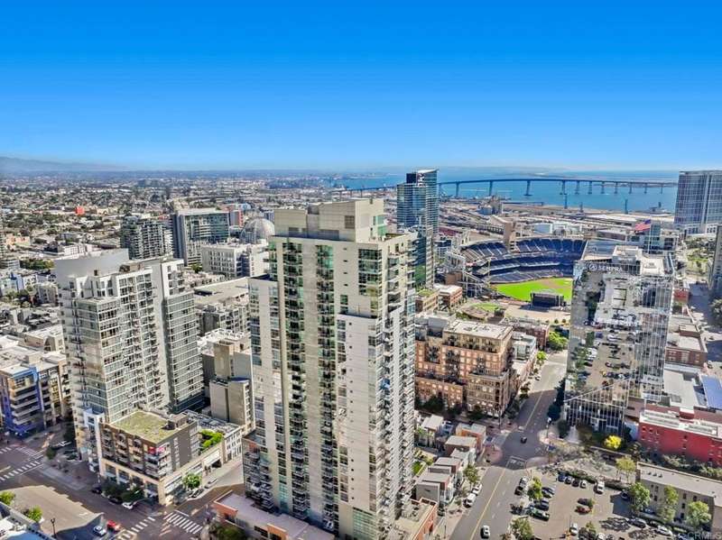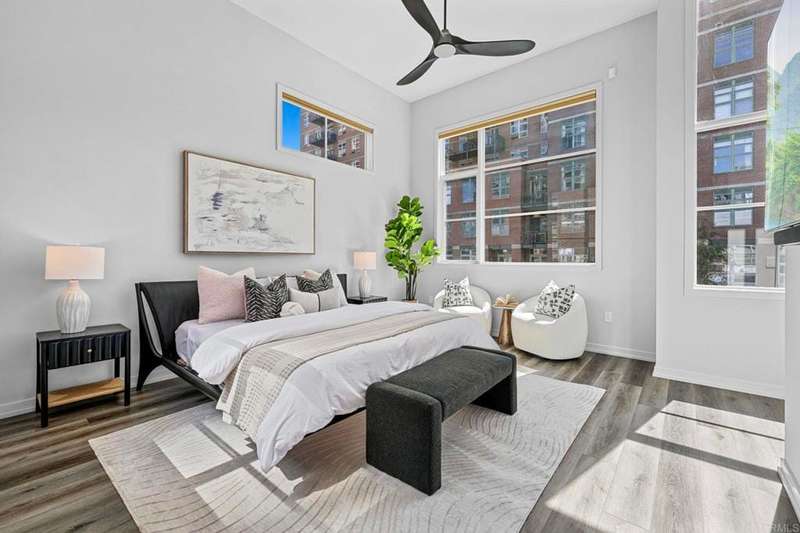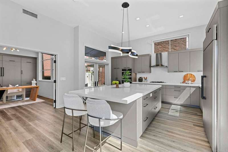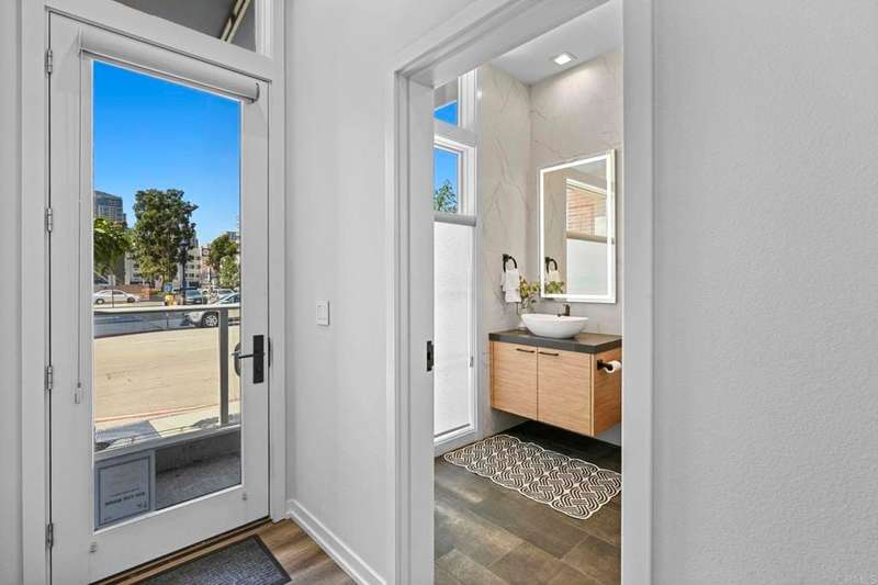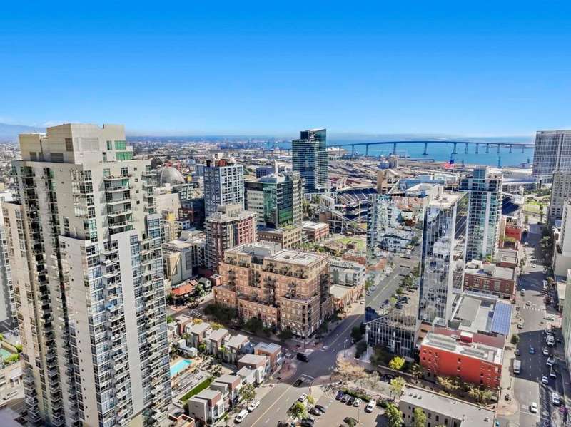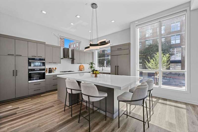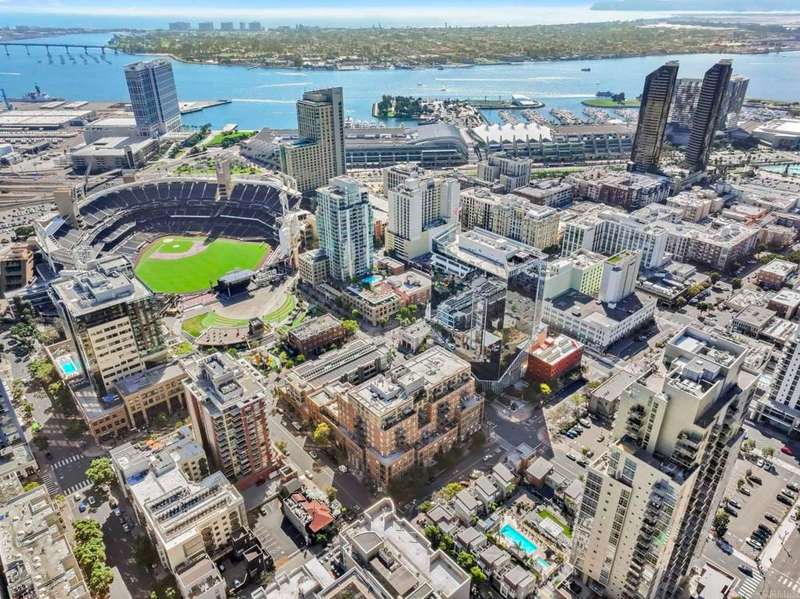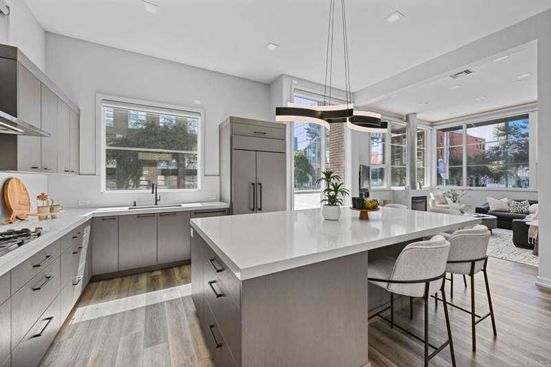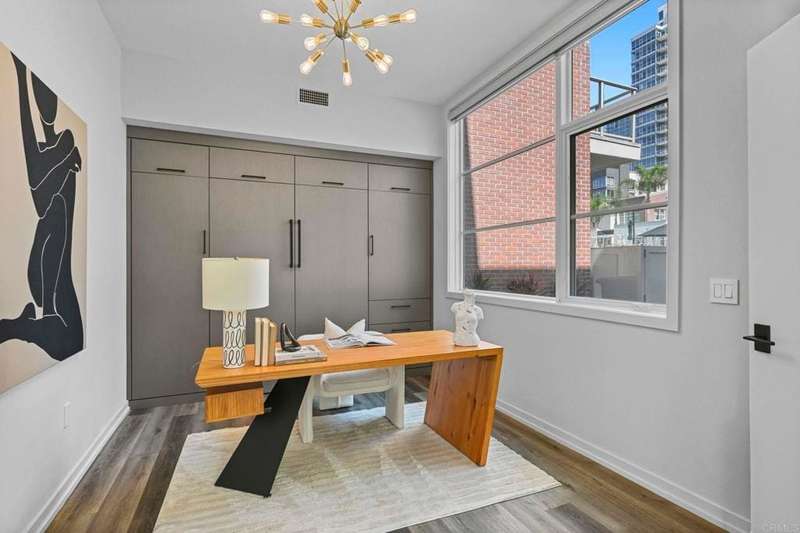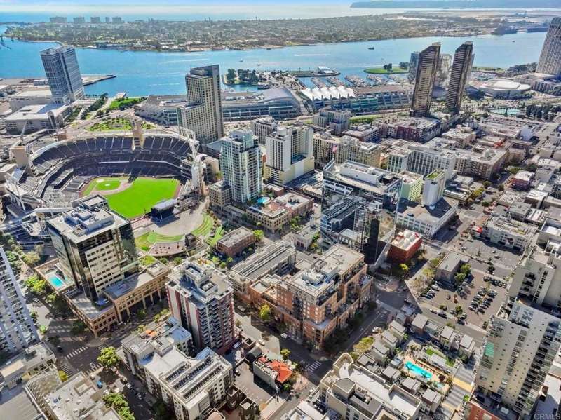 Rare Opportunity at The Mark - Premier Townhome - One of only 11 townhomes at The Mark, this corner residence is among the most covetedfeaturing one of the largest floor plans and most private patios in the community. Fully renovated with over 1,700 sq. ft. of modern living space, this 2 bed / 2 bath home is a rare East Village find: on a quieter street tucked away, yet just steps from Petco Park, dining, and nightlife. Vaulted ceilings, expansive windows, and automated Hunter Douglas blinds create a bright, inviting ambiance. The chefs kitchen is a showpiece with Sub-Zero refrigeration, Miele Combi Steam double ovens, custom cabinetry, and an oversized quartz island designed for entertaining. The spacious primary suite offers a walk-in closet, spa-style bath, and soaking tub. Every detail has been thoughtfully upgradedfrom custom stone bathroom floors and showers to built-ins, a Murphy bed, and plentiful storage throughout. Enjoy glimpses of Petco Park right from your home. And while in the heart of it all, youll feel tucked away in your two-story retreat, elevated just above street level for a sense of privacy and escape. Convenient dual access from the street or private interior courtyard leads directly to the elevator, parking, and amenities. The home includes two garage parking spaces and a private storage unit. The Mark itself is renowned for its luxury resort-style offerings: a lap pool, spa, BBQ area, fitness center, 24-hour concierge, and impeccably maintained grounds. This exquisitely finished turnkey townhome stands apartperfect for those seeking the ideal balance of urban energy, privacy, and refined comfort.