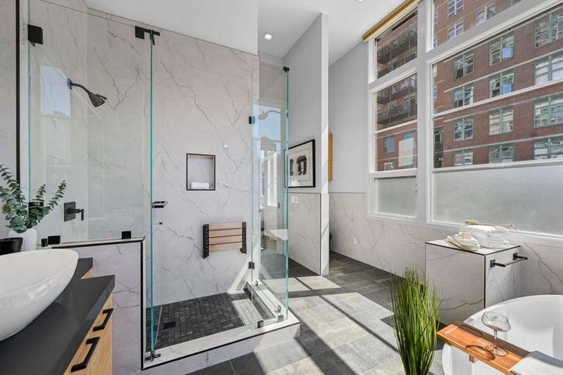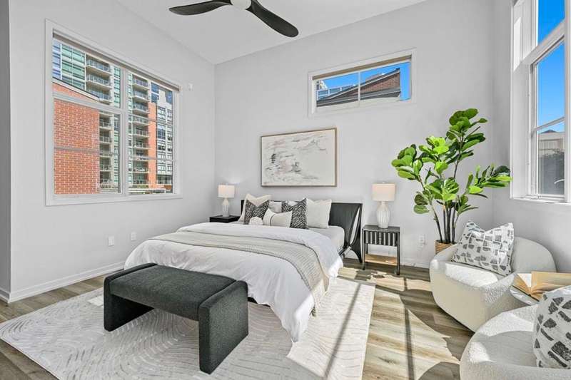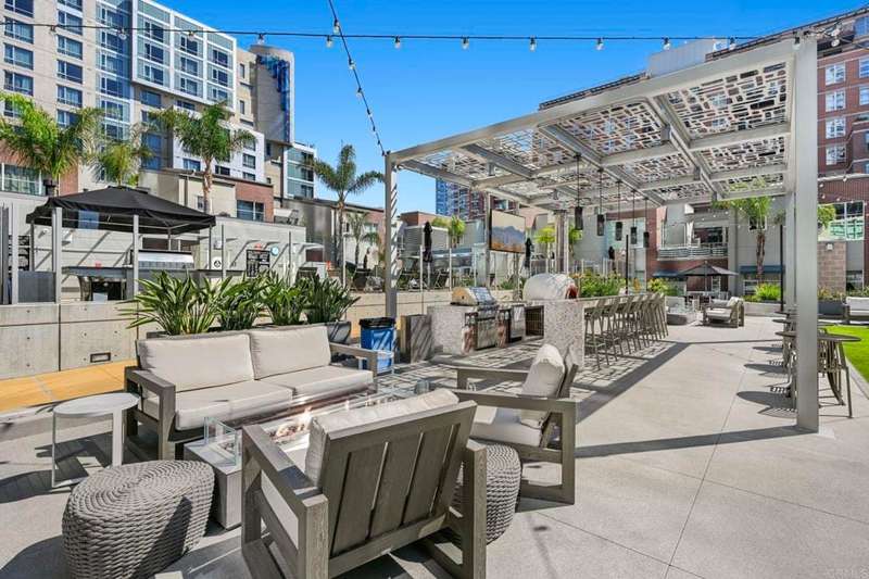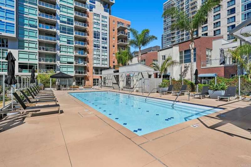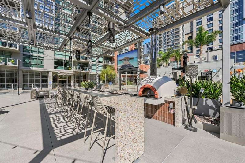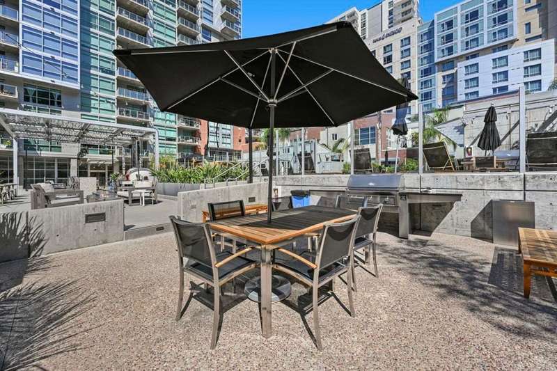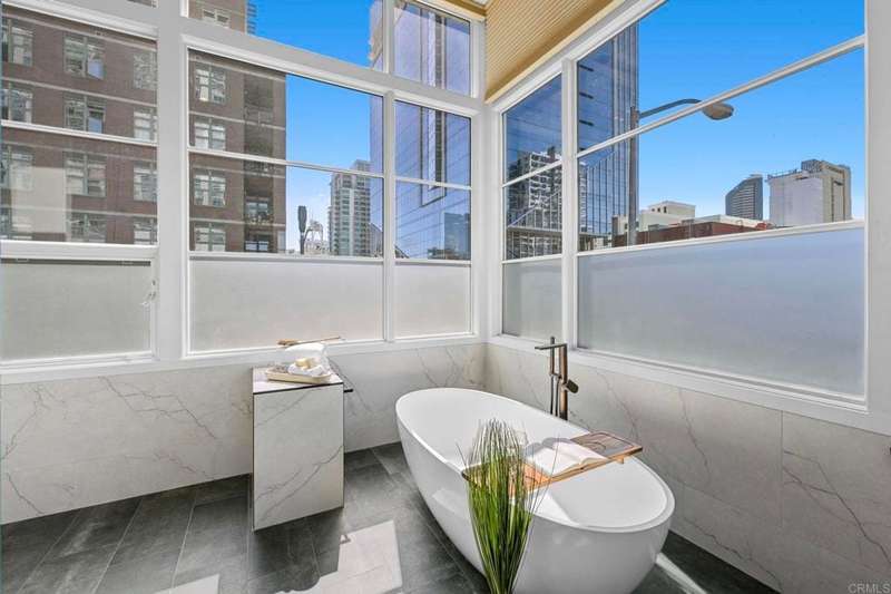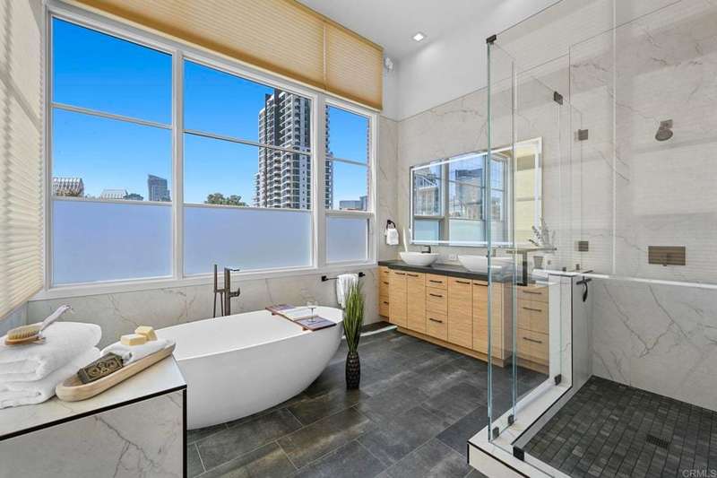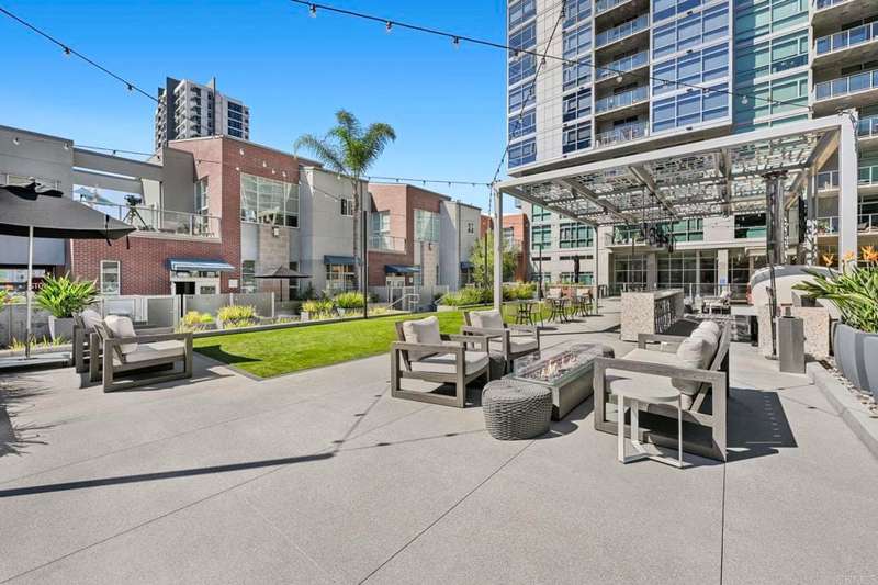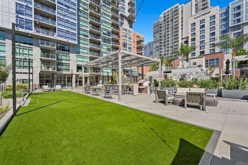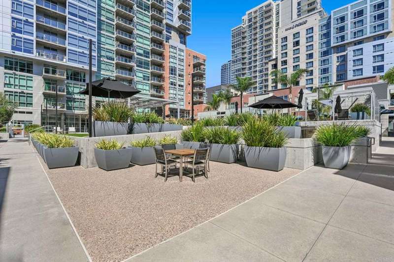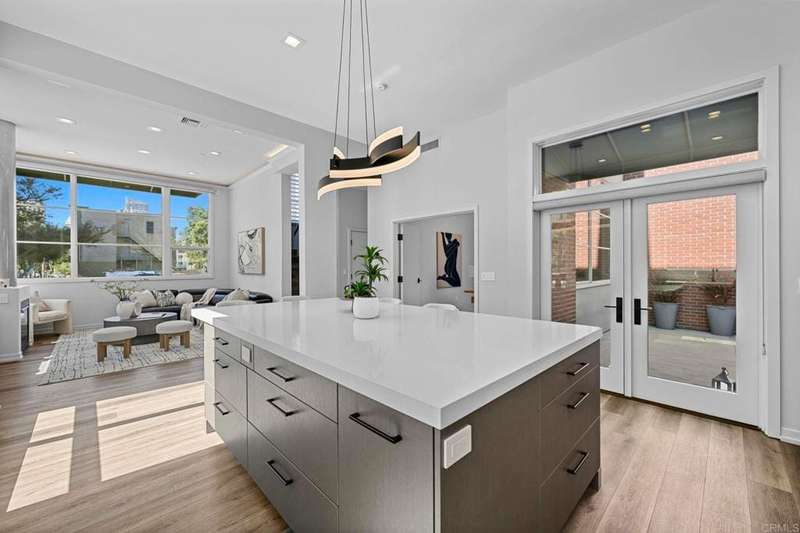 Rare Opportunity at The Mark - Premier Townhome - One of only 11 townhomes at The Mark, this corner residence is among the most covetedfeaturing one of the largest floor plans and most private patios in the community. Fully renovated with over 1,700 sq. ft. of modern living space, this 2 bed / 2 bath home is a rare East Village find: on a quieter street tucked away, yet just steps from Petco Park, dining, and nightlife. Vaulted ceilings, expansive windows, and automated Hunter Douglas blinds create a bright, inviting ambiance. The chefs kitchen is a showpiece with Sub-Zero refrigeration, Miele Combi Steam double ovens, custom cabinetry, and an oversized quartz island designed for entertaining. The spacious primary suite offers a walk-in closet, spa-style bath, and soaking tub. Every detail has been thoughtfully upgradedfrom custom stone bathroom floors and showers to built-ins, a Murphy bed, and plentiful storage throughout. Enjoy glimpses of Petco Park right from your home. And while in the heart of it all, youll feel tucked away in your two-story retreat, elevated just above street level for a sense of privacy and escape. Convenient dual access from the street or private interior courtyard leads directly to the elevator, parking, and amenities. The home includes two garage parking spaces and a private storage unit. The Mark itself is renowned for its luxury resort-style offerings: a lap pool, spa, BBQ area, fitness center, 24-hour concierge, and impeccably maintained grounds. This exquisitely finished turnkey townhome stands apartperfect for those seeking the ideal balance of urban energy, privacy, and refined comfort.