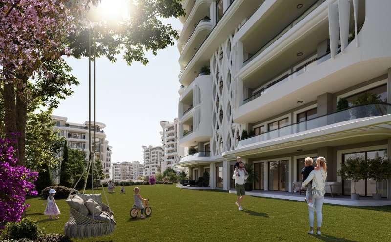 The complex, built on 30,000 sqm of land, consists of six blocks and 430 flats. There are garden duplexes, roof duplexes, and middle-floor flat options from 1+1 to 4.5+1 in 7-storey blocks. Some flats in the complex have a sauna and Turkish bath. The complex has a communal garden, amphitheater, cafe, social club, fitness center, basketball field, tennis court, indoor and outdoor swimming pools, indoor and outdoor kids’ playgrounds, entertainment areas for adults, 24/7 security, and a security camera system.