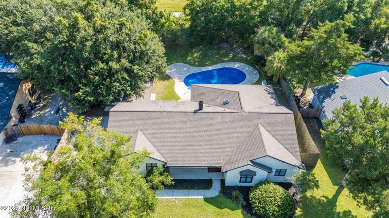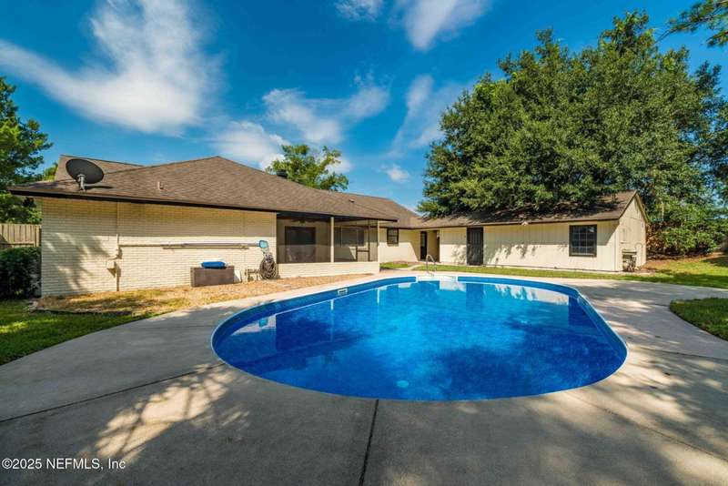 Spacious 4-bedroom, 2.5 bath brick home with an open floor plan is perfect for modern living & entertaining. Step inside to find a bright & inviting layout featuring generous living spaces & abundant natural light. The home flows effortlessly from the living area to the kitchen & dining space, creating the ideal setting for gatherings of any size. Walk through the enclosed Florida room to enjoy your private backyard oasis complete with a stunning in-ground saltwater pool, equipped with a brand-new salt cell for easy maintenance. Convenient outdoor shower on the side of the detached 563 SF pool/guest/game room which is ready for your personal touch to transform it to suit your needs! This home offers the perfect blend of indoor & outdoor living!