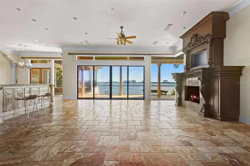 Experience this sleek, modernized Mediterranean masterpiece in an elite Alvarez community, featuring Tampa Bays most expansive waterfront. Brand new tile roof, vibrant fresh paint inside and out. Glide up the chandelier lit elevator to break taking bay views on entry level. Main Floor dazzles with a gourmet kitchen, Wolf Gas Stove, Sub Zero Fridge, massive island, beige cabinetry, pristine white granite; cozy fireplace living room; elegant dining room; travertine floors flowing to a grand balcony with full outdoor kitchen. The upper level has rich cherry hardwoods; luxurious master suite, guest bedroom; epic 10 speaker theater with starry ceiling and power recliners; and a terrace showcasing endless water vistas. The lower level thrills with a wine room, entertainment hub, private mother in law suite, sparkling pool/spa with a cascading waterfall and fountain, the second outdoor kitchen is on the expansive wood deck. There is also a versatile space for a 5th bedroom or office. Comfortably take the elevator to each floor for ultimate convenience. The whole home has sonos audio perfect for entertaining. The Ultimate dock has a 16k lb boat lift, dual sea-doo lift; stunning pergola with glowing bar commanding a full bay panoramic view. This amazing property is close to the Tampa International Airport, Downtown Tampa, St Petersburg, the world class Gulf beaches, Michelin star restaurants and so much more. This home is the embodiment of waterfront luxury!