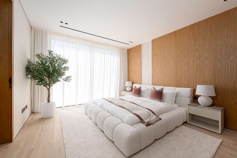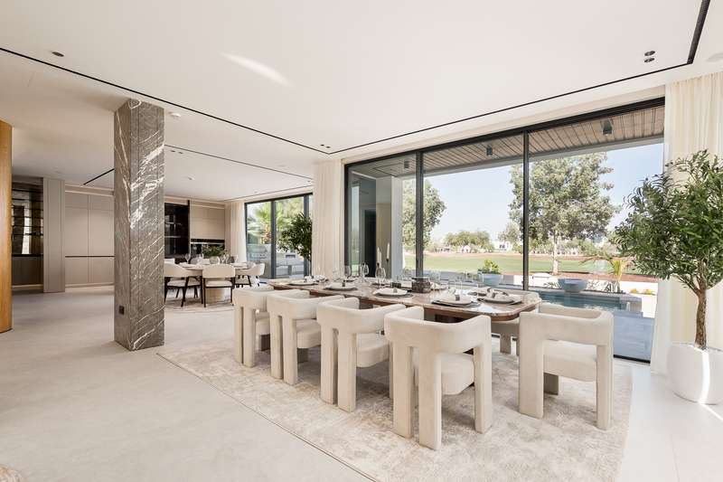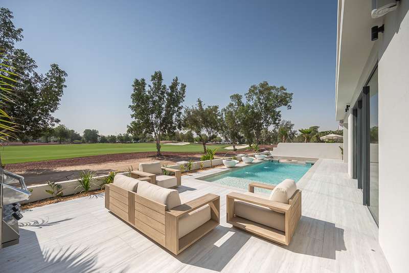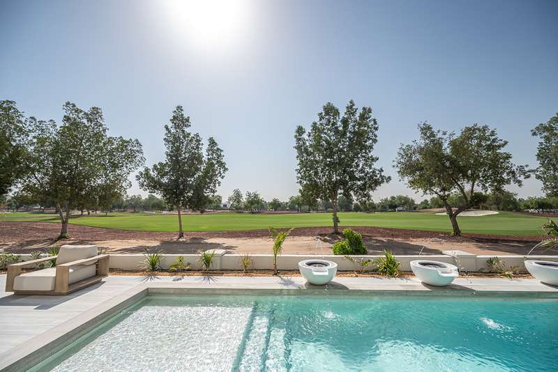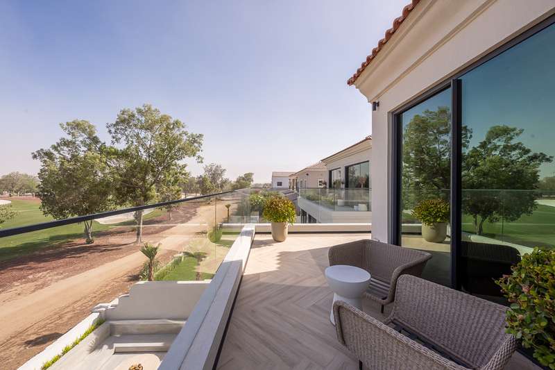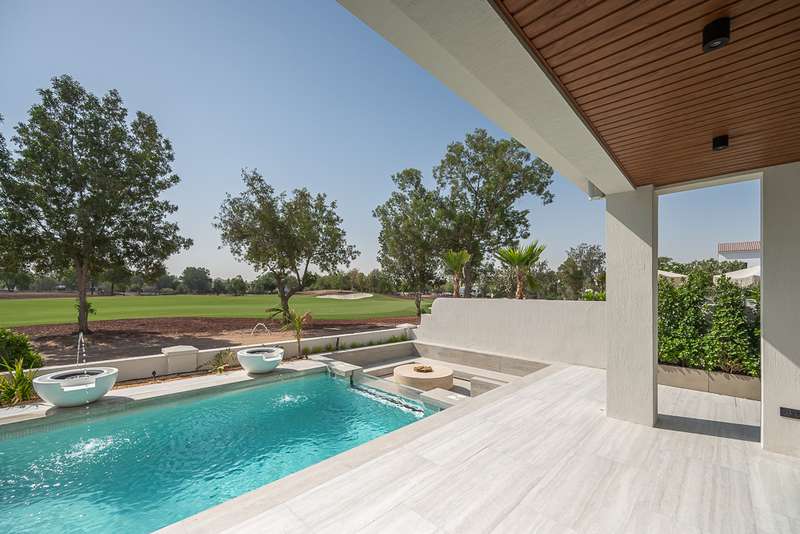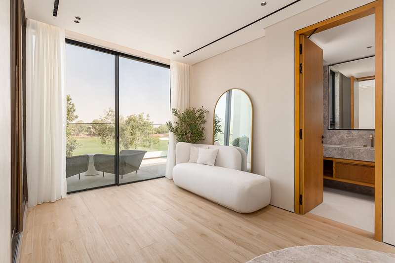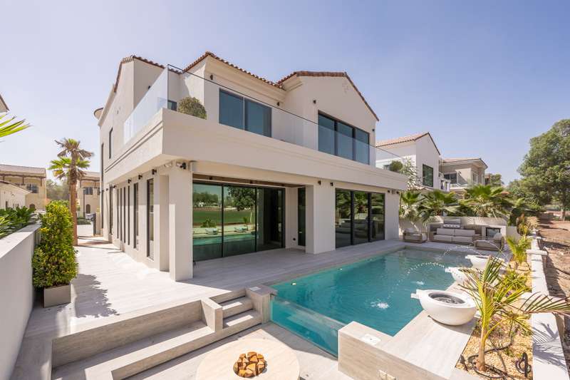 PRIME By Betterhomes are delighted to introduce this immaculate, fully upgraded 5 bedroom villa set in the heart of Wildflower, Jumeirah Golf Estates. - 5 Bedrooms - 6 Bathrooms - Maids + Drivers - Luxury Finishes - Earth Golf Course Views - Garage for Two Cars - 7,235 Built Up Area - 7,689 Plot Size - Smart Home Technology - Entertainers Garden - Miele Kitchen Appliances - Wood Flooring and Travertine Throughout This elegant villa is not just a home, it's a statement of luxury living set in one of Dubai's most sought after communities. As you step inside, you're greeted by a sleek, contemporary design infused with Scandinavian style to give a warm homely feel. The beautiful use of Travertine and solid wood allows the home to feel bright and modern. On the first floor you have a spacious guest en-suite bedroom, open plan kitchen with Miele appliances, prep kitchen, maids + drivers room and a spacious living/dining area. The entertainers garden offers stunning views of the golf course, comes with an outdoor BBQ area, sunken fire pit, infinity pool and grass patch for the kids. Upstairs there are a further 4 en-suite bedrooms which are all spacious with balcony access. The two master bedrooms have large walk in wardrobe and share a spacious balcony with a calming golf course view.