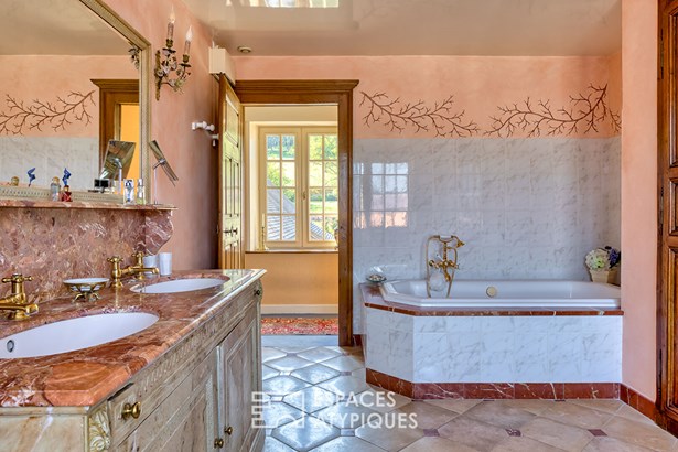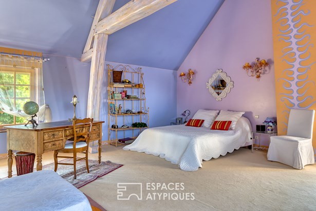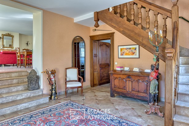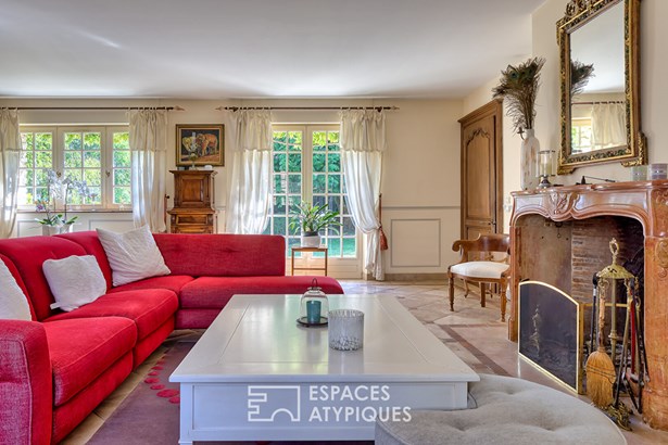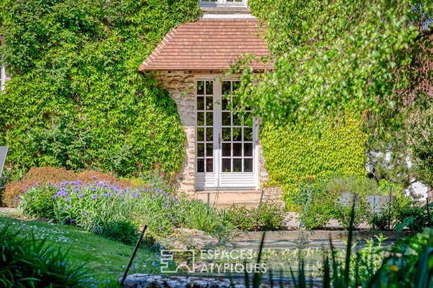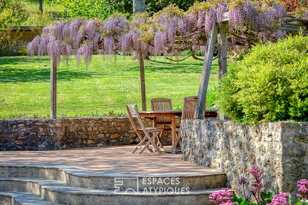 Outside, the carefully landscaped garden unfolds like a poem: sunny terraces, flower-lined paths, ornamental ponds, large trees dancing in the wind. The whole is part of a green and peaceful landscape, where you can hear the murmur of the water and the discreet song of the birds. Here, time seems suspended, the hustle and bustle distant.