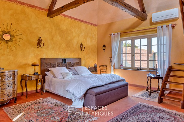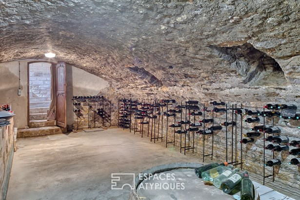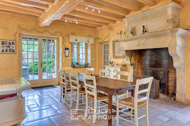 The choice of materials is precise and respectful: Burgundy stone floors, old doors from castles, exposed beams, every detail seems to tell a story.