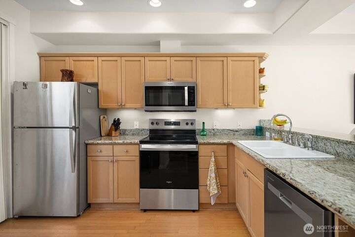 Sophisticated Skye Landing residence in coveted Klahanie; this beautifully designed 2-bedroom, 2.25-bath townhome showcases soaring vaulted ceilings, a cozy gas fireplace, an open-concept kitchen with granite counters, and a serene, private patio perfect for a quiet morning coffee. Top floor features an expansive primary suite with a spa-like double-vanity bathroom and a second bedroom or office space with en-suite bathroom. A laundry closet is located on the landing between the bedrooms. Enjoy the convenience of an attached two-car tandem garage and abundant storage, all nestled in a tranquil community setting just moments from Klahanie’s lush parks, scenic trails, resort-style pools, and top-rated Issaquah schools. New carpet Nov 14th!