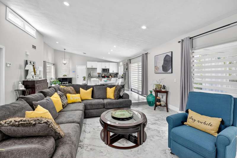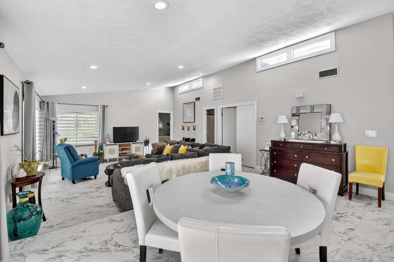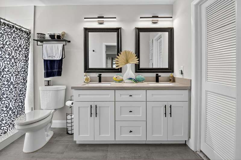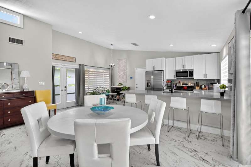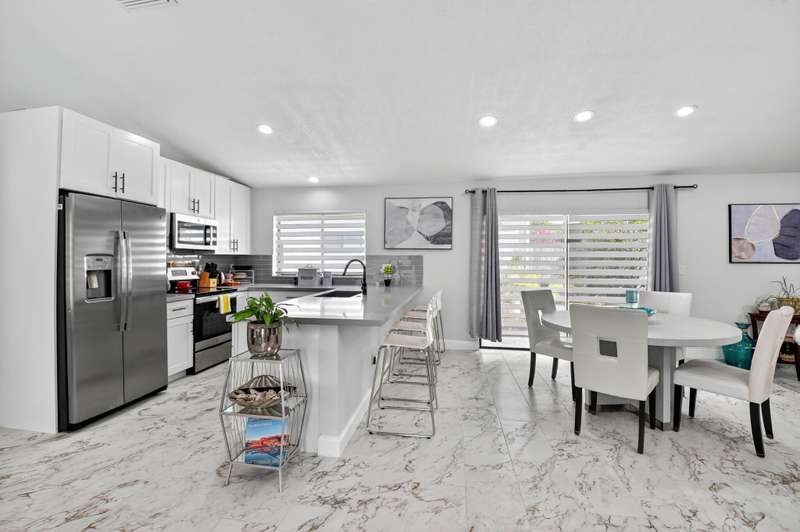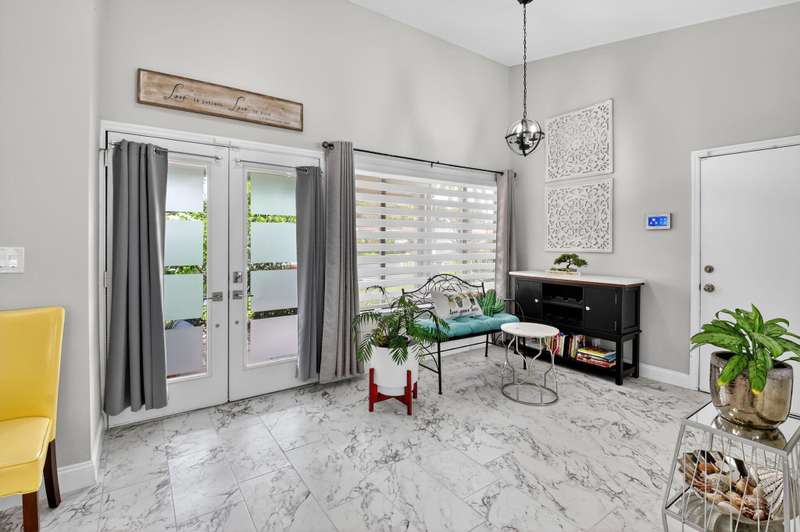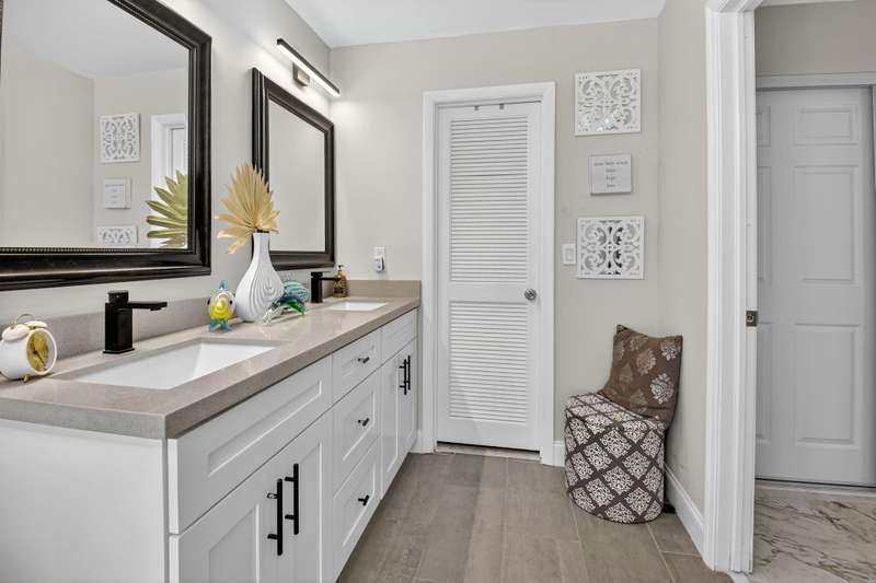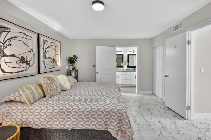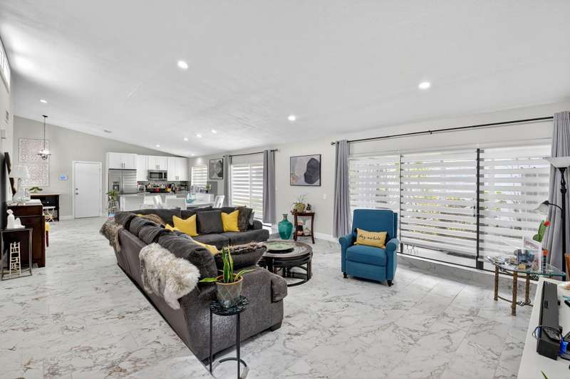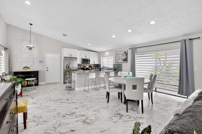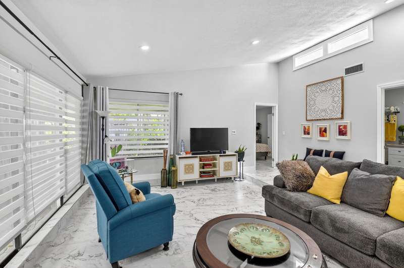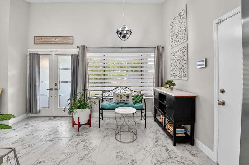 Welcome to this elegantly updated residence where modern charm meets timeless style. From the moment you step inside, you're greeted by stunning new porcelain tile flooring that flows throughout the home, setting the tone for clean lines and sophisticated living. The heart of the home--an open, contemporary kitchen--is a dream for entertainers and culinary enthusiasts alike. It boasts sleek white shaker cabinets, polished quartz countertops, stainless steel appliances, and a layout that seamlessly connects to living and dining spaces. The bathrooms have been thoughtfully renovated with custom shaker cabinetry and gleaming quartz vanity tops, providing a spa-like experience in the comfort of your own home. High ceilings and generously sized bedrooms invite in plenty of natural