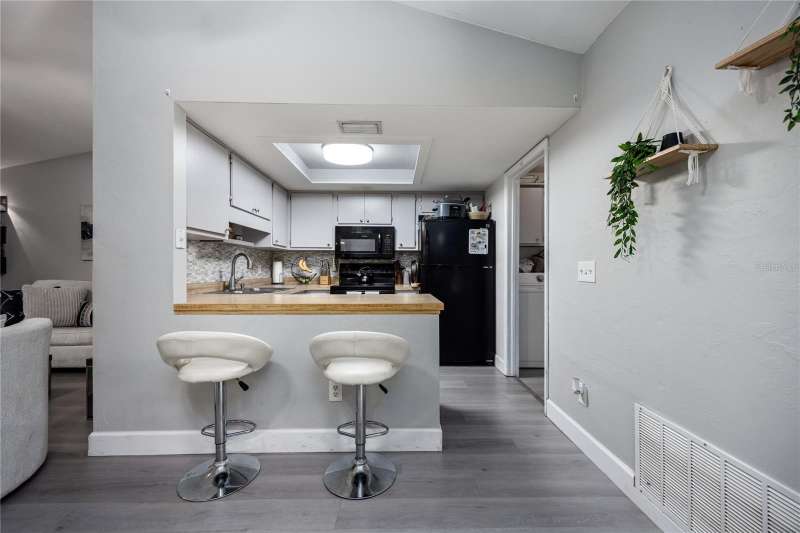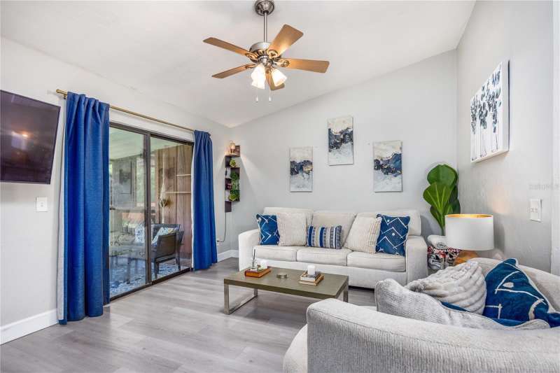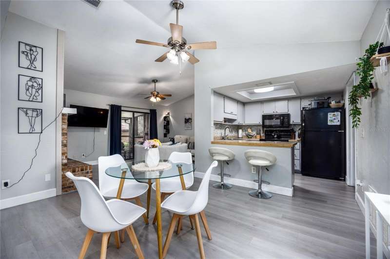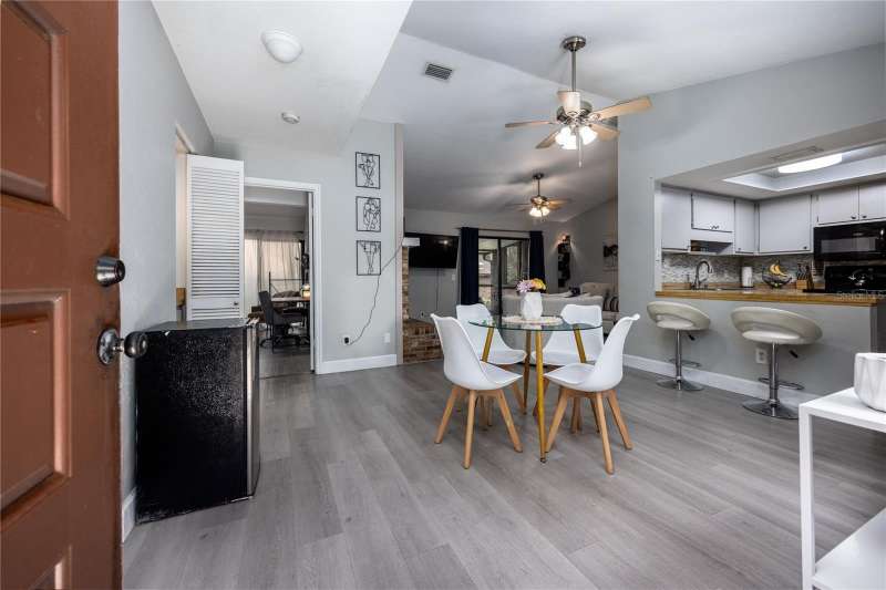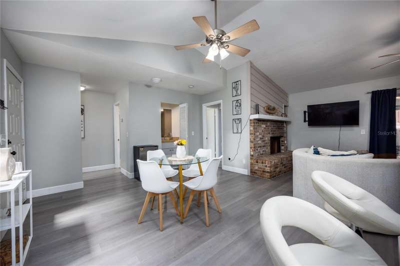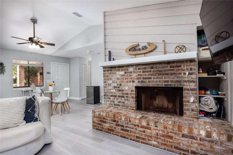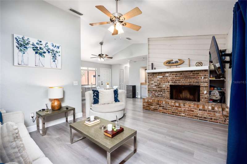 Welcome home to this beautifully remodeled 2-bedroom, 2-bath townhome with a 1-car garage, located in the desirable Cedar Creek community of Gainesville. Step inside to discover luxury vinyl plank flooring, vaulted ceilings, and an open, airy layout that blends comfort with style. The cozy living room features a fireplace and opens seamlessly to a screened-in porch—perfect for enjoying Florida weather year-round. The kitchen offers an easy flow into the dining area, ideal for entertaining or everyday living. The spacious primary suite includes a walk-in closet, a private en-suite bathroom, and sliding glass doors leading to the backyard. A second bedroom, also with a generous walk-in closet, is filled with natural light from windows overlooking the front yard. This move-in-ready home offers low-maintenance living in a quiet, tree-lined neighborhood close to parks, shopping, and the University of Florida. Don't miss your chance to enjoy comfort, convenience, and charm in one of Gainesville’s most established communities!
