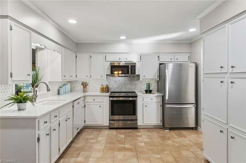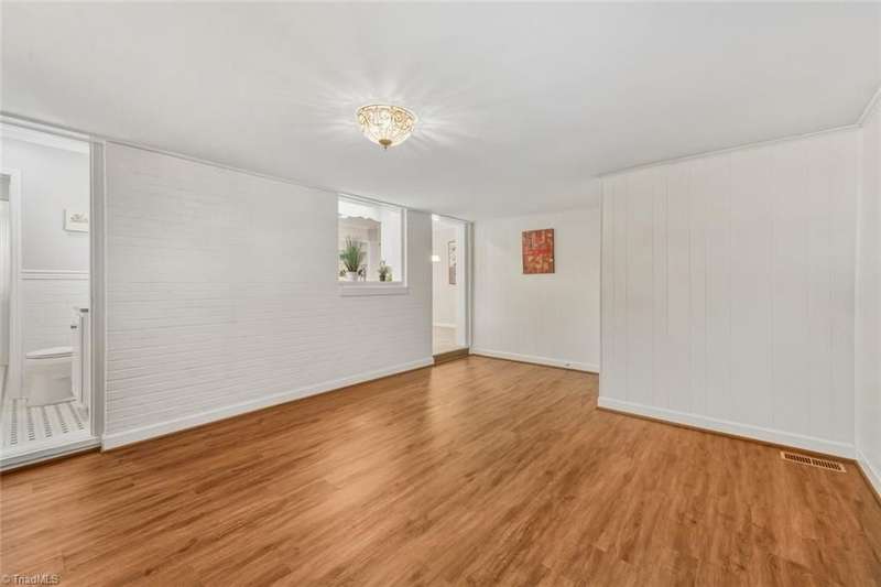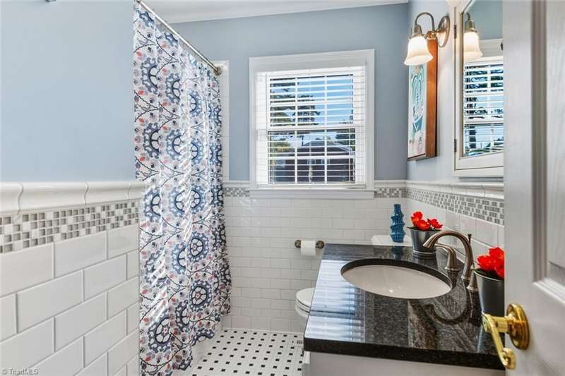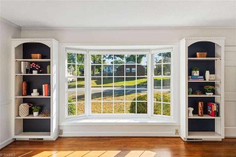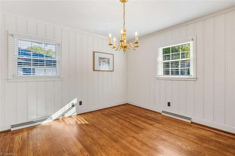 This classic brick ranch is on the market for the first time since 1981! Prime location is 5 minutes from shopping, Elon University and downtown. The Burlington-Elon Greenway/Bikeway is one street over and the Burlington Arboretum is a quick bike ride away!Walk through the front door and notice real hardwood floors and a stunning picture window flanked by custom built-ins. The traditional layout means there's plenty of wall space to display art and also lots of private flexible space.The kitchen and baths have been tastefully updated featuring beautiful tile work. The eat-in kitchen is bright and cheerful with amazing storage, built-ins and detailed backsplash. The dining room has traditional paneling and could easily double as a home office. The rear den is a nice private area, tucked off the kitchen. Baths are fully tiled and well-illuminated with tasteful sconces. Tub/shower in the hall bath features a custom nook. Powder room off the den is conveniently attached to the laundry.