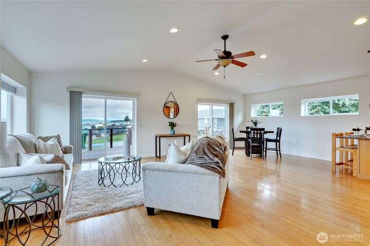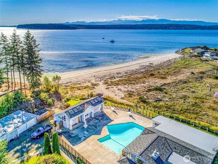 Enjoy spectacular views of the Bay, Hood Canal and majestic Olympic Mountains from this impeccable 3 bd/2.5 bath home. The open floor plan is perfect for entertaining, or just inspired living, from the chef's kitchen to the dining & living areas, to the view deck. Relax on the deck as the sun sets over the water, or in your spacious Primary suite with spa bath and huge walk-in closet. Two more bedrooms and another full bath + large rec room are perfect for guests. This smart home was built with energy efficient materials and design. Charming Driftwood Key is a vibrant community with private marina, clubhouse, swimming pool, playground, and a sugar sand beach. Welcome to the sweet coastal village of Hansville! Seller financing at 5.5%