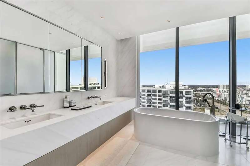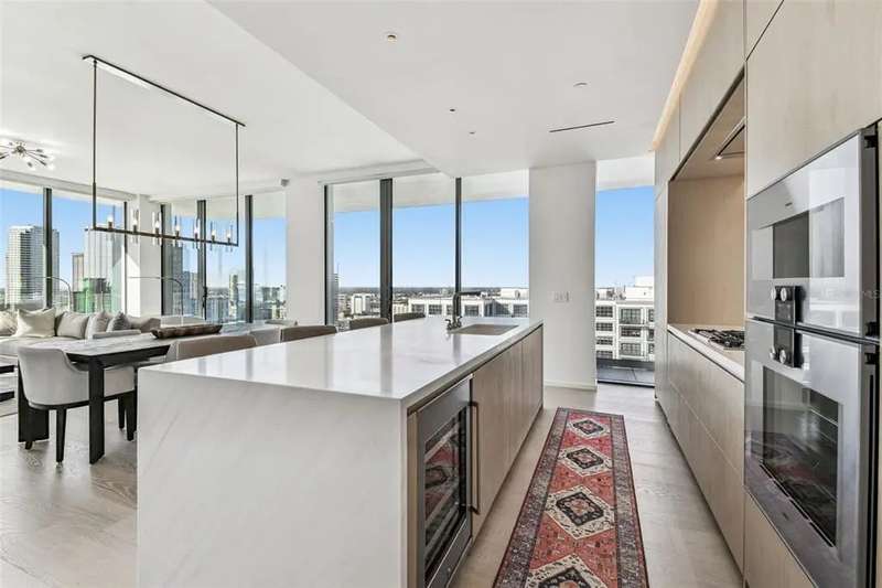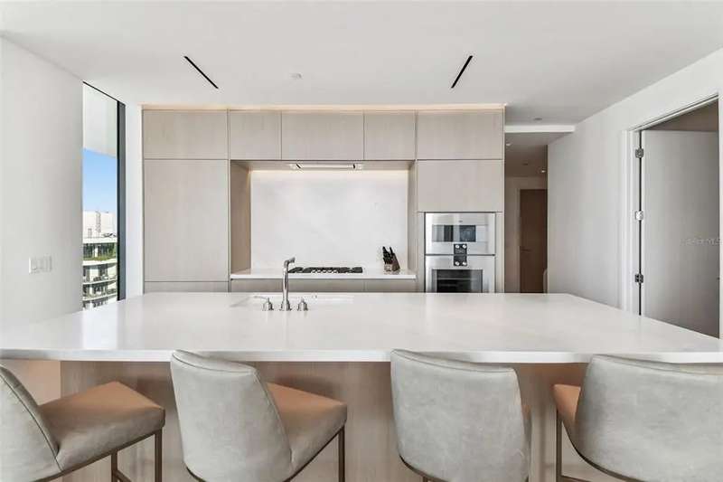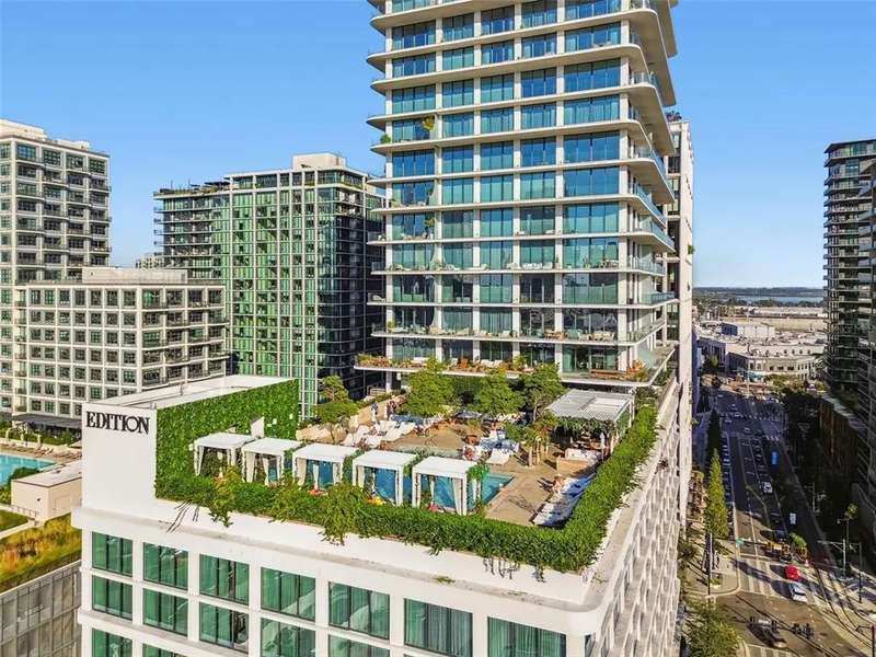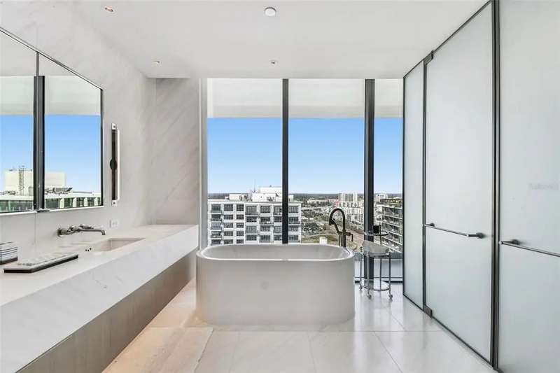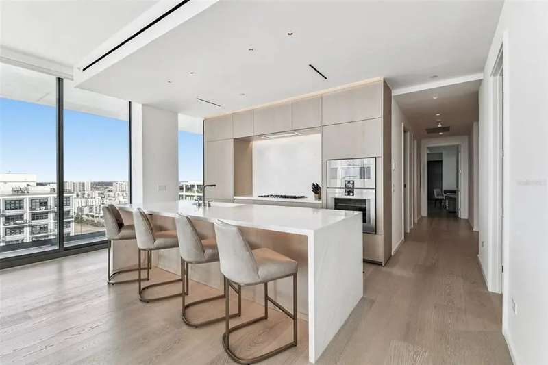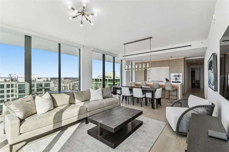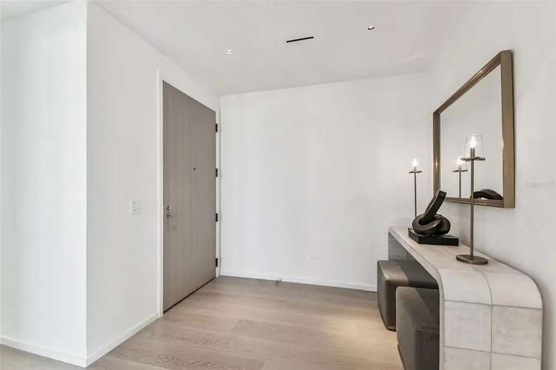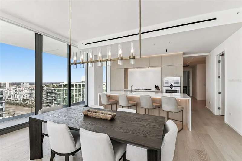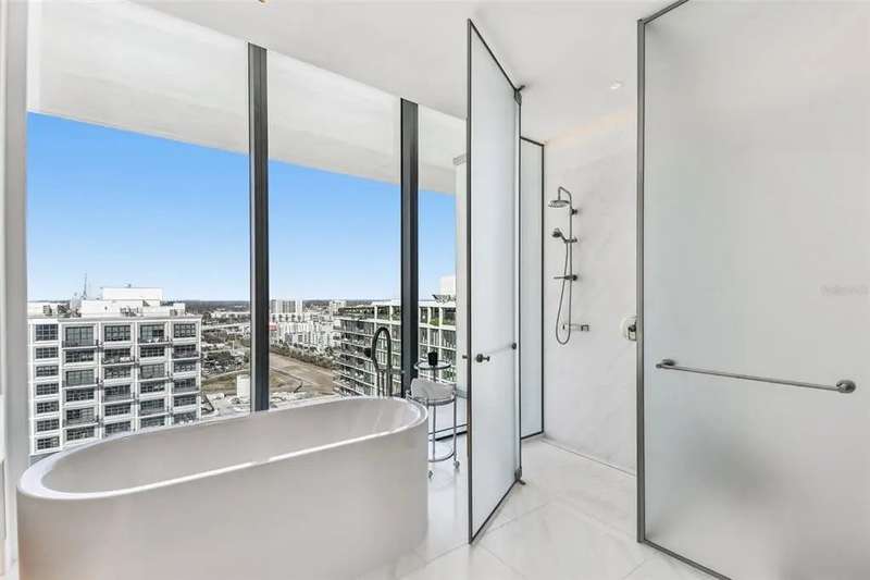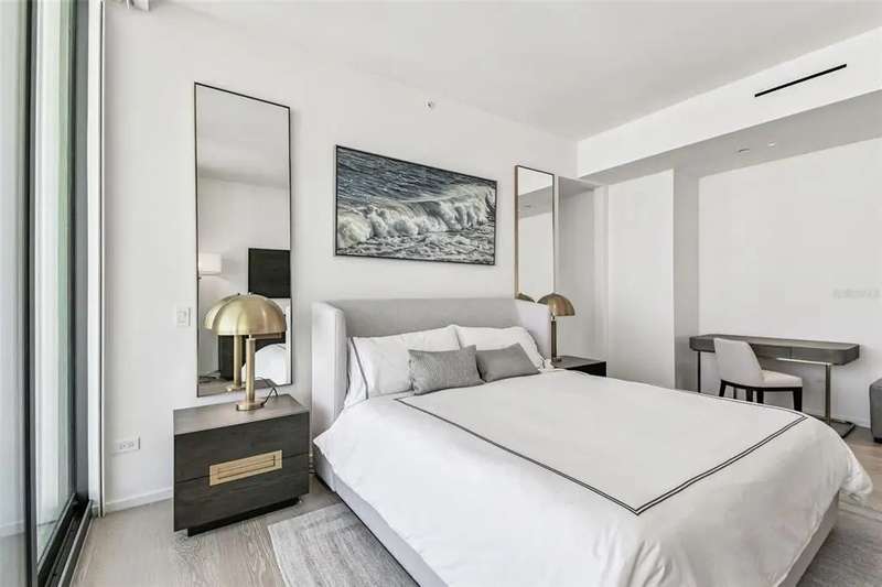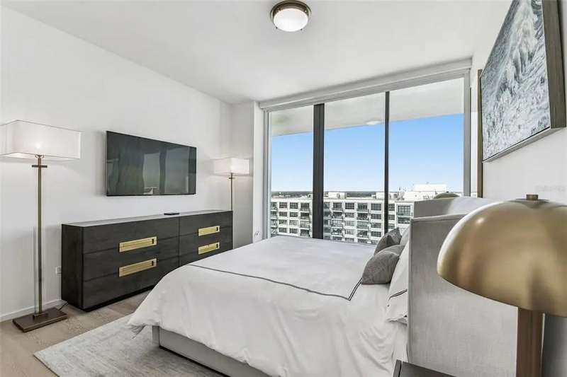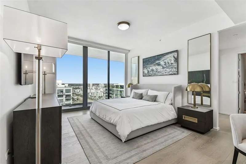 Discover an unrivaled living experience at The Tampa EDITION Residence 2202, a sophisticated corner unit masterfully designed and framed by sweeping vistas of Tampa Bay, the sprawling downtown skyline, and the visionary Water Street development. This residence, completely furnished and inclusive of all utilities, epitomizes refined urban luxury. The exquisite open floor plan flows seamlessly between living, dining, and entertaining spaces, designed to offer an unparalleled experience of comfort and elegance. The private primary suite serves as a luxurious retreat, complete with a spa-inspired bath clad in Polaris White marble, a freestanding Kaldewei soaking tub, a custom double vanity, and ambient lighting that enhances its serene atmosphere. This sanctuary also includes a custom walk in closet and direct access to a wrap-around terrace with breathtaking views. An additional bedroom, equipped with its own ensuite bath, provides sophisticated accommodation for family or guests. Every element of this home reflects meticulous craftsmanship and elegant design. Expansive floor-to-ceiling windows flood the 10-foot-ceiling interiors with natural light, seamlessly blending indoor and outdoor spaces. Sliding glass doors from each room open to generous wraparound terraces adorned with post-less glass railings, offering uninterrupted views of the city below. Thoughtfully curated details include 10-inch custom Grato white oak floors, Polaris White marble countertops with a waterfall island and full-height backsplash, ambient cove lighting, and custom Molteni white oak cabinetry. The state-of-the-art Gaggenau kitchen features a wine cooler, five-burner gas cooktop, and a discreetly integrated Miele vented hood. As part of The Tampa EDITION, residents enjoy exclusive access to an array of five-star amenities envisioned by legendary hotelier Ian Schrager. From award-winning dining experiences led by celebrated chefs to the rejuvenating full-service spa, each offering embodies EDITION’s dedication to world-class living. The rooftop pool and terrace provide a tranquil escape with panoramic city views, while residents-only spaces, including a private gym, social kitchen, and lounge, create an ambiance of refined exclusivity. Complete with two dedicated parking spaces, private storage room and 24-hour concierge, this residence anticipates every need. Nestled within Water Street Tampa, the world’s first WELL-certified community, The Tampa EDITION is the ultimate intersection of wellness, innovation, and sophistication. Residence 2202 invites you to experience an elevated lifestyle unlike any other in Tampa.