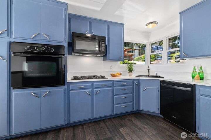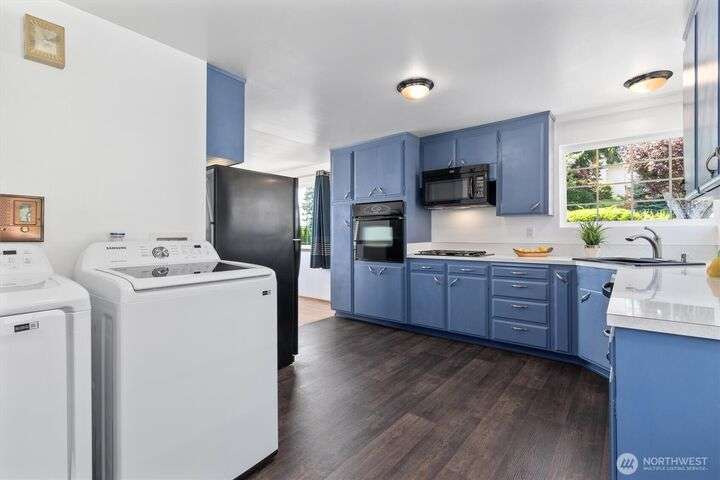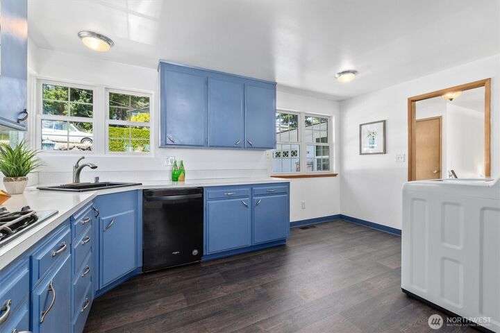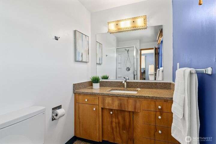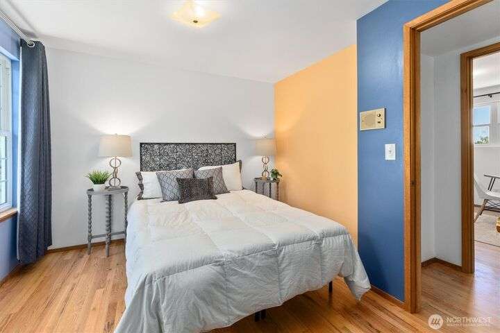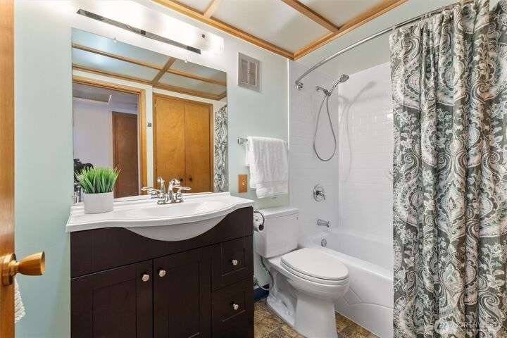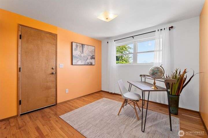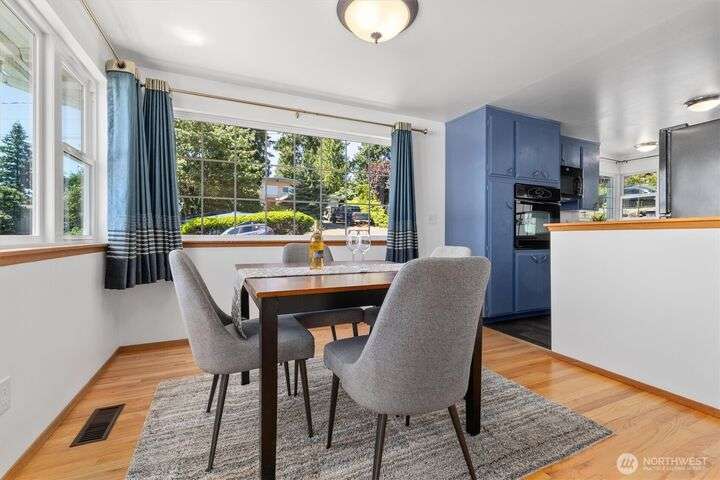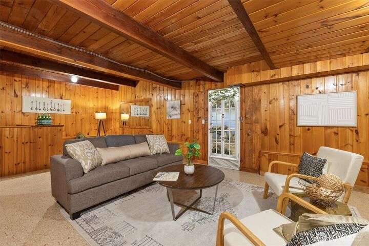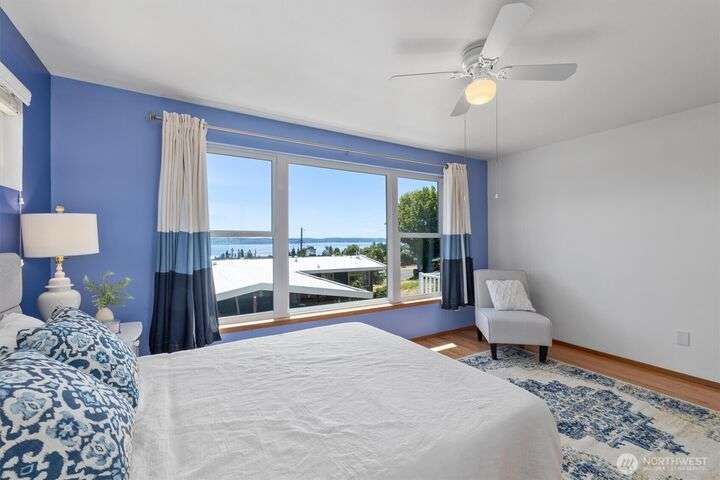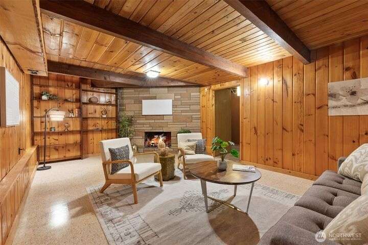 Puget Sound and Mt. Rainier views headline this rare mid-century gem in coveted North Hill—perfect for 4th of July fireworks. Sun-filled main level features hardwoods, central A/C, gas fireplace, and a living room that opens to a Trex-style view deck. Wake to Sound views in the primary suite with private ¾ bath. Finished lower level offers a huge pine-paneled rec room with mini-bar, large finished flex room, plumbing for a second washer/dryer, bath, and exterior sidewalk access—ideal for MIL suite, office, or abundant storage. Lifetime metal roof and major improvements done. Entertain on the view patio with natural-gas quick connect. Impeccably maintained, low-maintenance, fully fenced yard completes the package.