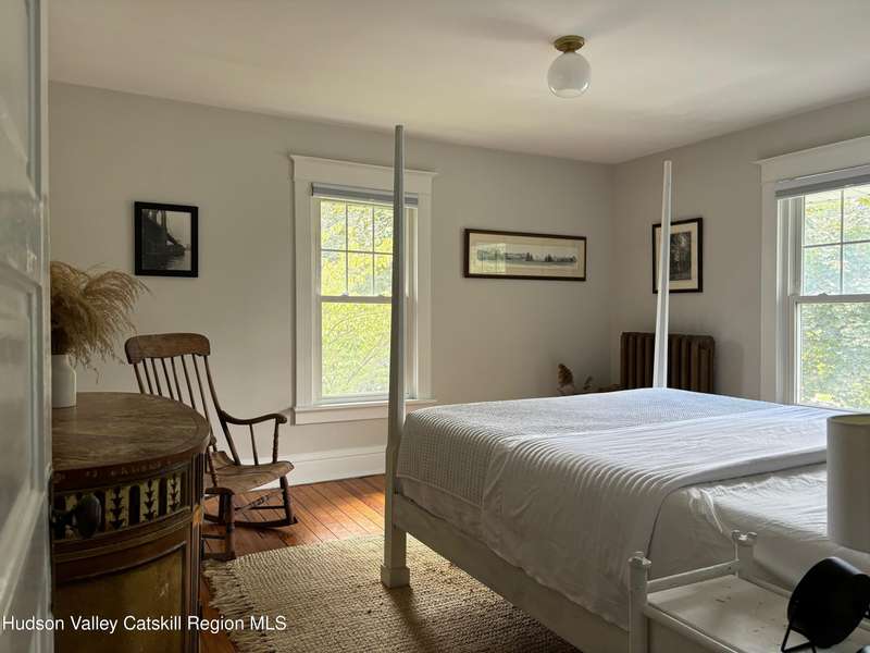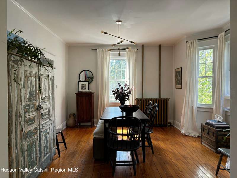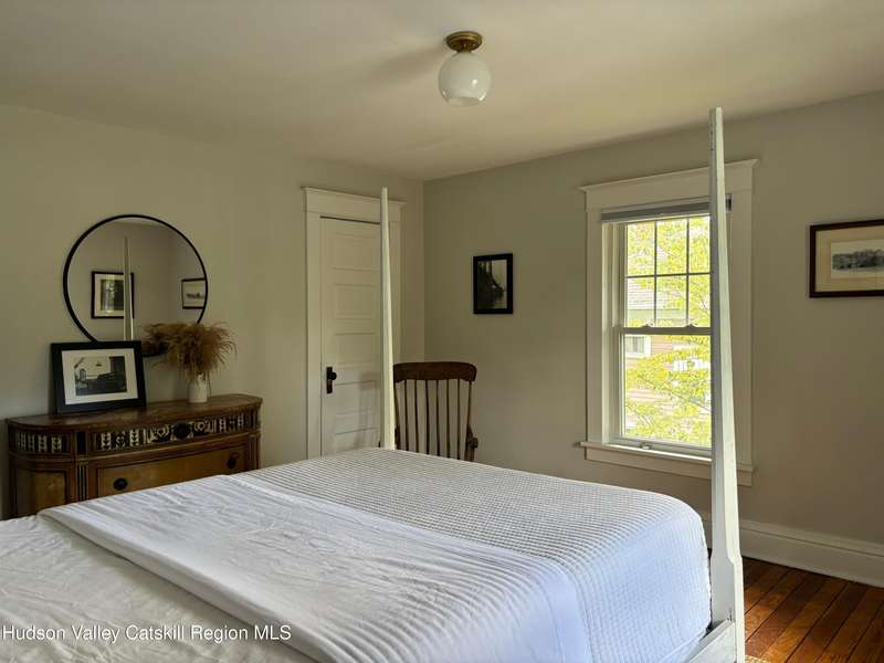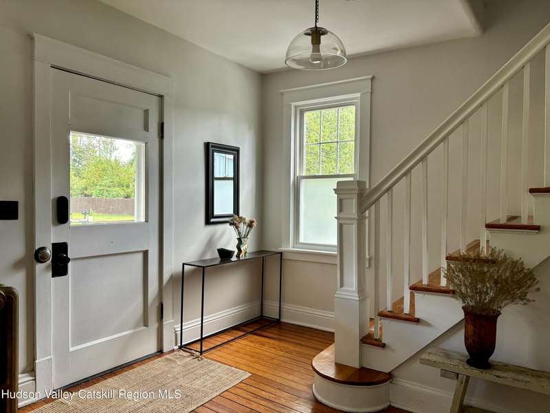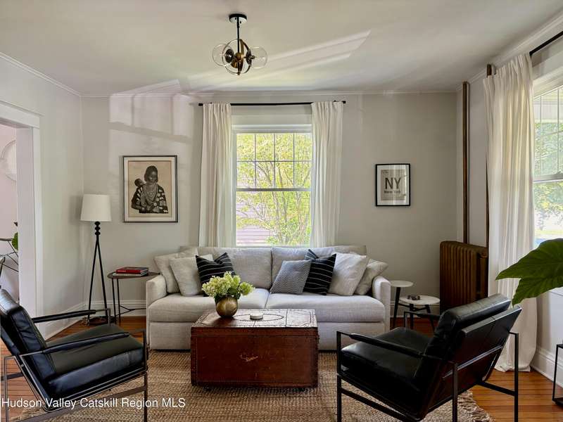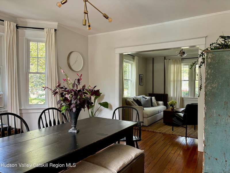 Built in 1920 and nestled among some of Claverack's grand historic estates, this charming home on a 1/3 acre lot offers the perfect blend of vintage character and modern amenities. The light-filled interior features soaring 9-foot ceilings and an abundance of natural light throughout.A gracious front porch sets the tone for this welcoming home. The well-proportioned floor plan flows seamlessly from the large open foyer with a powder room into generous living and dining rooms, both oriented toward the heated swimming pool and lovely back yard. The kitchen, positioned off the dining room, opens to both three season room and deck, creating effortless indoor-outdoor entertaining possibilities.The second floor has three bedrooms, including a primary suite with en-suite bath. Practical amenities include a full basement, a substantial one-car garage and an advanced solar battery backup system that automatically engages during outages.The landscaped grounds center around the heated swimming pool, complemented by an iron fire pit for evening gatherings. The outdoor spaces feel both private and expansive, ideal for both intimate relaxation and larger entertaining.Claverack's Churchtown neighborhood provides an enviable location - minutes from Hudson's cultural attractions and Amtrak station, steps from the acclaimed Klocke Estate Distillery, and just 20 minutes to Catamount Ski Mountain and the broader Berkshires region.This property represents a rare opportunity to own within Claverack's historic fabric while enjoying refined modern comfort and convenience. 590 is also available for a 6-month rental.