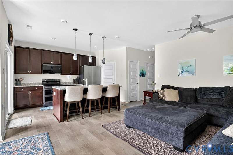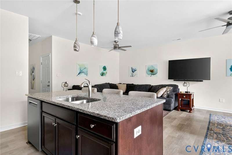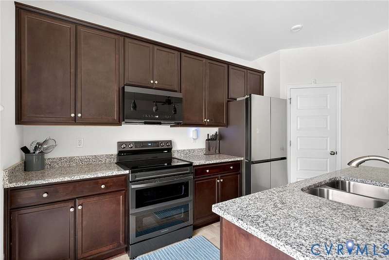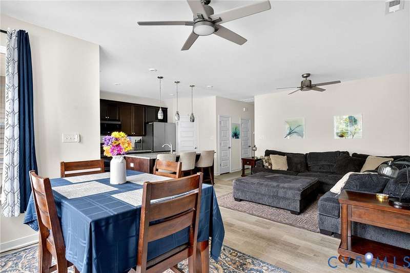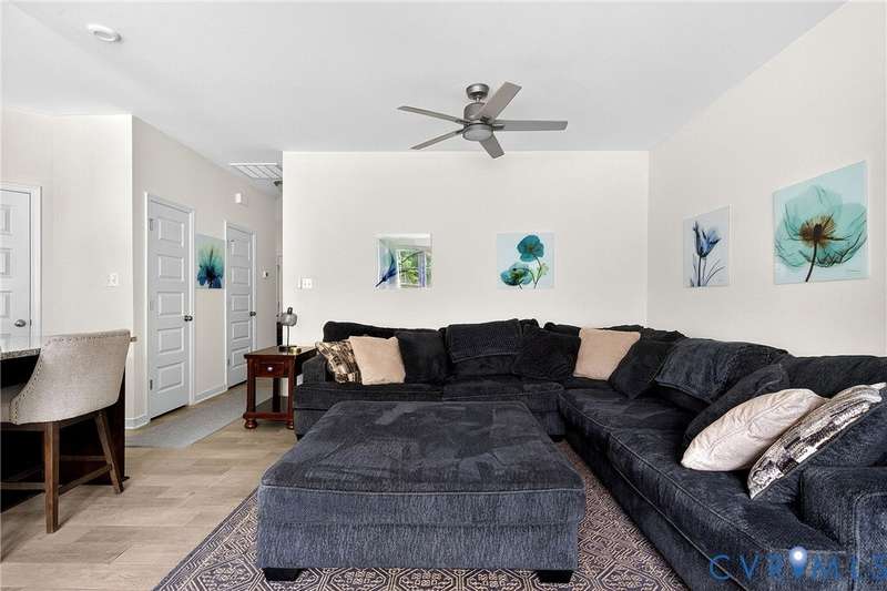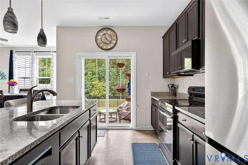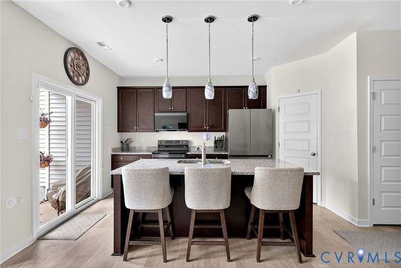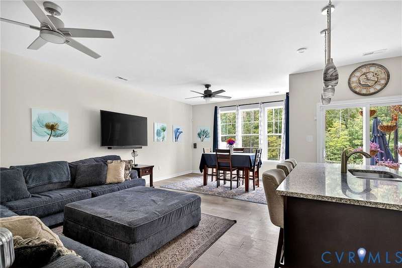 Welcome to 7736 Leeds Castle Lane, New Kent, VA! Potential for ASSUMABLE VA LOAN with 3.625% Interest rate (for eligible Veterans)! This beautifully maintained townhome offers the perfect combination of comfort, style, and convenience. Step inside through the welcoming front patio into a bright foyer with luxury vinyl plank flooring that flows throughout the entire 1st floor. The spacious living room, featuring two ceiling fans, opens seamlessly into the dining area and large chef's kitchen. The kitchen boasts a generous granite island, double-basin sink, walk-in pantry, and top-of-the-line appliances-including a Samsung double flex oven with built-in air fryer and a Bosch dishwasher. Just off the kitchen, enjoy the private back patio overlooking a partially fenced yard, retaining pond, and wooded backdrop. Upstairs, the primary suite is filled with natural light from large rear-facing windows and includes a walk-in closet with ample shelving and double vanity sinks, tiled shower, and tile floors. Two additional bedrooms and a full bath complete the second floor. On the third level, you'll find a versatile loft or fourth bedroom with its own walk-in closet and private full bath-ideal for guests or a home office. Additional highlights include a one-car garage with built-in shelving, half bath on the first floor, SimplySafe Ring security system, and a peaceful setting. Located within walking distance of schools, the library, restaurants, and shops, this home is also conveniently positioned between Richmond and Williamsburg-both just 25 miles away. Don't miss the opportunity to make this move-in-ready townhome your own!
