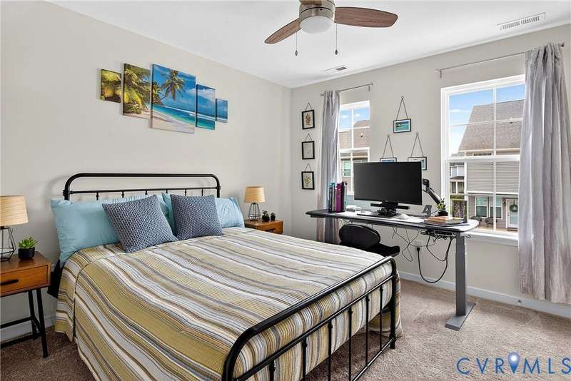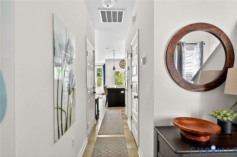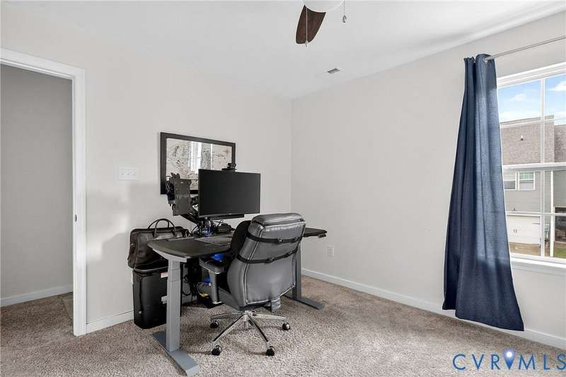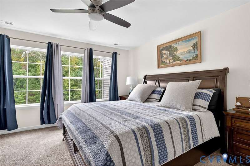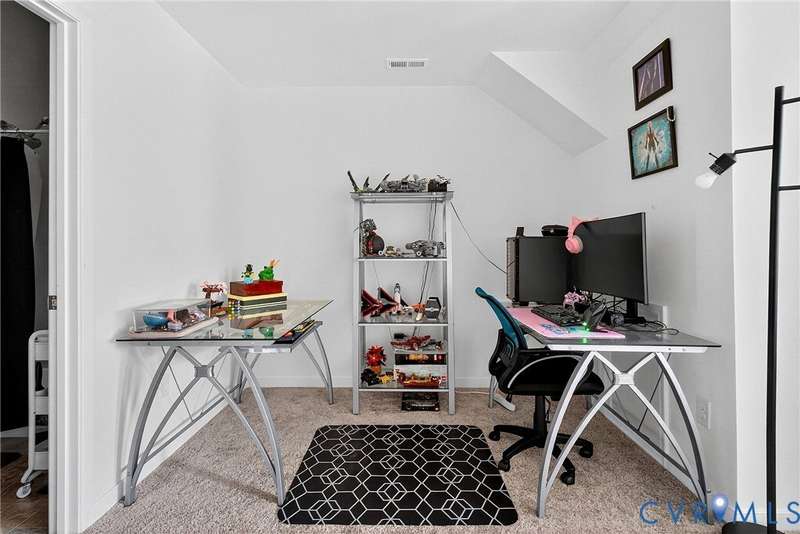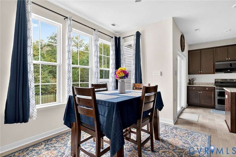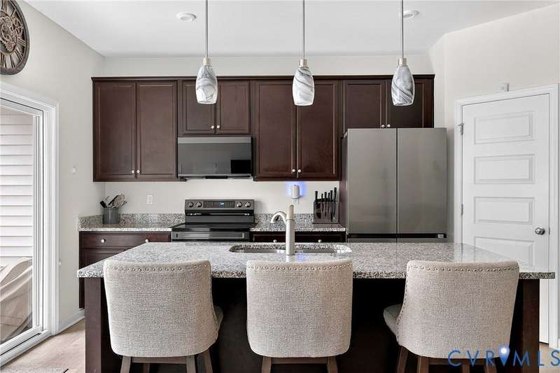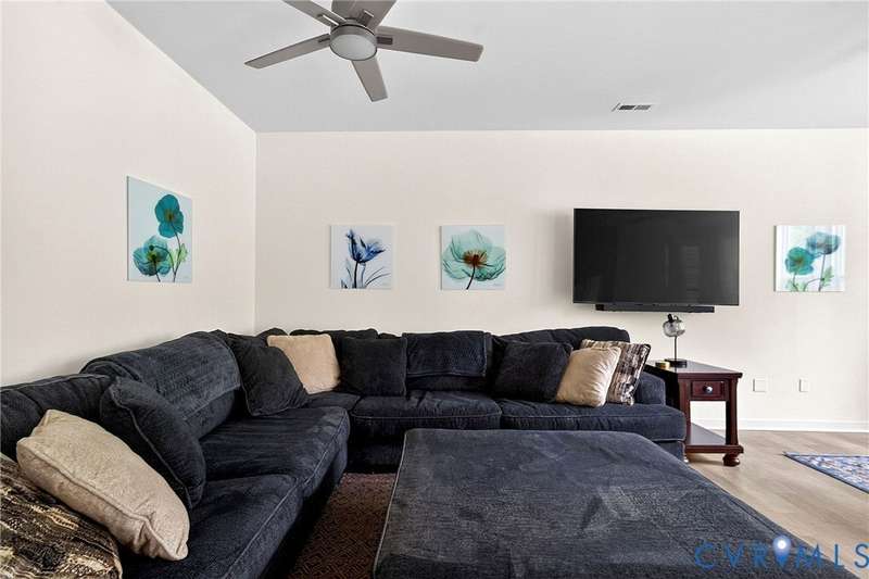 Welcome to 7736 Leeds Castle Lane, New Kent, VA! Potential for ASSUMABLE VA LOAN with 3.625% Interest rate (for eligible Veterans)! This beautifully maintained townhome offers the perfect combination of comfort, style, and convenience. Step inside through the welcoming front patio into a bright foyer with luxury vinyl plank flooring that flows throughout the entire 1st floor. The spacious living room, featuring two ceiling fans, opens seamlessly into the dining area and large chef's kitchen. The kitchen boasts a generous granite island, double-basin sink, walk-in pantry, and top-of-the-line appliances-including a Samsung double flex oven with built-in air fryer and a Bosch dishwasher. Just off the kitchen, enjoy the private back patio overlooking a partially fenced yard, retaining pond, and wooded backdrop. Upstairs, the primary suite is filled with natural light from large rear-facing windows and includes a walk-in closet with ample shelving and double vanity sinks, tiled shower, and tile floors. Two additional bedrooms and a full bath complete the second floor. On the third level, you'll find a versatile loft or fourth bedroom with its own walk-in closet and private full bath-ideal for guests or a home office. Additional highlights include a one-car garage with built-in shelving, half bath on the first floor, SimplySafe Ring security system, and a peaceful setting. Located within walking distance of schools, the library, restaurants, and shops, this home is also conveniently positioned between Richmond and Williamsburg-both just 25 miles away. Don't miss the opportunity to make this move-in-ready townhome your own!