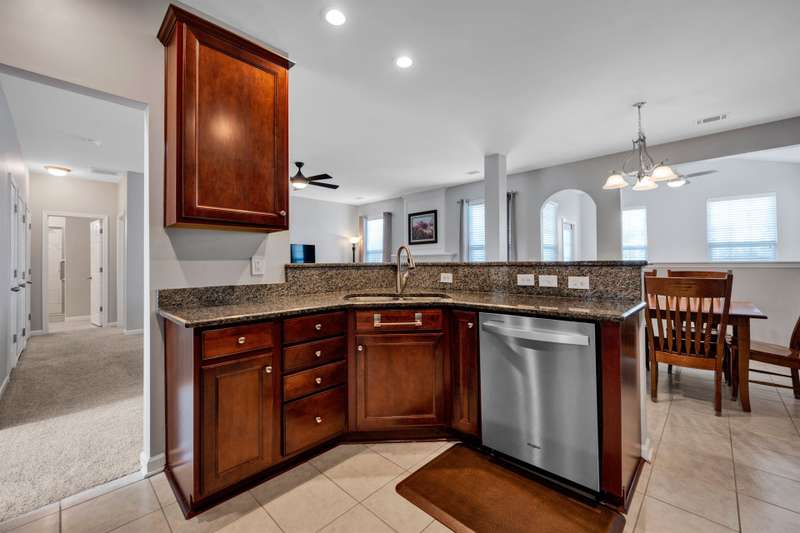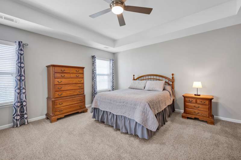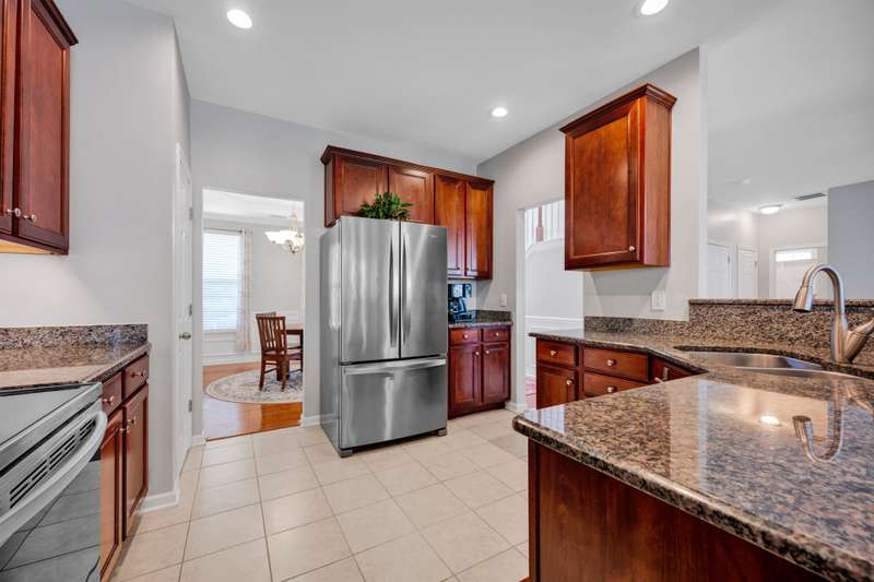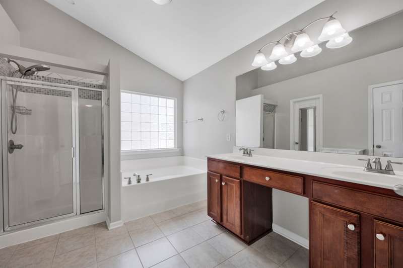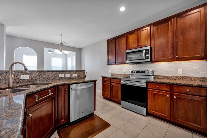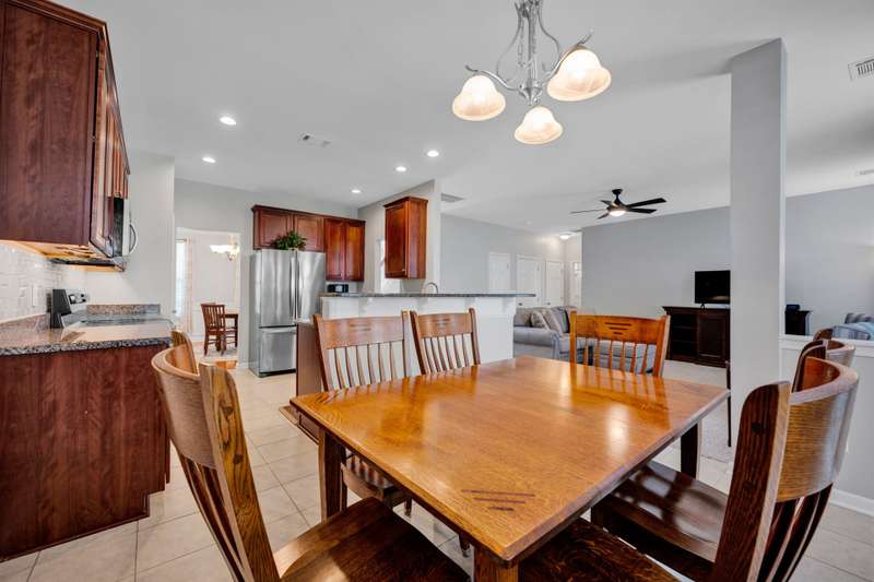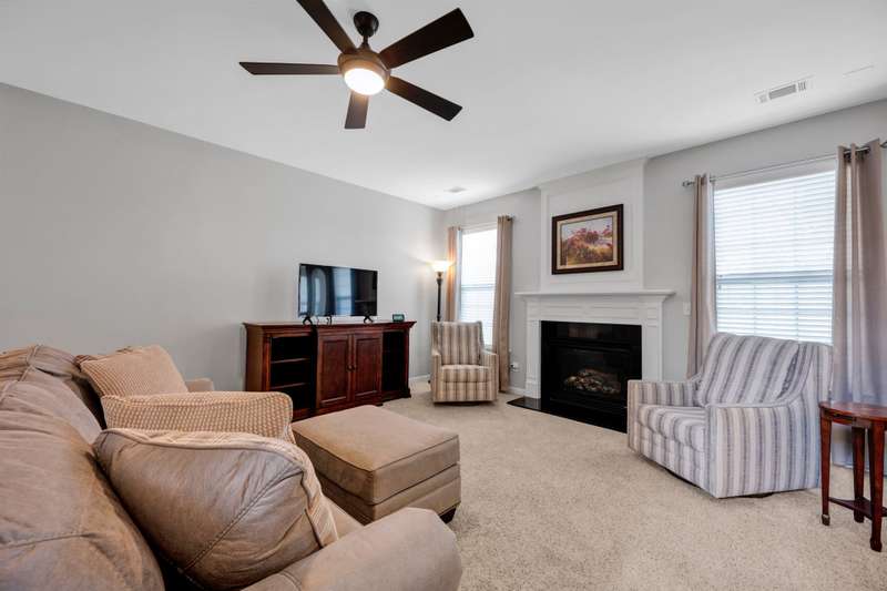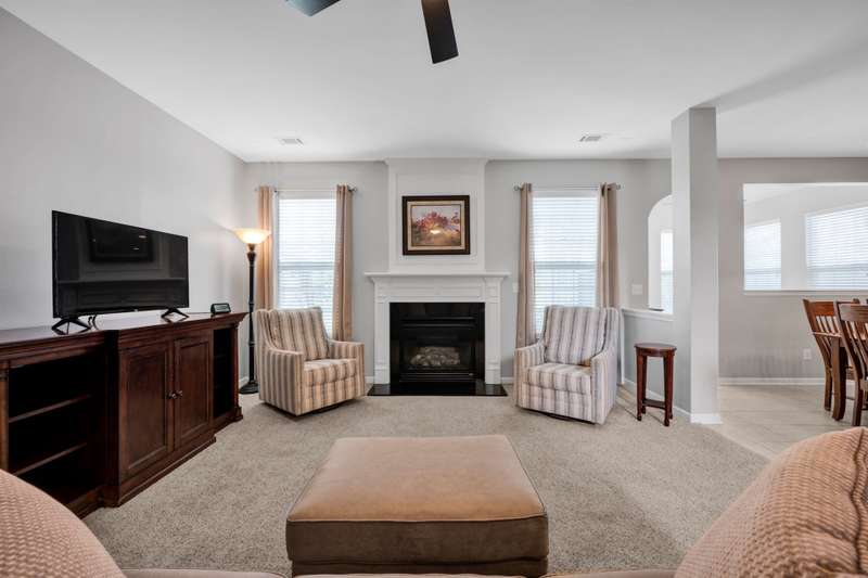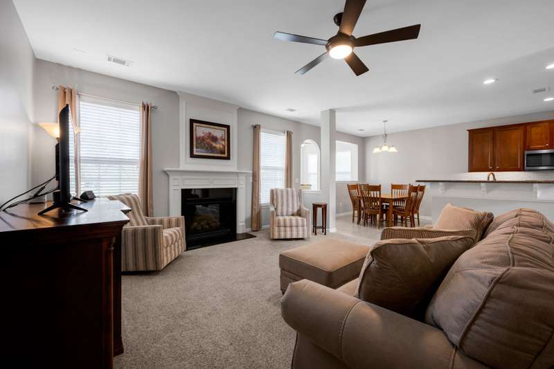 Move in ready! Almost like Brand New!! New in 2024 - Roof and Water Heater and 2025 - AC and Furnace system. This spacious 5-bedroom, 3-bath home features a main-level bedroom and totally remodeled full bath with a tiled walk-in shower, ideal for guests or a private office. The open-concept layout seamlessly connects the kitchen to the great room, perfect for gatherings and everyday living. Neutral paint throughout creates a clean, welcoming feel. All Kitchen appliances replaced in the last 4 years. All bedrooms are generously sized for comfort & flexibility. Just off the peaceful sunroom, an extended patio offers the perfect spot to unwind. The fully fenced backyard is great for pets, play, or entertaining. Enjoy energy-efficient upgrades and worry-free living with these recent improvements. Located in a vibrant community with a pool, sports courts and fields, playgrounds, fitness room & clubhouse for events. This home offers space, style, & a fantastic lifestyle?all in one!