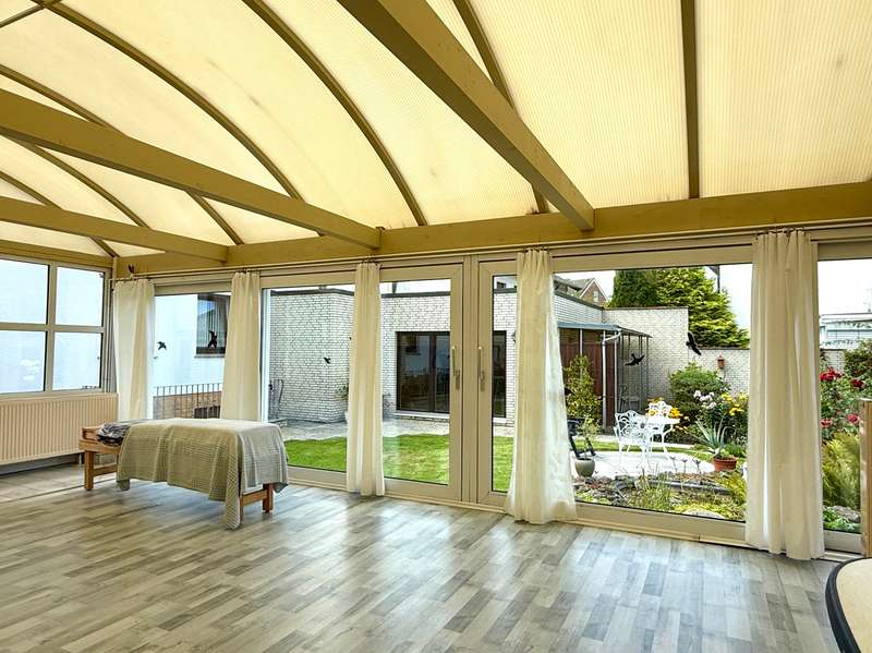 This inviting home in a good location in Lotte offers plenty of space for individual living on three floors. Whether as a spacious detached house or as a multi-generational home - the well thought-out room layout and numerous extras make it a special home. The successful room layout offers a total of seven rooms, making it ideal for both larger families and couples who need more space. With five potential bedrooms, the property is ideal for individual use: whether as a master bedroom, children's room, work area or guest room - a wide range of options are available. First floor - living with comfort and charm The heart of the first floor is the spacious living and dining area with an open fireplace, which creates a warm and cozy atmosphere. Large windows let in plenty of natural light and provide direct access to the sunny terrace - ideal for relaxing hours outdoors. The open connection between the dining area and living room creates a communicative living feeling. There is also a bedroom or study and a bathroom with bathtub on this level. Upper floor - retreat with a feel-good character On the upper floor, you will find a bedroom with adjoining dressing room, a study or children's room, a children's room and a modern bathroom with integrated sauna - perfect for relaxing wellness moments at home. The bedroom offers direct access to a wonderful south-facing balcony, where you can enjoy the setting sun in the evening. Here, fresh air flows into the house and offers a perfect place for a little time out. The currently combined rooms can easily be turned back into four separate bedrooms. Attic & basement - space for diversity The partially converted top floor was previously used as a children's room and has an additional bathroom with shower. It is ideal for guests, hobby rooms or as a further retreat. The full basement not only houses the oil heating system, but also an ironing room, a workshop and other storage areas - perfect for tidying up and hobby craftsmen. Outdoor area - plenty of space to enjoy The property offers plenty of space for leisure activities, play areas and possibly even for growing your own vegetables. A spacious terrace invites you to spend sociable hours outdoors. The lovingly landscaped garden harmoniously combines ornamental and usable areas. The well-kept property also has a double garage with integrated party bar and separate WC. The pool house has been converted into an open conservatory so that you can enjoy the view of the garden even on cooler days. The original pool basin is still present and can be reactivated if required. The garden with a small pond and greenhouse invites you to spend relaxing moments in the greenery. Both the garage and additional outdoor parking spaces are available for vehicles, so that guests can always park comfortably. Location - quiet yet central The location of the house combines quiet living with a short distance to the most important facilities for daily needs. Shopping facilities, doctors, kindergartens and schools are all within walking distance. The convenient connection to the regional road network ensures flexibility in everyday life - commuters also benefit from this. See the advantages of this house for yourself - arrange a viewing appointment today and let yourself be inspired on site.
