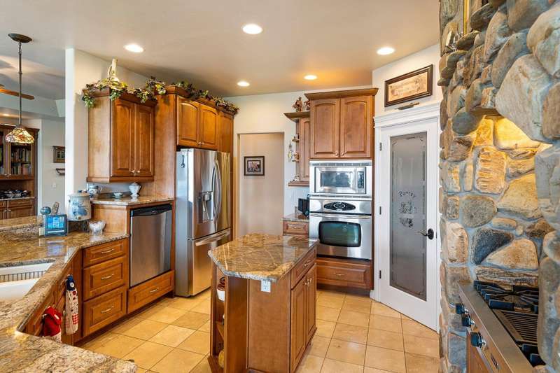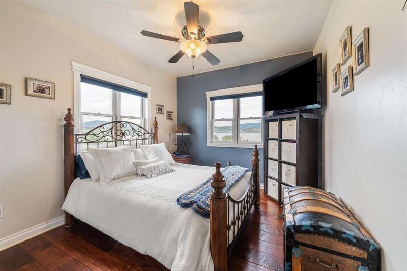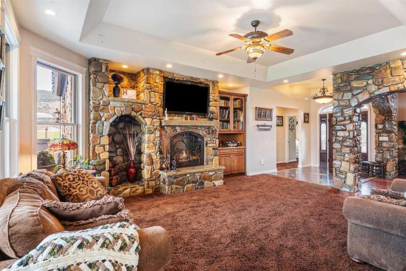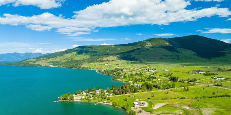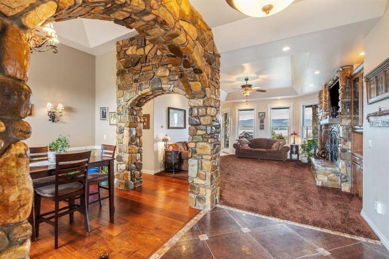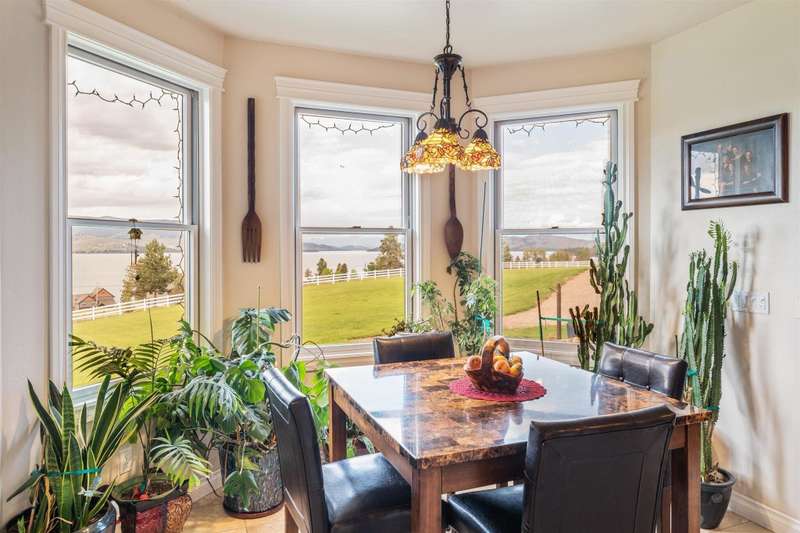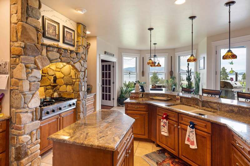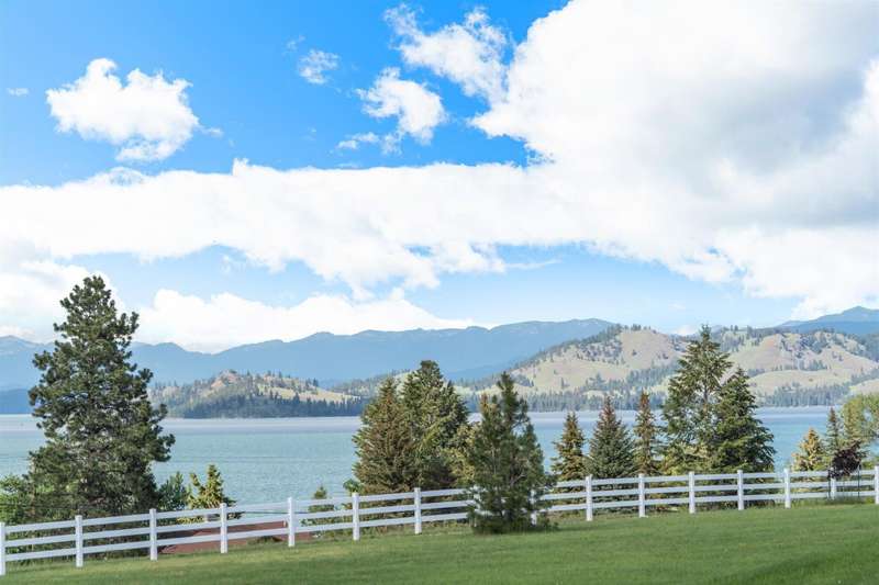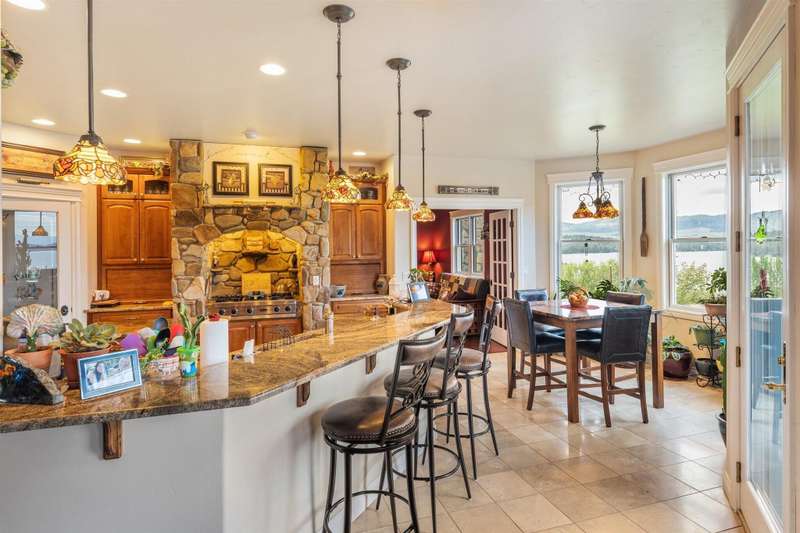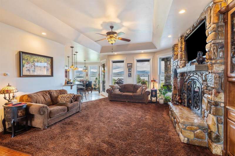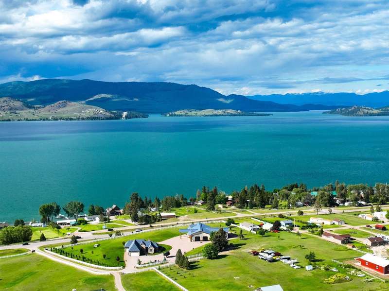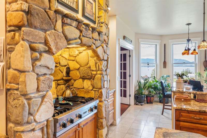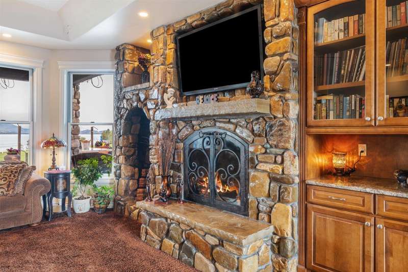 Impressive Stone Masonry home with exceptional mountain, lake and island views. Flathead Lake shows off its two largest islands to the north. Step inside and take in the homes charming finishes. Trimmed with stone are the open living, kitchen and dining areas with fire place and a formal dining room. Primary bedroom provides a cozy see through fireplace, walk in closet and bathroom with garden tub and tile shower. The upper level doors open to a beautiful outdoor living space facing the lake. Downstairs has a warm and inviting family room with fireplace, wet bar and game area, with a walk out door to the yard. Expansive 5,200 square foot shop with large cedar pillars, 16.5 foot walls, heated floor and sawn log siding. Radon: Well Log Available This horse property is fenced with barn. There is an RV hookup area that shares the amazing views. The 6.78 acre property is made up of two lots, each having individual septic and wells. Attached 3 car garage.
