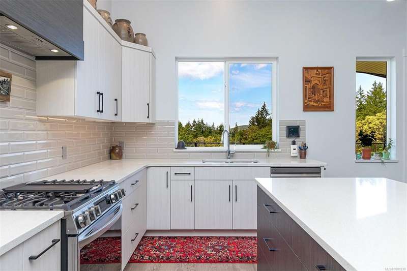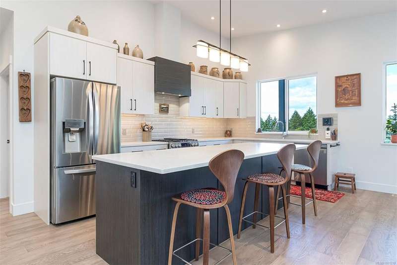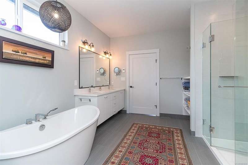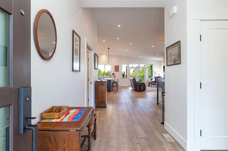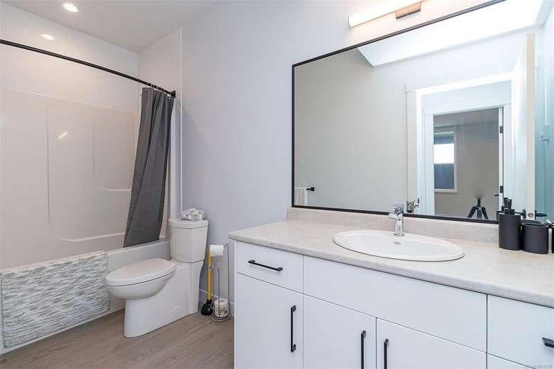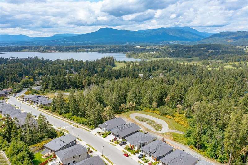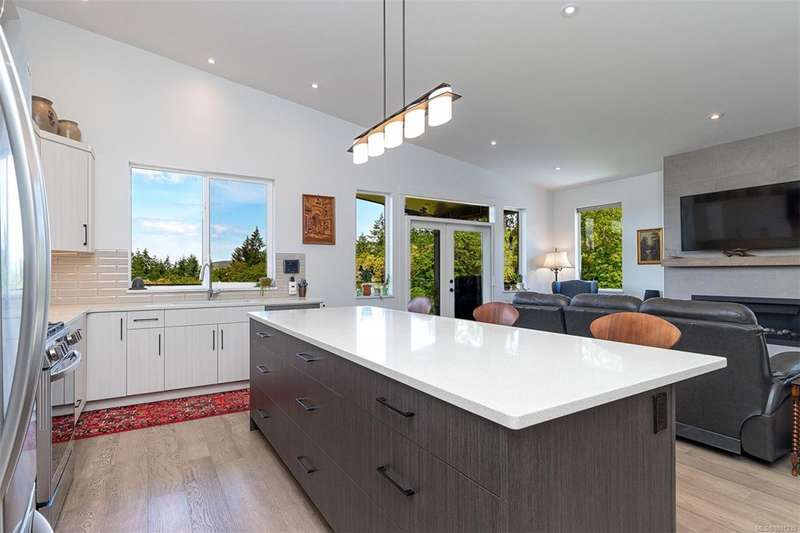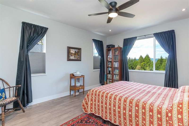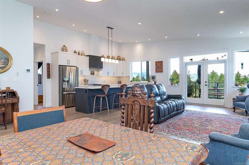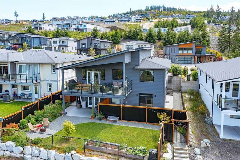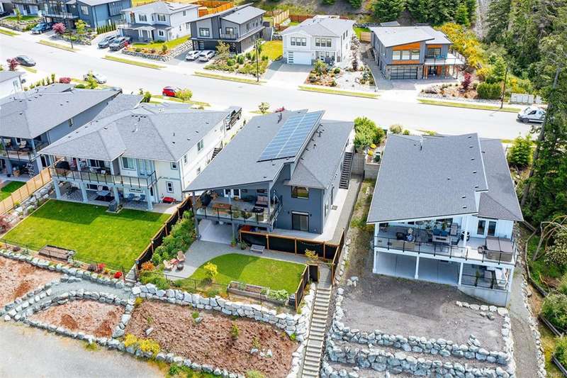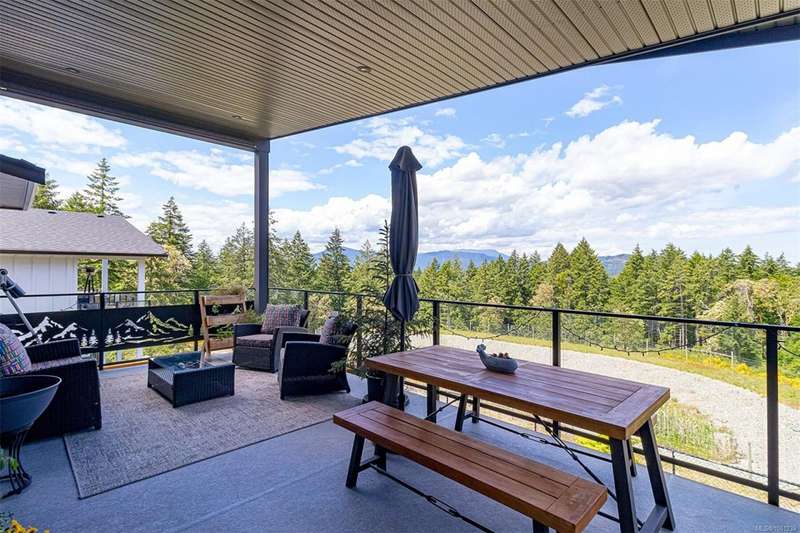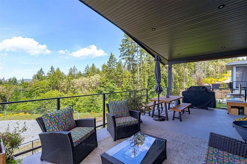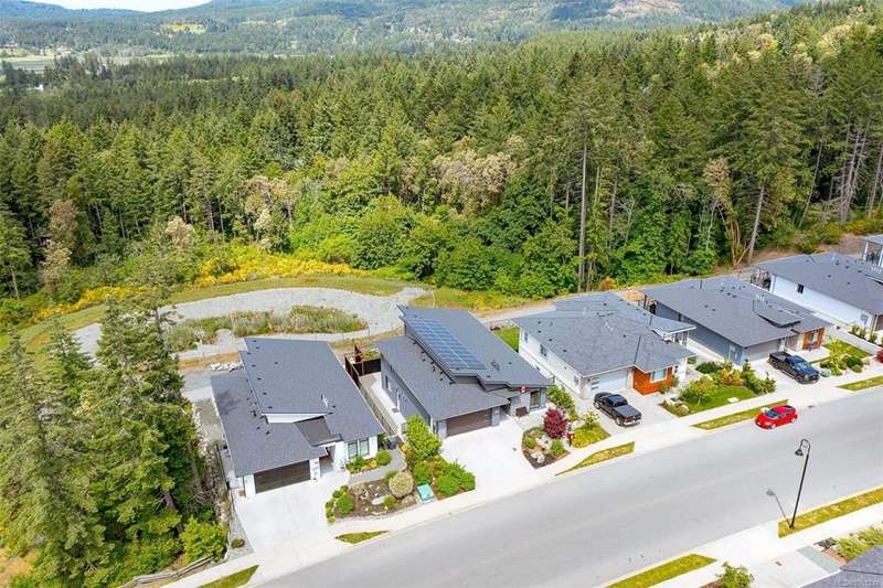Welcome to Maple Bay in the Cowichan Valley. 6257 Highwood Drive is a 2022 custom built home by Elmworth Construction. This contemporary home is bright & thoughtfully designed with amazing privacy and views. Featuring a newly installed solar roof, wood shed, fencing and professional landscaping with native plants and irrigation system. Main level living includes a bright, spacious kitchen with custom cabinetry & quartz countertops, adjacent open area with gas fireplace & double patio doors leading to an all-seasons covered deck. The large primary bedroom is complimented with double sinks, custom tile shower, luxurious soaker tub & walk-in closet. The second bedroom on the main floor could be used as an office. The lower level offers a large media room, 4 piece bath, 2 more bedrooms and family room. The bonus is an additional 1 bedroom suite with private entrance and it has been created with a modern, open concept design. The oversized double garage has room for 2 vehicles & storage.
