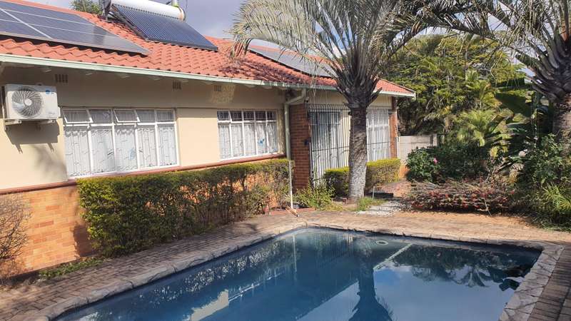 A strong well built property offering opportunity to go big. This erf is in a high res zoned suburb and gives the buyer flexibility to build flats or dwellings. If you are only wanting a residential home, it offers you all the comforts with 3 bedrooms, 2 bathrooms and living area. There is a big entertainment lapa and swimming pool. The erf is pet and child friendly. Double garage with carport for 4 cars. Driveway is neatly paved and there is a remote gate. A home that has been well looked after. The street is a quiet street in a well established suburb.