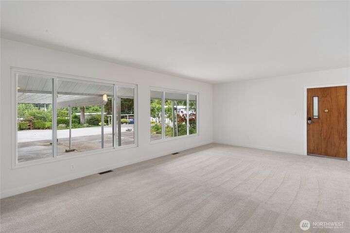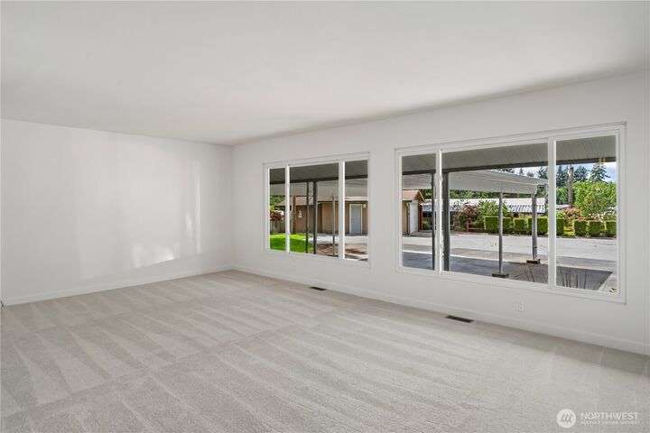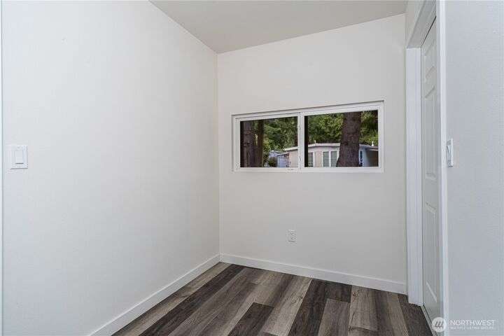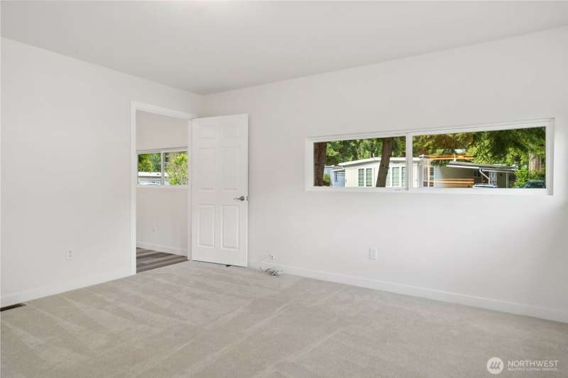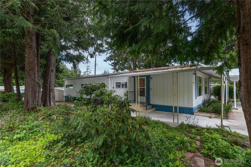 Best lot in Cedar Glen, a 55+ community! Wonderful, serene setting w/double carport plus additional parking. Completely rebuilt to be ADA compliant. All interior walls & ceilings were removed, new insulation, rebuilt trusses, new roof w/20-year warranty, new sheetrock & interior 36” six panel solid core. All new electrical, plumbing converted to PEX, Koehler shower valves, new water heater. New white kitchen cabinets, bathroom vanities, front & back lit mirrors, vinyl plank and carpet throughout. Spacious primary suite has walk-in shower and 2 closets, 1 is a huge walk-thru to office/guest rm (could be sewing or craft area instead) Mins to Poulsbo shopping & downtown, Casino & Ferry.
