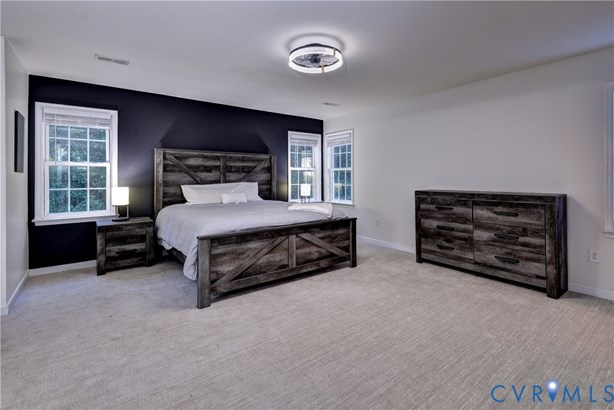 Experience an exceptional lifestyle in this updated home, perfectly situated between Williamsburg & Richmond for an easy commute. Nestled in a highly sought-after community, this property offers resort-style living with exclusive access to a pool, clubhouse, golf course, pickleball courts & scenic walking trails. Step inside to an inviting, open floor plan filled with natural light. The heart of the home is a large, eat-in kitchen designed for both everyday meals & entertaining, featuring an oversized island & newer appliances. The flexible layout offers incredible space & versatility. In addition to 5 bedrooms, the 1st floor includes a dedicated home office, providing a quiet space for remote work. The primary suite boasts a luxurious primary bathroom with a separate soaking tub. Head up to the private third floor, which features a fifth bedroom complete with its own full bathroom, offering an ideal space for a media room, guest suite, or teenager's hideaway. The private, fenced-in backyard is a true oasis, featuring a charming paver patio, a cozy fire pit, and string lights, creating the perfect ambiance for evening gatherings with friends & family.