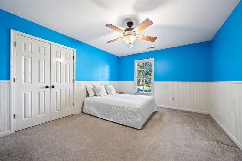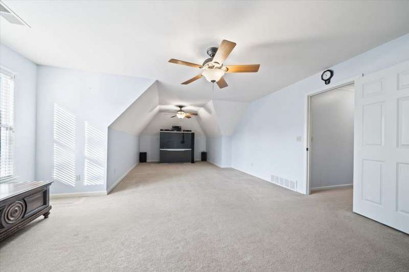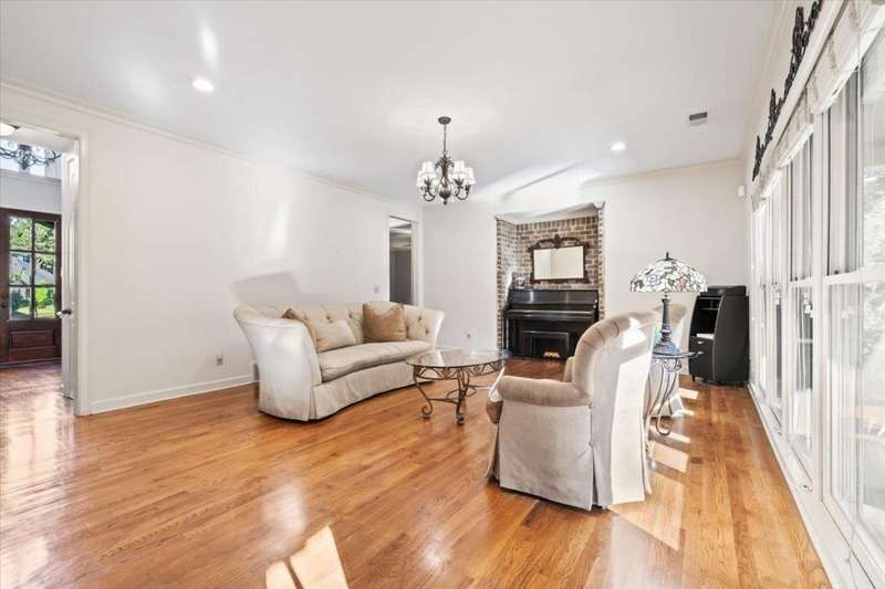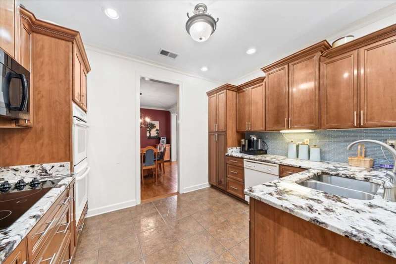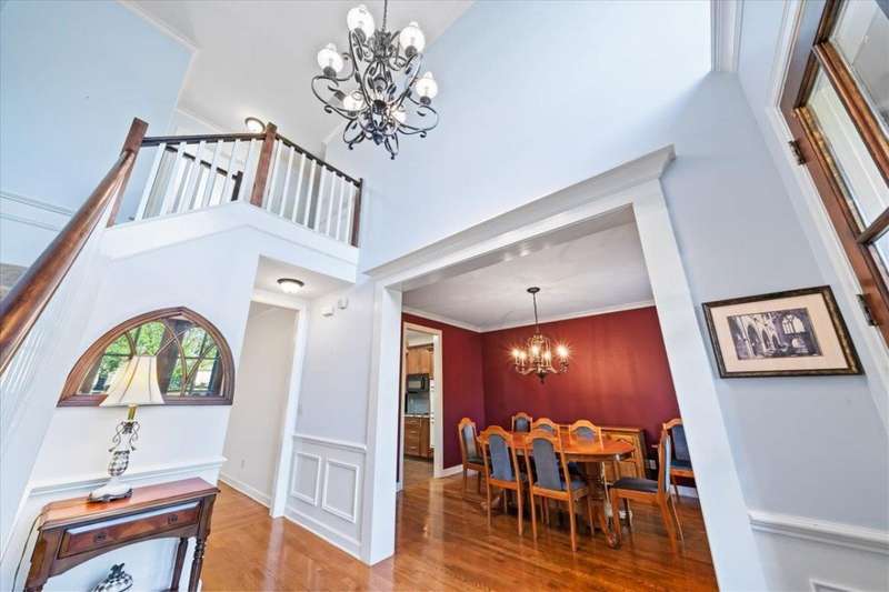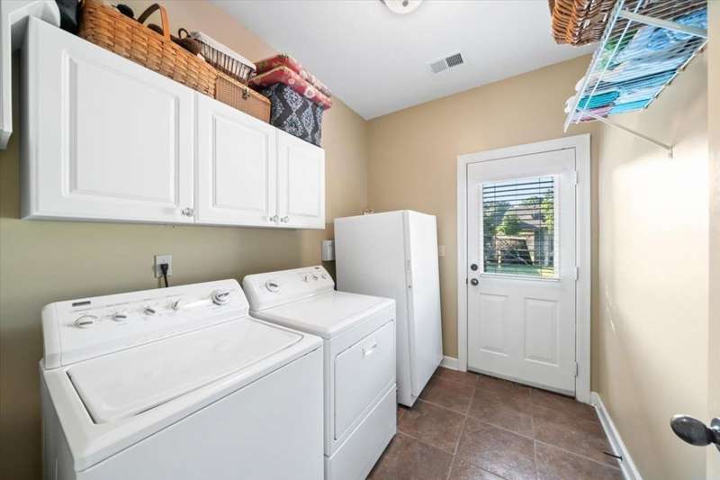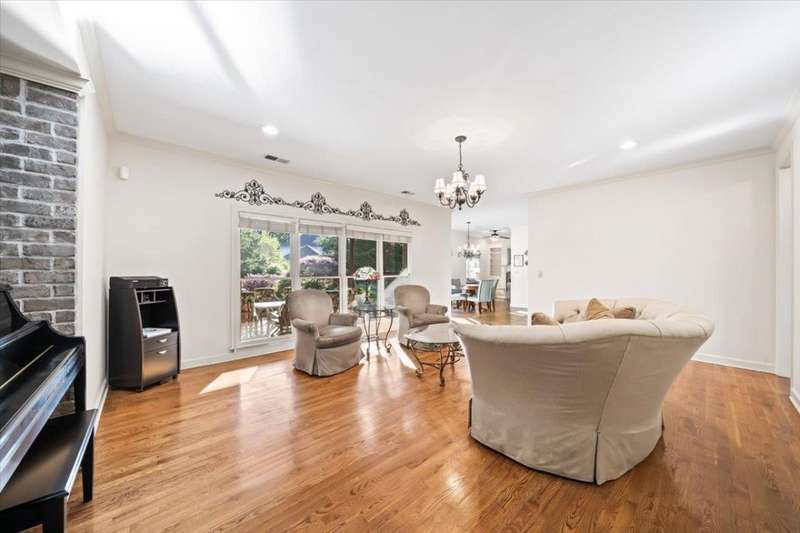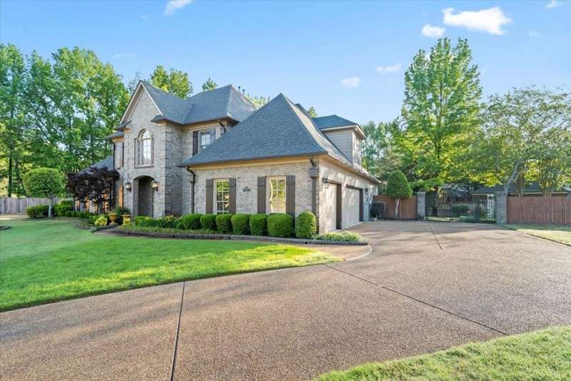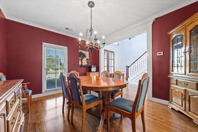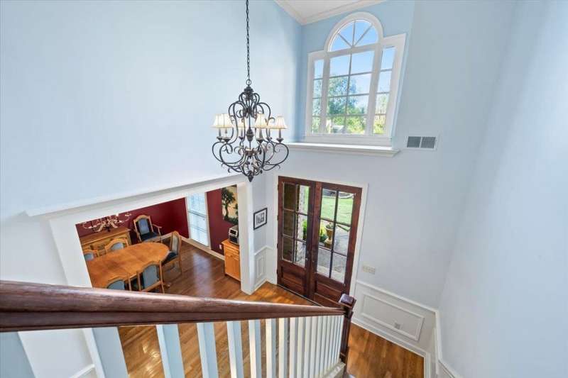 Serene backyard oasis! This beautifully maintained custom 4-bedroom, 3.5 bath home sits on a quiet cove and features a stunning saltwater gunite pool, 3-car garage, with both upstairs and downstairs primary bedrooms. Enjoy the spacious family-sized kitchen with keeping room with gas log fireplace, and built-in bookshelves. Hardwood floors with fresh exterior paint, newer HVAC systems and a hot water tank. Relax on the large cover patio overlooking a lush, tree-lined lot with fruit trees, garden, and an iron gate entry to the backyard. Additional features include a full irrigation system, gutter guards, and a 4 Year Choice Home Maintenance Warranty valid through 2029. VA assumable loan By All at an incredible 3.25%-call for details! Bonus room up, spacious living areas, and community amenities like a neighborhood pool & ponds. Located near top-rated schools and great shopping.