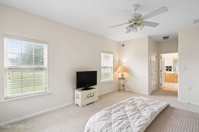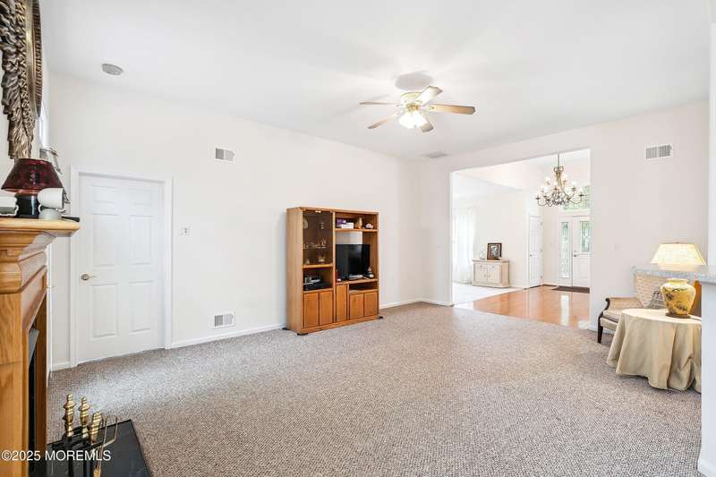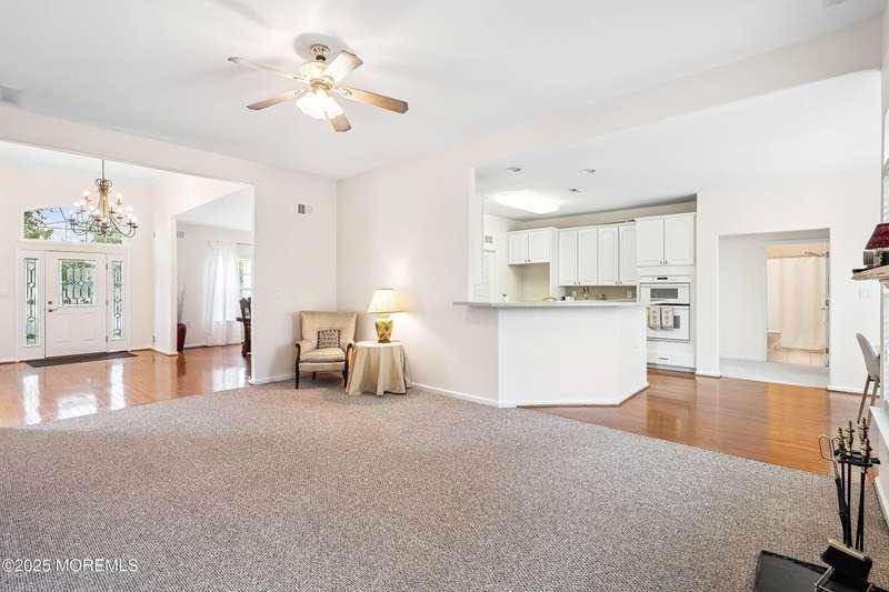 Welcome to Renaissance, an award-winning 24-hr., gated 55+ active adult community & golf at The Jersey Shore. This stunning DEVON ELITE, a rare find, is move-in ready and positioned on PREMIER LOT, offering exceptional privacy. Spanning over 2,000sq.ft., this home features 3 spacious bedrooms, including an En-Suite, 2 full baths. The dramatic entrance greets you with 12' ceilings and glistening HARDWOOD FLOORS. The open floor plan includes a formal Living Room, inviting Dining Rm, and a gourmet kitchen w/ beautiful 42'' cabinetry and a breakfast nook. The expansive Family Rm, complete w/ a gas fireplace is perfect for entertaining. Enjoy 10' CEILINGS & the abundance of natural light. Step outside through large sliders to a beautiful OVERSIZED paver patio, ideal for morning coffee or alfresco dining. Spacious Primary Suite boasts a walk-in closet, and a spa-like ensuite bath. Indulge in RESORT-style amenities: Pools, Golf, Pickleball, Tennis, Bocci, Jogging and Bike Paths and so much more!