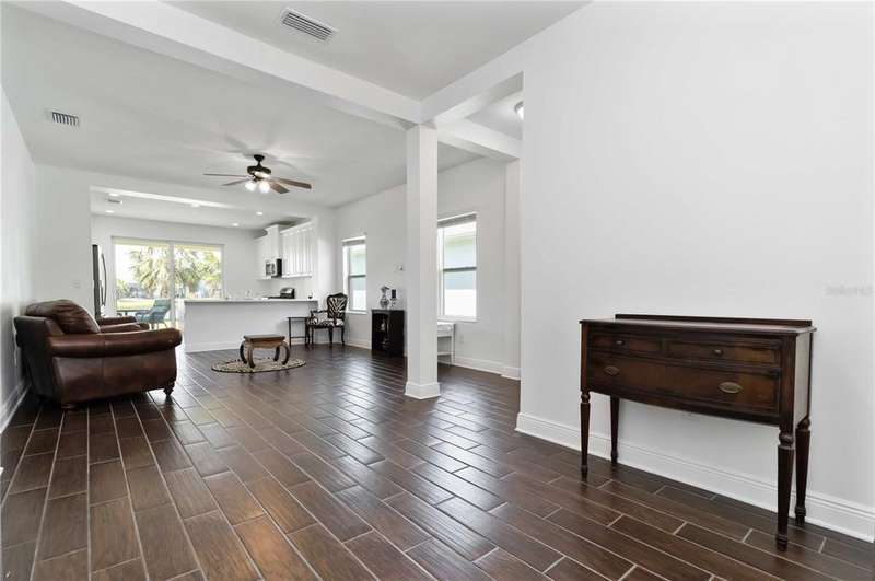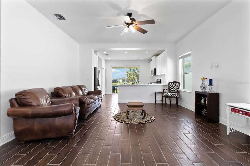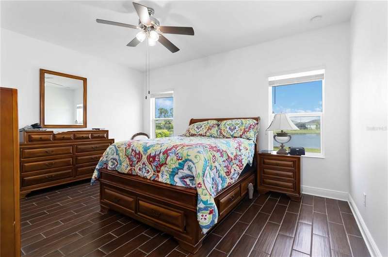 Motivated Seller – Premium Waterfront Lot in Gated Silverleaf Community. Stop scrolling—this is the one! Built in 2021, this impeccably maintained 3-bedroom, 2-bath home with a 2-car garage sits on a premium waterfront lot in the highly sought-after, gated community of Silverleaf. Enjoy peace of mind with impact windows—no need for shutters—this home is storm-ready and energy-efficient. No wind damage from recent storms, and includes transferable 4-point and wind mitigation reports—potentially lowering insurance costs.The stylish wood-look tile flooring throughout makes maintenance a breeze, while the split-bedroom floorplan offers privacy for guests or family members. The spacious kitchen boasts stone countertops and a cozy eat-in space overlooking the water—perfect for morning coffee or sunset dinners. A separate dining room also offers serene water views, adding elegance to your daily routine.Retreat to the primary suite, featuring two walk-in closets and a luxurious walk-in shower in the primary bath. The indoor laundry room makes chores easy, and the garage includes a workbench and utility sink for extra functionality. Silverleaf offers a resort-style lifestyle, with amenities that include a sparkling resort pool, poolside kitchen, private fitness center & spa, basketball court & playgrounds, two dog parks, and scenic walking trails. Conveniently located near the Manatee River, Ellenton Premium Outlets, I-75, and the Skyway Bridge to St. Pete, this home is ideal as your full-time residence or your Florida getaway. Whether you're seeking comfort, convenience, or a touch of vacation living every day—this home delivers. The seller says: Bring all offers! Schedule your tour today and see why life at Silverleaf is simply better.