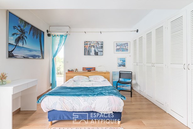 On the night side, the West wing offers a refined suite with bathroom and dressing room with direct access to the terrace, a bedroom that can be used as an office, as well as two additional large bedrooms combining comfort and privacy, each with their own shower room.