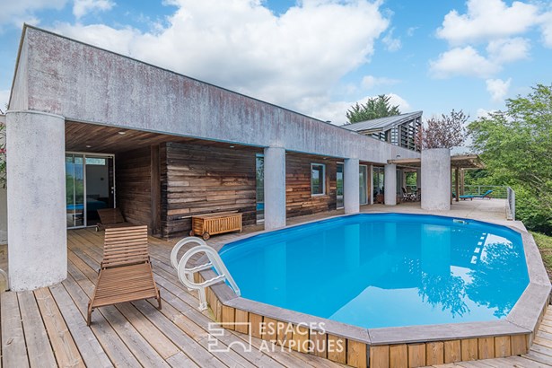From the entrance, light is the common thread: generous volumes, large bay windows, and atypical lines set the tone for a resolutely modern interior, where each space opens harmoniously onto the interior gardens and outdoor spaces. The main living area of 70sqm, vast and airy, accommodates a living room, a fireplace and dining area, and a greenhouse. Extended by a spacious terrace of over 400sqm and an elegant swimming pool, this space becomes the vibrant heart of the house. An office, a separate kitchen with laundry room and pantry complete this generous living space. The panorama stretches hundreds of meters, in an atmosphere conducive to calm and contemplation.