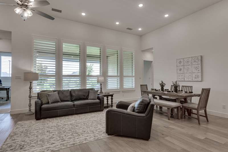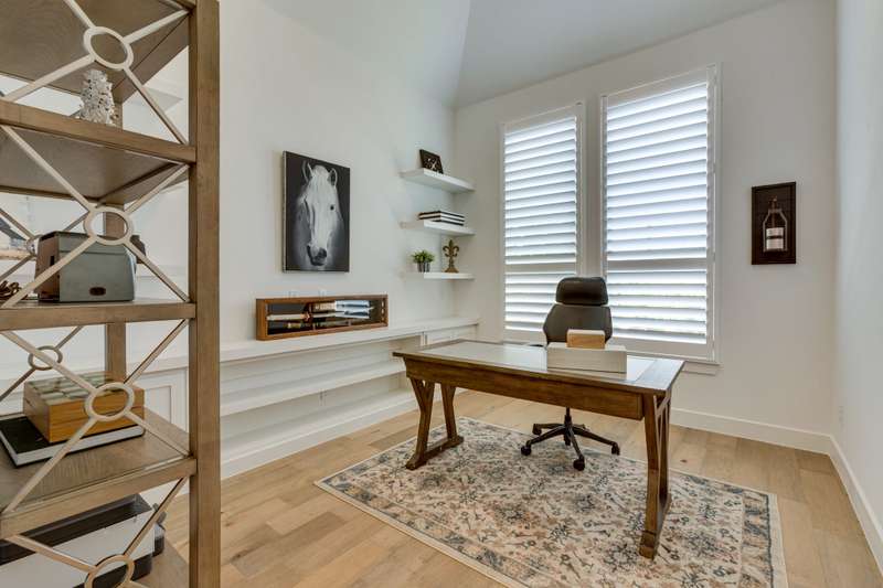 THEIR LOSS IS YOUR GAIN! Welcome to 2327 Miranda Ln, nestled in the prestigious Saddle Star Estates. Priced nearly $200K below comparable new builds, this stunning Highland-built home offers the charm and upgrades of a modelwithout the wait. Unlike a new build, this home includes professionally landscaped front and back yards, custom plantation shutters throughout, a retractable sunscreen for year-round outdoor enjoyment, and a split J-swing 3-car garage. Youll love coming home to this thoughtfully designed 4-bedroom, 3.5-bath layout featuring a spacious family room, elegant dining area, and a built-in hutch with wine rack. The private study, complete with French doors and stylish floating shelves, provides a peaceful and productive workspace. Step through double doors into a grand interior with 13-foot ceilings and 8-foot solid core doors throughout. The premier kitchen is a chefs dream, featuring double ovens, a 5-burner gas cooktop, white cabinetry with a striking black island, and stunning quartz countertops. The extended master suite includes space for a cozy sitting area, while the spa-like bath offers a luxurious freestanding tub and Calcutta gold tile accents. The oversized master closet connects directly to a well-appointed laundry room with cabinetry, a wet sink, and easy access to the mudroom and garage. With rich wood flooring in the main living areas and hallways, this home effortlessly blends luxury with everyday comfort. Come experience the perfect mix of elegance, practicality, and style at 2327 Miranda Lnwhere every detail reflects quality craftsmanship and timeless appeal. Be sure to check out the TransactionDesk:View Documents for a List of Features, Highland floor plan and a link to our video.