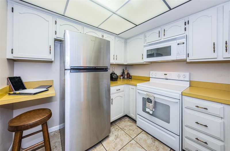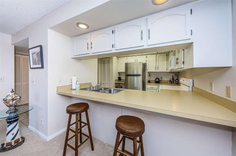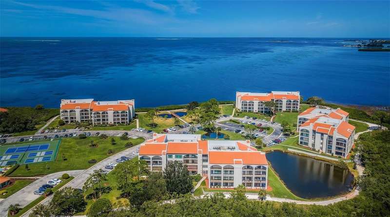 BIG PRICE DROP!! LOWEST PRICED UNIT IN THE LUXURY WATERFRONT CONDOMINIUM OF MARINER VILLAGE WITH GULF VIEW! This is the perfect fit for the value conscious buyer. Amenities include...24 hour guard gate, pickleball, tennis, pool, nature trail, fitness center, sauna, billiard room, plenty of parking for residents and guests, kayak launch and private marina with deep water slips for lease based on availability. This immaculately kept 1st floor condo with NO STEPS features...covered patio with breathtaking views of gulf/sound, ensuite bath, large walk-in closet, spacious half bath, pantry, breakfast bar, desk/work space and 2 storage closets. This desirable location is unmatched. Plenty of local shopping and restaurants PLUS the Innisbrook Resort (location for the PGA Tour's Valspar Championship), a number of beaches, Tarpon Springs Sponge Docks, 2 international airports (TIA and PIE), Raymond James Stadium (home of the Buccaneers) and Disney World. This rare coastal lifestyle opportunity doesn't get any better. But wait...THERE'S MORE! For the 2025 property tax year, this unit is homesteaded. No need to hunt for coins to use washers and dryers. This cost is included in the quarterly dues. Also included is basic television cable. FYI - some furnishings are negotiable. Act now before another financially savvy buyer goes to contract.