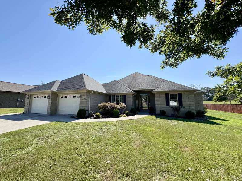 Nestled in the prestigious Horizon Hills is this beautiful all brick ranch style home. Elaborate crown moulding and trim work, hardwood floors, coffered ceilings and tray ceilings set this home apart! The formal living room also has a gas fireplace for aesthetics as well as an emergency heat source! The large kitchen features custom cabinets, granite counters, and a beautiful view of the "farm setting" out back. 3 bedrooms (all with walk-in closets) and 2.5 baths! The master suite boasts "his and her" vanities, a jacuzzi tub, separate water closet, walk-in shower, and large walk-in closet. The oversized 2 car garage has plenty of space for a work bench, mower, deep freezer, etc. Enjoy the screened in back porch and the fully fenced yard. Less than one mile to a nearby boat ramp on Lake Cumberland, just minutes from Somerset! Call today for a private tour.