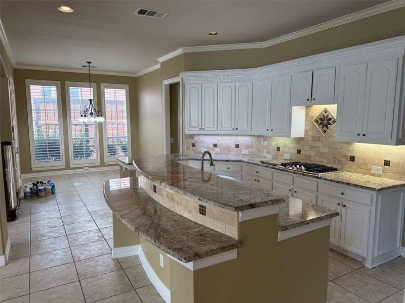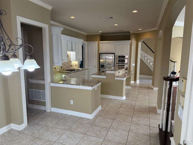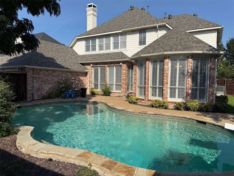 Fabulous 5-bedroom, 4 baths with the primary and guest room downstairs. The large kitchen that opens up to the first floor living room with a pool view. The first floor also accommodates a breakfast area right off the kitchen and formal dining room. There is a large office area as you enter though the front door. There are 2 staircases that lead to the second floor that host 3-bedroom and a large media room.
