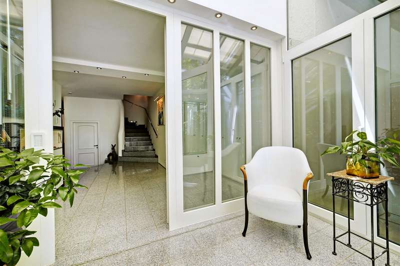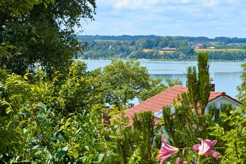 Private paradise with lake views - villa with charm, style and quality of life Welcome to a place that makes you forget the everyday - where idyll, comfort and a pleasant feeling of living come together. This extraordinary villa half in a sought-after location near the lake opens up a lifestyle that is otherwise only known from vacation dreams. Just a few minutes' walk from the shore, you can not only enjoy direct lake views, but also unforgettable sunsets from your spacious terrace and the lovingly landscaped south-west-facing garden with pond. The fully enclosed garden protects your privacy and creates a very personal retreat surrounded by greenery. The property itself boasts a spacious floor plan over two floors, an impressive ceiling height in the living room and a harmonious interplay of elegance and comfort. Custom-made fixtures and fittings offer optimal storage space, while the modern Bulthaup kitchen will delight gourmets. In winter, a stylish fireplace ensures cozy evenings, while in summer the garden invites you to go barefoot. A special highlight: the private wellness area with pool and sauna - ideal for relaxing, spending time together or simply getting away from it all. Thanks to a well thought-out security concept, a quiet residential street and good maintenance, this home is not only a retreat, but also a place to take a deep breath, recharge your batteries and arrive. The house offers a solid basis - for a careful makeover. A fresh shine could impressively bring out the special potential of this property. Whether as a family nest, a retreat for creative people or a stylish country residence - individual living dreams can be realized here. A unique home for people with a sense of quality, tranquillity and something special. Feel invited to get to know it personally.