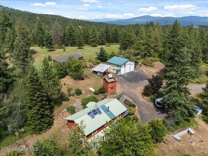 Your North Idaho homestead awaits! Experience energy-independence with a solar-hybrid electrical system that lets you plug into the grid when you want. This efficient, five-bedroom home is set on 10 acres (subdividable into two 5-acre lots) with plenty of southern exposure, mature fruit trees and ample space for large gardens. You'll have plenty of room to store your harvest in the basement root cellar and get a jump on the next year's growing season with your attached greenhouse. The 36' x 30' shop has 12' and 14' doors and a 10 x 30 lean-to to store all your equipment and toys. Less than 30 minutes to CDA! Don't let this opportunity pass you by!