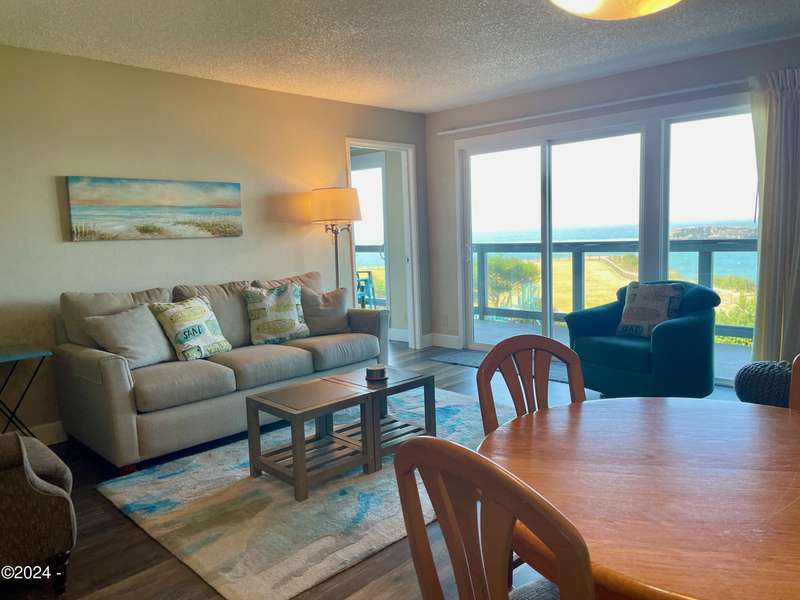 Come enjoy your own spectacular view of the Central Oregon Coast with this 1/8th ownership. You will enjoy 6 weeks per year in your own coastal retreat. This unit has an updated kitchen with quartz counters, laminate wood floors, stylish furniture and great ocean view! Whale watch, bird watch, watch the sun set over gull rock, or stroll down to the tide pools and see the sea life. The Inn at Otter Crest has a pool, spa, saunas, beach access, walking trails and so much more!