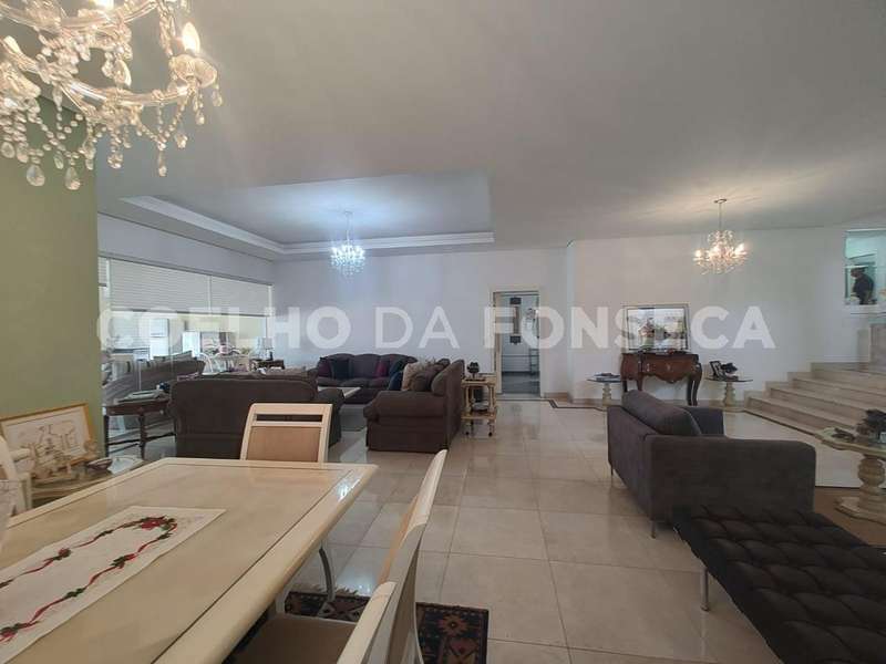Sala com pé direito alto ,deixando a casa super arrejada,sala grande para 4 ambientes,possui um escritorio ,sala de tve home theater,lareira.