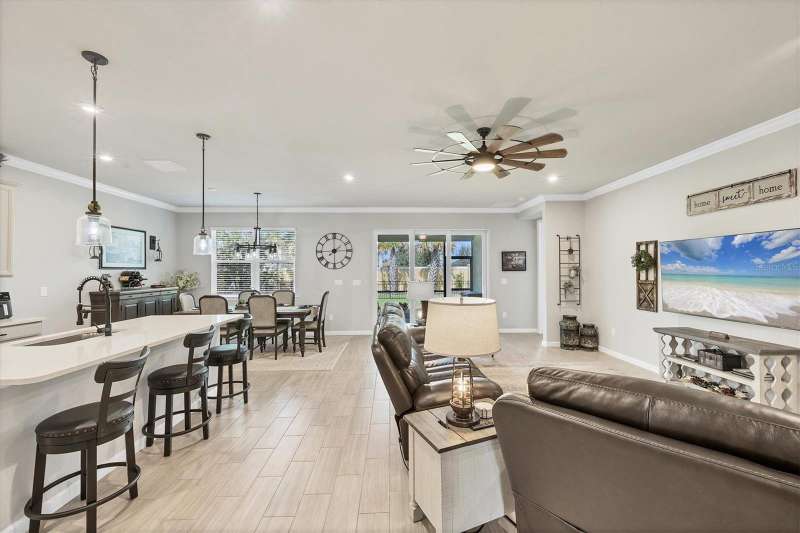 This 2023 Aurora II Coastal elevation floor plan offers a Charming Front Porch, 3 bedrooms, 2 baths, and a den/office, perfectly positioned on a private oversized end lot in the maintenance-free community of Renaissance at Wellen Park. This beautifully maintained home shows like a model, featuring crown molding throughout, spacious kitchen island with expansive walk-in pantry, tile flooring throughout the home, a huge walk-in closet in the primary bedroom, a custom walk-in shower in the guest bath, premium epoxy garage floor, laundry room sink, and a black aluminum fence. The private fenced-in oversized yard provides ample space for a future pool. For peace of mind, the home includes impact windows, a concrete tile roof, and is located in the desirable “X” flood zone (verified by Letter of Map Revision Certificate). Residents enjoy a low HOA fee, which covers two gated entrances, landscaping, irrigation, and access to resort-style amenities—including a clubhouse, pool, sauna, fitness center, tennis, pickleball, bocce, walking trails, and a full social calendar with an activities director. Conveniently located steps away from Downtown Wellen Park, with dining, shopping, entertainment, a farmers’ market, Costco, Publix, and the Atlanta Braves Stadium, plus easy access to the Gulf beaches of Southwest Florida, Golf Courses, and Quick access to I-75. Why wait to build when you can enjoy this move-in-ready home that blends quality, comfort, and privacy in one of Wellen Park’s premier communities. See attached Letter of Map Revision for X Flood Zone.