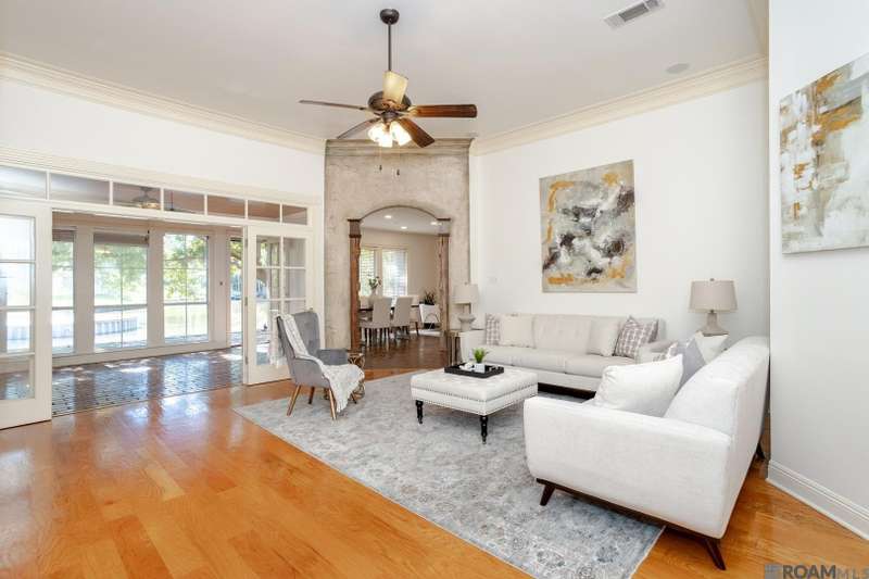 Stunning home situated within a cul-de-sac in desirable Highland Trace neighborhood featuring a whole house GENERATOR. Located just off historic Highland Road with a perfect blend of charm and space. Step inside to find the expansive living areas overlooking the lake featuring wood and brick flooring, high ceilings, and crown molding in every room. Natural light floods the sunroom, creating a bright and airy retreat. The OFFICE is complete with a double-sided fireplace with lake views and a separate courtyard patio. The gourmet kitchen is a chef’s dream, boasting a large island, 5-burner gas cooktop, wall oven, microwave, and brand-new cabinetry. Adjacent to the kitchen is a breakfast area and a keeping room, perfect for casual dining. The formal dining room is just off the foyer. The primary suite includes dual vanities, a jetted tub with a chandelier above, a separate shower, and a spacious walk-in closet. Step outside into your backyard that overlooks the lake, complete with a patio for relaxing or entertaining. Additional amenities include a 2-car garage and storage room. This home truly has it all, combining character, neighborhood charm, and breathtaking views in the newly incorporated City of St. George, Louisiana! On the St. George school bus route!