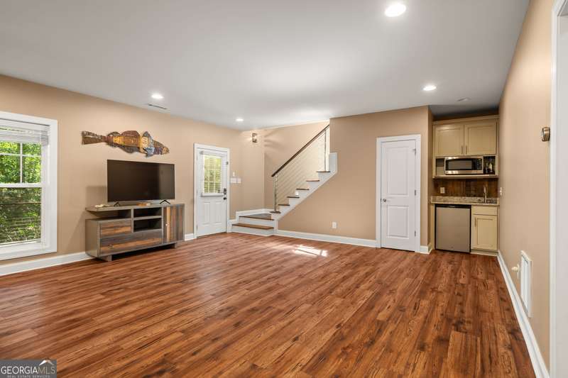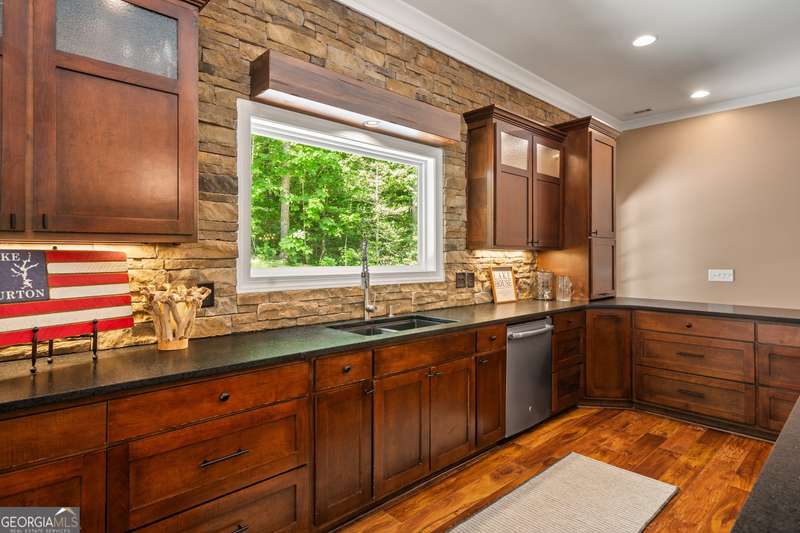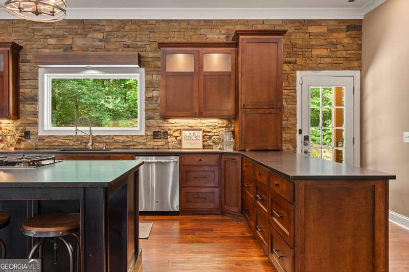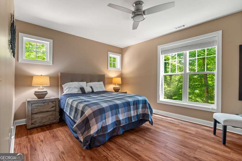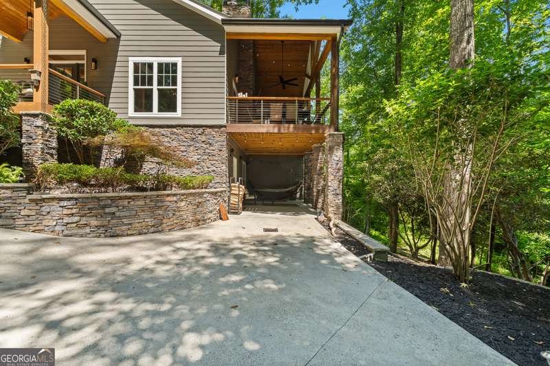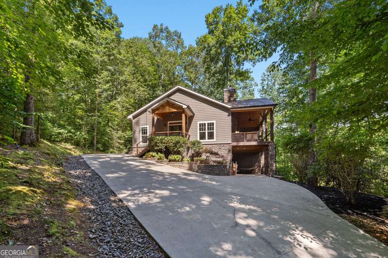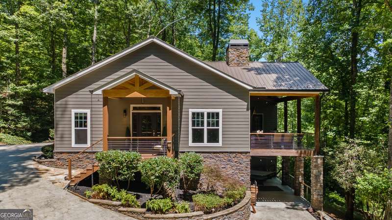 Stones Throw at Lake Burton - Custom-designed 4BR/3.5BA home privately nestled on approximately 1 acre in the heart of Lake Burton. Located on a gated and landscaped knoll, this fee-simple property offers rare seclusion just seconds or a stone's throw from LaPrade's Marina and restaurants. Just load up the golf cart or ATV for a short trip across the road to the marina where you can store your boat. Surrounded by native hardwoods, mountain laurel, and rhododendrons, the natural setting is enhanced by a charming babbling brook and a picturesque approach. Inside, the home features quality finishes, open living spaces with high ceilings, and a layout designed for comfort and entertaining. Enjoy the best of Lake Burton living-convenient access to the lake with no compromise on luxury or privacy. A one-of-a-kind opportunity in a prime Burton location. The main level features a large custom kitchen with granite countertops that overlooks the dining and large family room. Primary Bedroom with large ensuite bathroom, a second bedroom with an ensuite full bath and a half bath for guests. The lower level features a family/game room, 2 more bedrooms, a full bath, laundry room and storage room. Extras include a Charging station for a tesla and a whole house generator. All furnishings interior and exterior remain with the property.
