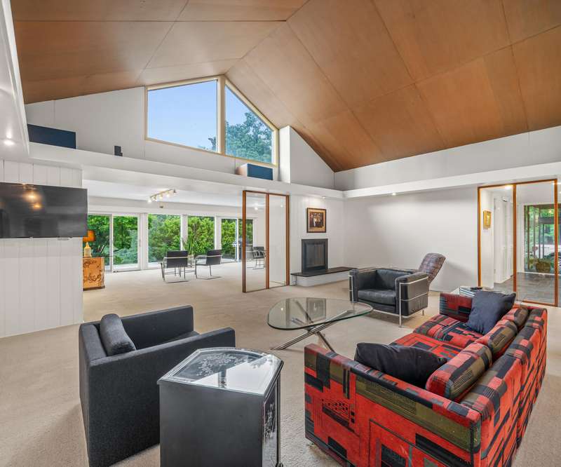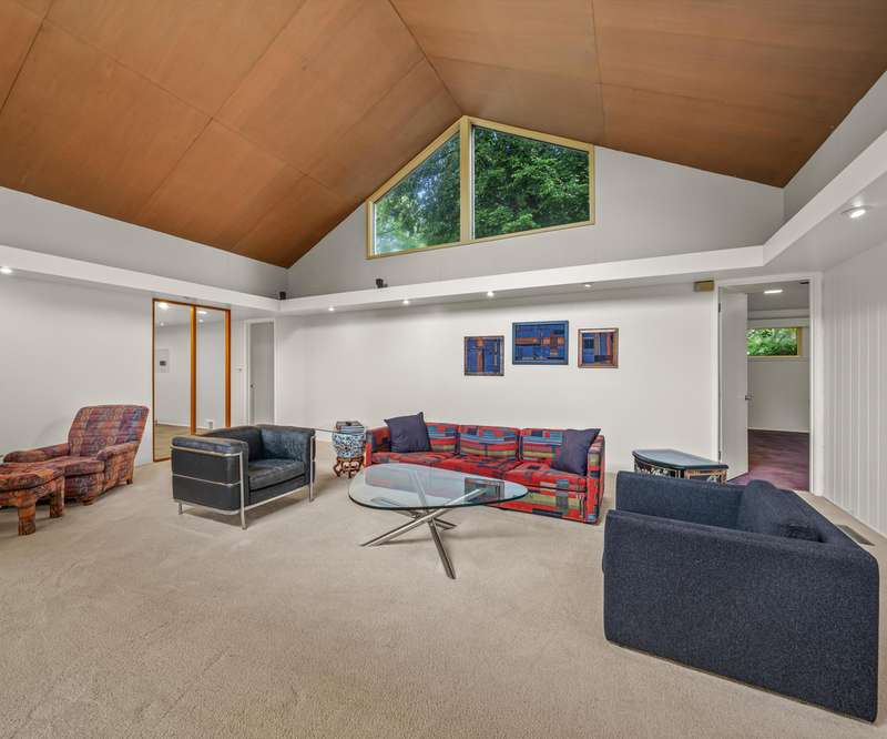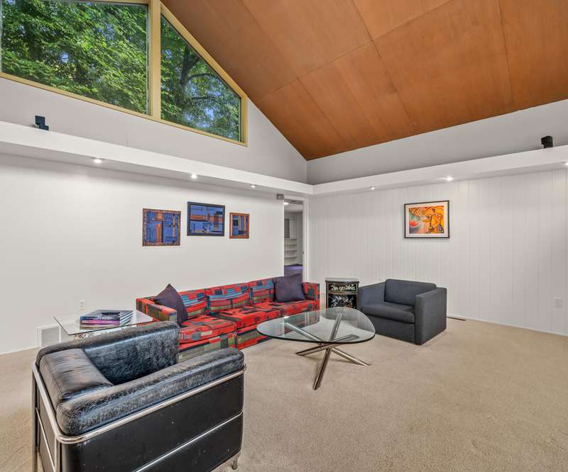 This Mid Century Modern, designed by Robert Metcalf, is a stylish retreat like no other! Nestled into a wooded hilltop setting adjacent to Braun Nature Area, this open and airy abode has been freshly painted and nicely updated while maintaining its original integrity. The expansive living room with fireplace and vaulted Walnut-paneled ceiling opens to the family/gathering and dining area and has sweeping views of the resort-inspired yard through the 24' glassed wall with sliding doors. The Galley is absolutely classic, Sub-Zero refrigerator and new counters. The adjacent laundry room has a second Sub-Zero. Five bedrooms offer terrific options for work-from-home spaces, too! Out back is the gunite pool and pool house that beckon family and friends for backyard bar-b-ques and entertaining! Home Energy Score of 3. Download report at stream.a2gov.org.