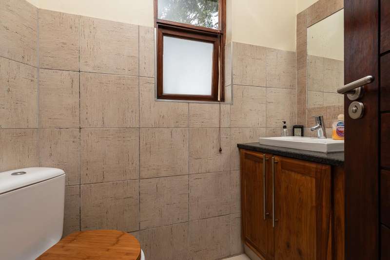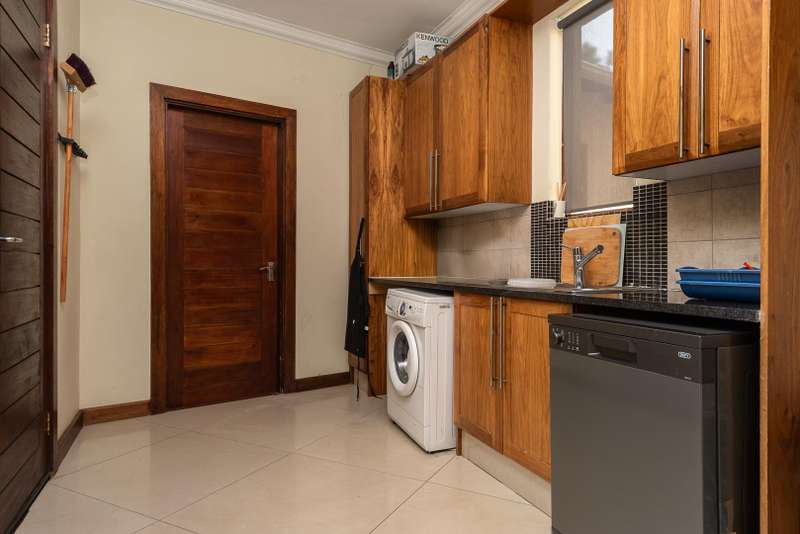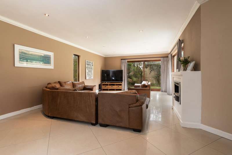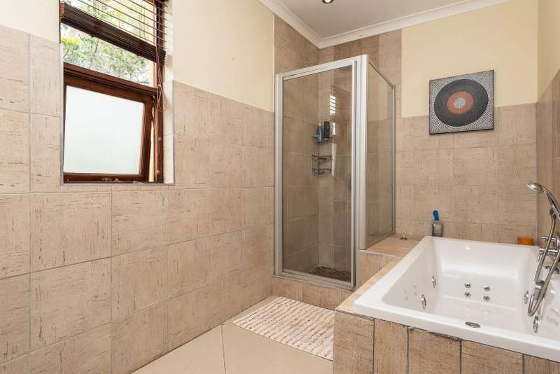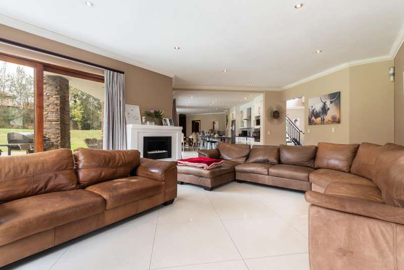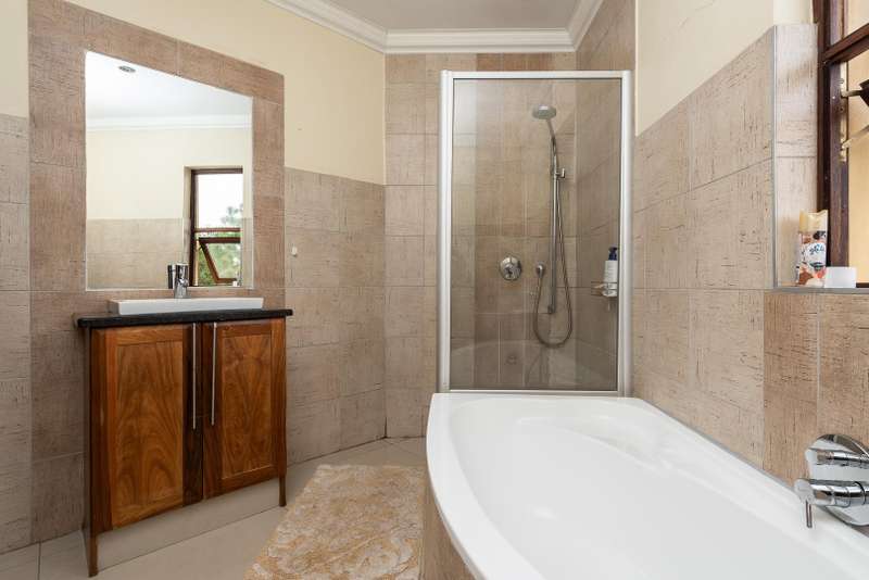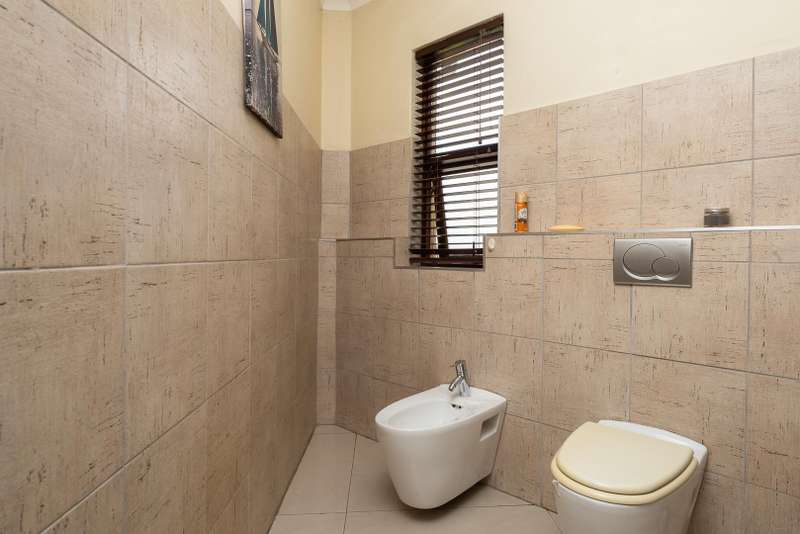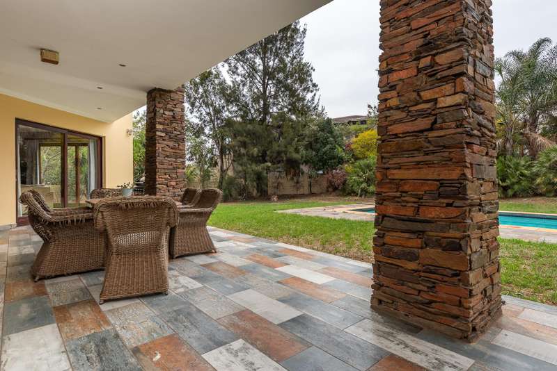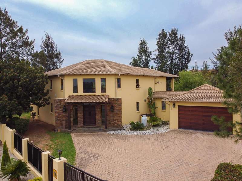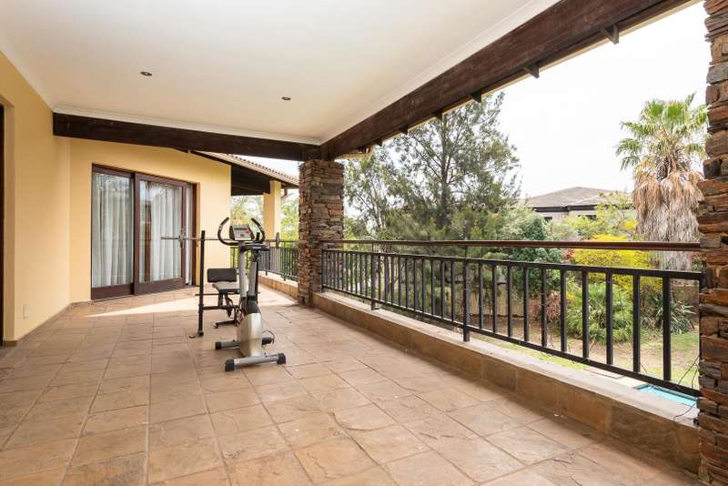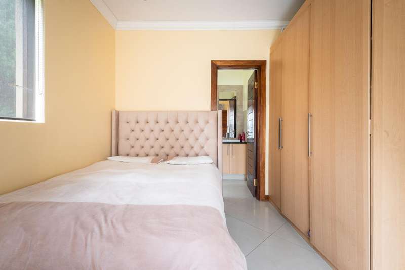 This stunning family home in Summerset Estate, Midrand, is set on a generous 2200 square meter stand. It features a spacious reception area and a massive lounge that opens to the lush garden. The modern kitchen overlooks the pool, enhancing the living experience. The dining room, adjacent to a wine rack, leads to the scullery. Downstairs includes an en suite bedroom, while upstairs offers a small study, a well-sized second bedroom, and a cozy pyjama lounge connecting to a large balcony with backyard views. The main en suite bedroom boasts a walk-in closet and balcony access.