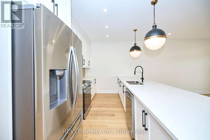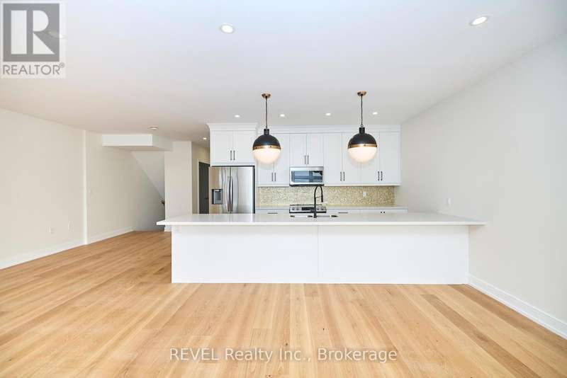 Welcome to your dream home! This stunning 3-bedroom, 2.5-bathroom freehold townhouse in the charming town of Fonthill is sure to impress. As soon as you walk in, you'll notice the 9' ceilings creating a spacious and open feel throughout the home. The custom-designed kitchen features a stainless steel double sink with a Riobel dual spray faucet, massive island, floor to ceiling soft-close cabinetry complemented with quartz counters. The large living and dining space with oversized windows and an abundance of LED pot-lights is perfect for entertaining. Covered deck off of the living space for a natural outside extension of the home. Main floor offers an additional convenience of a mudroom off of you single car garage and 2-pce powder room. Large primary bedroom on the second level with an ensuite fit with double vanity, a Berlin Free Standing soaker tub, a tiled shower and spacious walk-in closet. The 2 additional bedrooms also have the luxury of enjoying the main bath with double vanity and a Mirolin tub shower combo. Second floor laundry equipped with plenty of storage and sink. The basement is unfinished but posses tons of potential with plenty of natural light and a walkout to a covered patio. This beautiful townhouse is move-in ready and waiting for you to make it your own. Don't miss out on this incredible opportunity to own a stunning home in Fonthill! (id:7434)