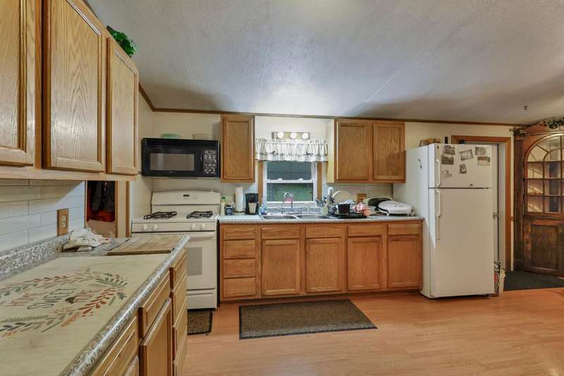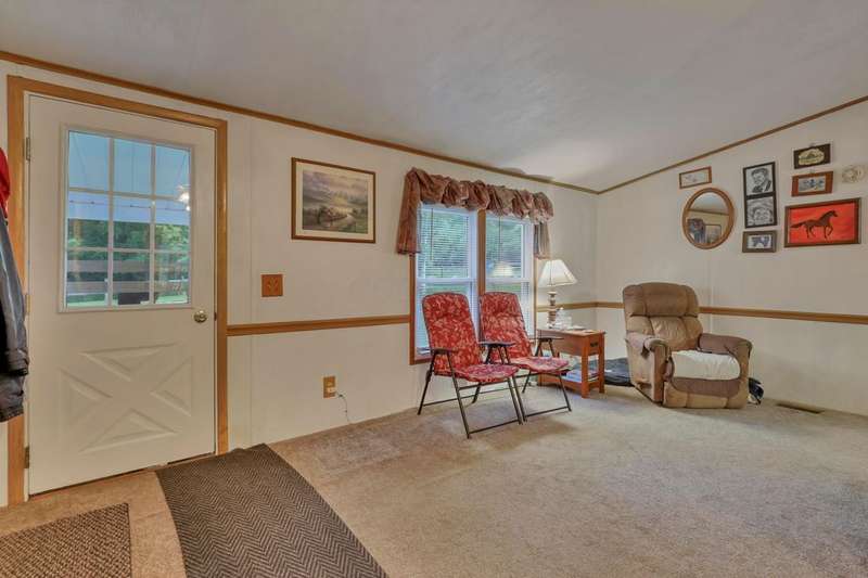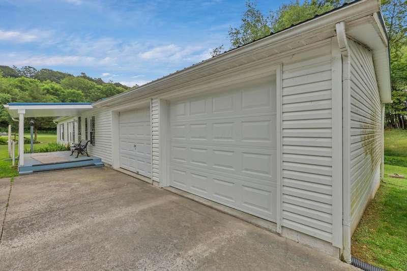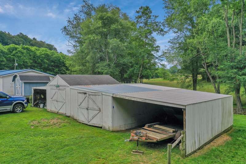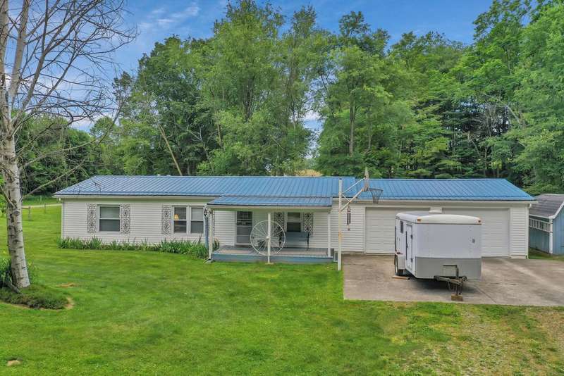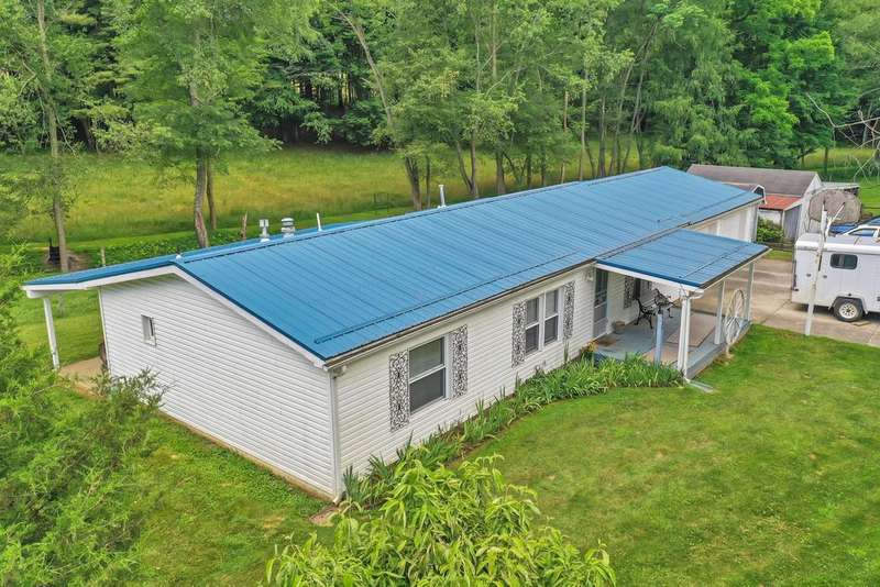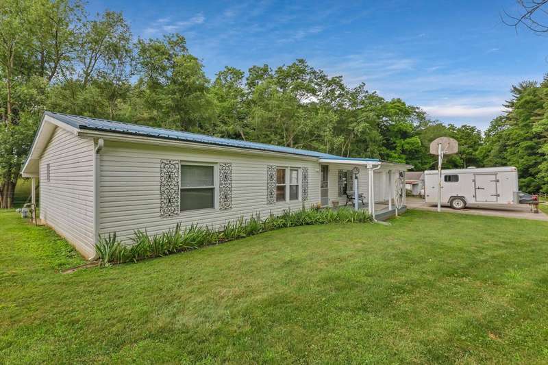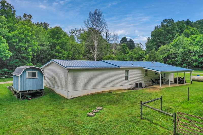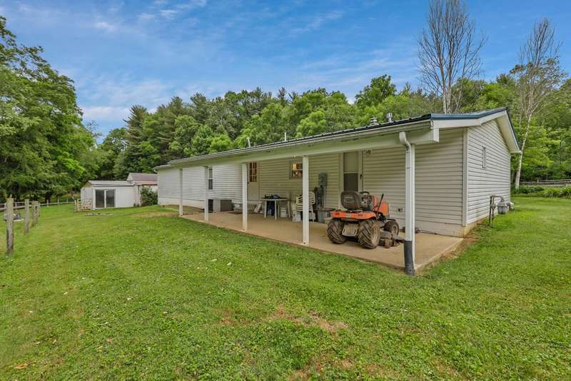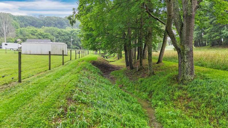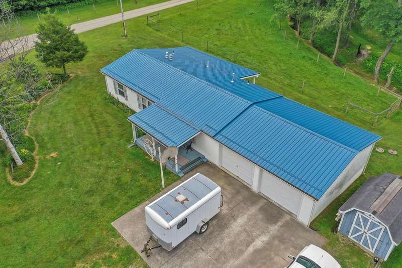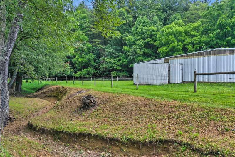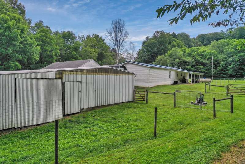 Mini farm and peaceful lifestyle you've been looking for?featuring a spacious family room, kitchen, laundry room, 3 bedrooms, 2 full baths, and a recreation room that could serve as a 4th bedroom. Enjoy the outdoors from the covered front and back porches. Situated on a total of 9.98 acres (2 parcels), the property also includes a 1.5-car garage, small barn with lean-to, a stream, and two fenced pastures. Fencing is set up for electric use?just add your own battery pack, and an invisible fence!. The additional lot is mostly wooded with an additional barn on the hilltop. Build a home, hunting or just a place of peace. So much potential awaits! For safest access, approach the property from Martinsburg Road.