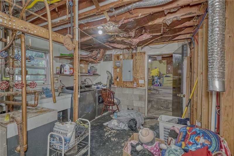 Opportunity to build instant sweat equity and make it your own! Approximately 2,500 square feet. Spacious 5 bedroom, 2 full bath home. Recent updates include new windows (2019- upstairs bedrooms & bath), new electric (2019- lower level), new roof (2019- garage/partial house), H20 tank (2023), kitchen appliances included (2023). Central air (needs new evaporator). Was set up as a catering kitchen, NYS licensed, this space offers an incredible opportunity for anyone looking to run a catering business, a daycare or similar. This space has its own separate entrance as well. Bring your vision and ideas. This is not just an opportunity for sweat equity, it can also be an income generating opportunity as well.