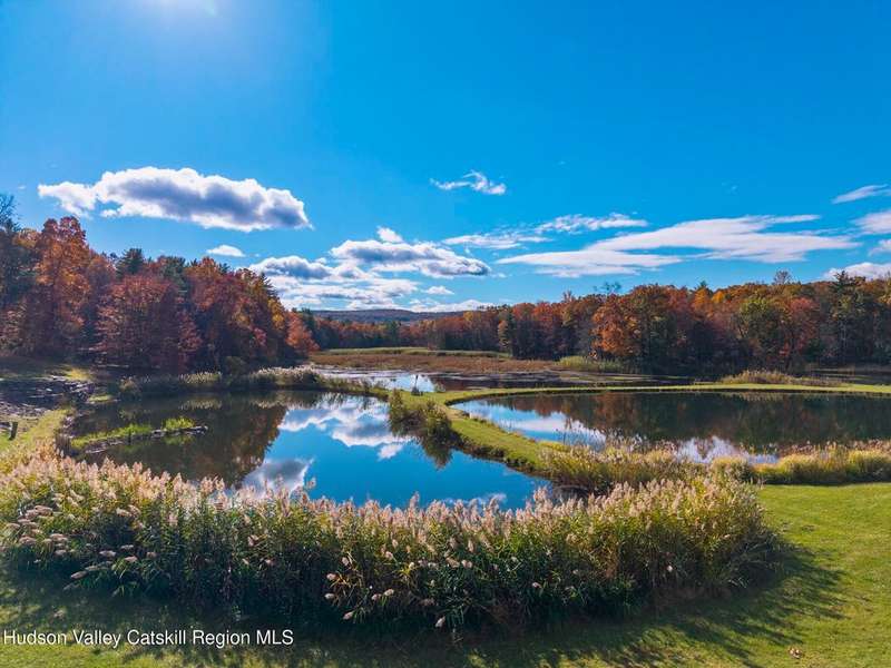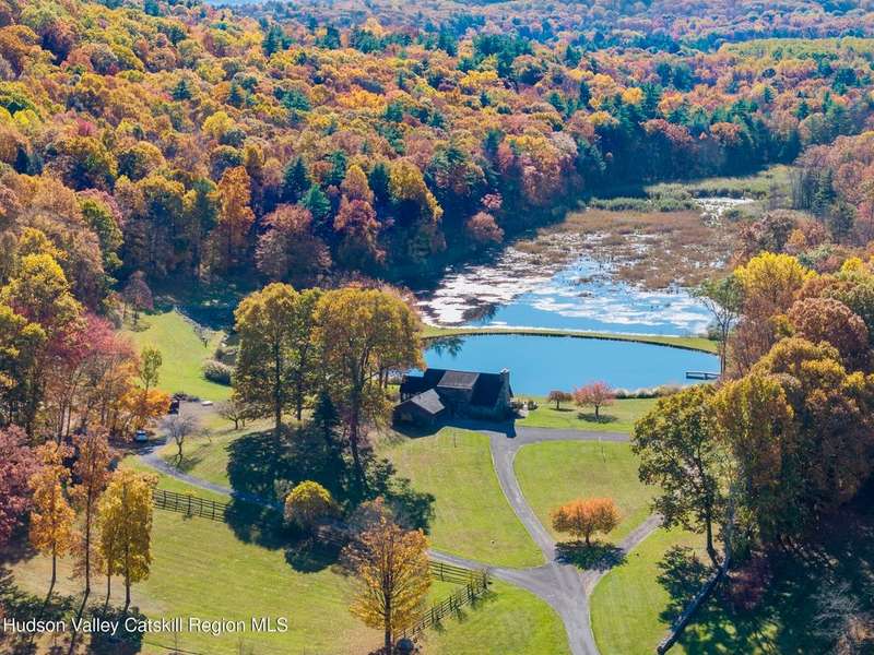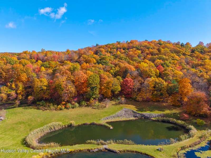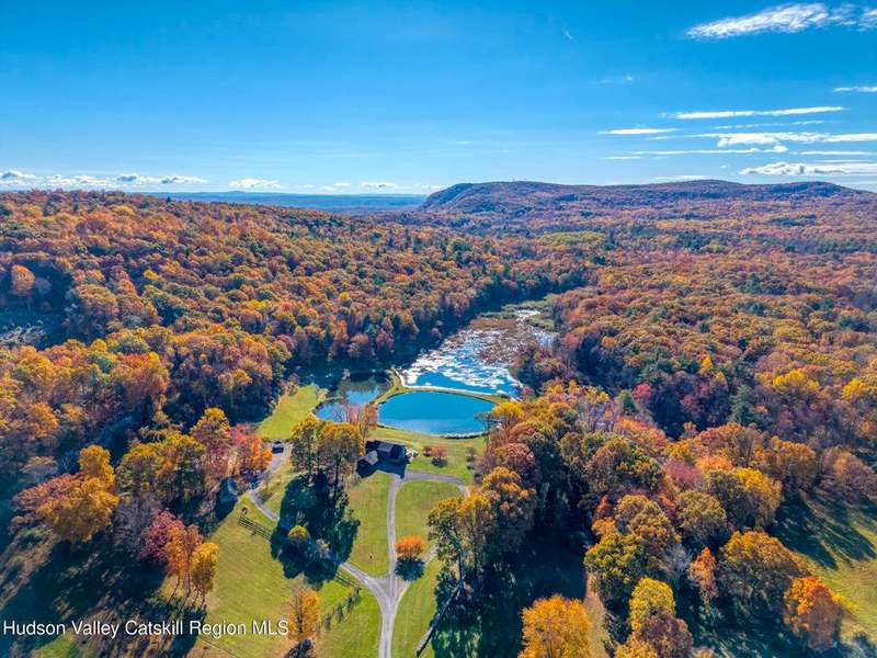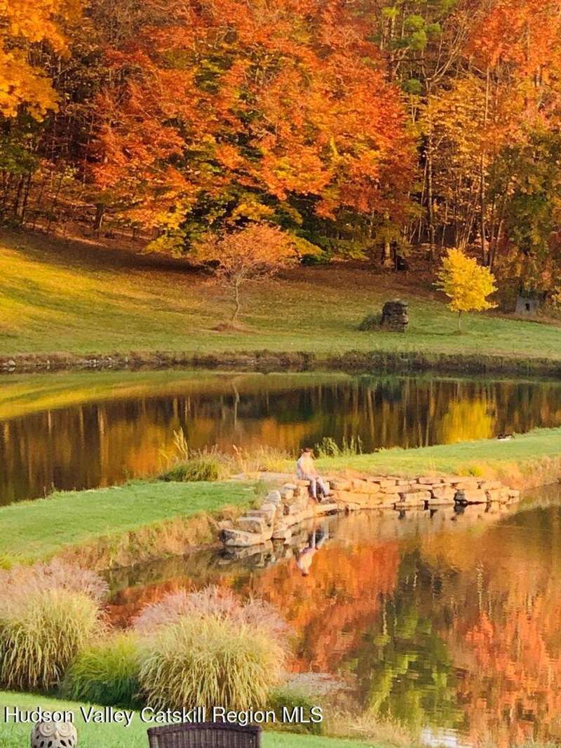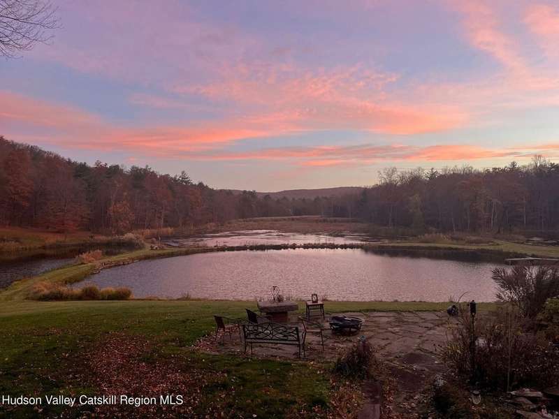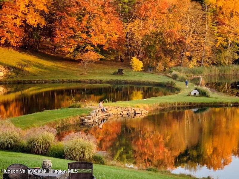 Escape to your own private retreat nestled in the woods! This 3-bedroom, 1.5 bath home offers the perfect blend of comfort and country charm. The spacious kitchen is designed for entertaining, with ample counter space and room for gathering both indoors as well as flowing out onto the two tiered deck overlooking the ponds and a waterfall that can be turned on simply by a switch in the home. Work from home or host extended family or friends with an additional flex room on the first floor. Unwind by the cozy fireplace in the living room on crisp winter evenings, or step outside and experience the serenity of the forest, open meadows, and water views. Upstairs, you will find 3 spacious bedrooms and an open sitting area complete with gorgeous views. Enjoy 18.3 secluded acres featuring 4 stocked ponds, ideal for fishing, reflection, and quiet afternoons outdoors. A 3-stall barn with tack room electric and water provides space for horses, hobbies, or storage, while the large detached garage adds even more room for vehicles and equipment. Whether you're looking for a peaceful year-round residence or a secluded getaway, this hidden gem is perfect for those seeking privacy, adventure, and a connection to the outdoors. Located 80 miles from NYC and close and convenient to historic Kingston, your peaceful retreat awaits in the heart of the Hudson Valley.
