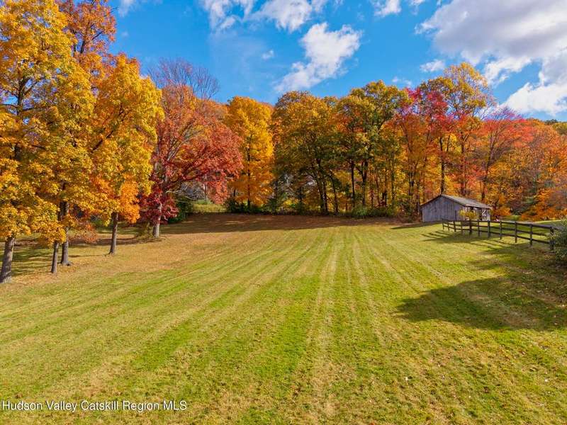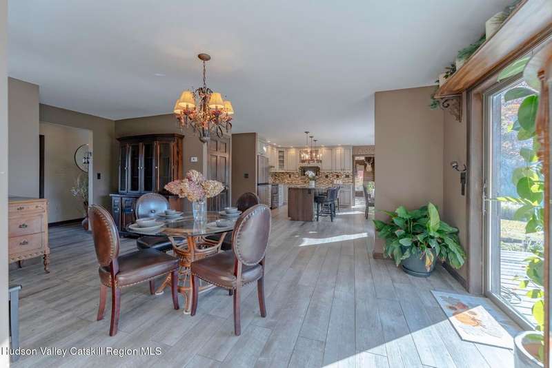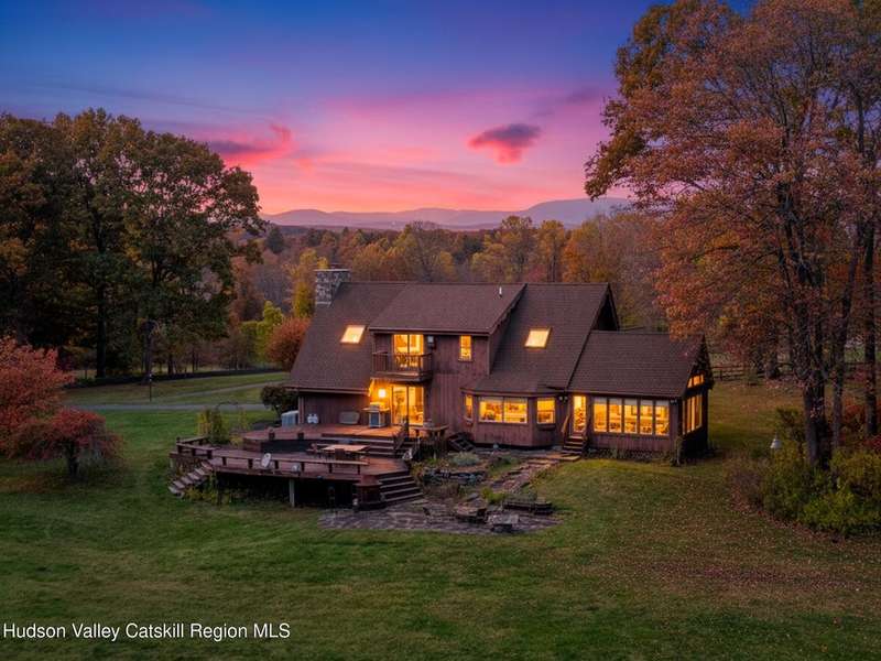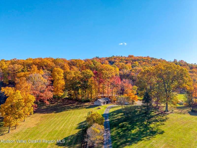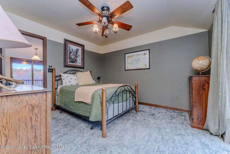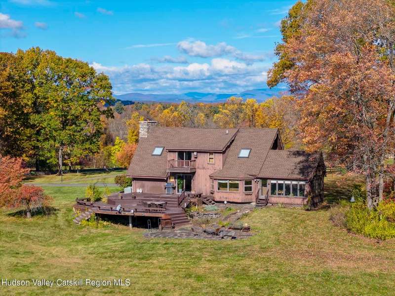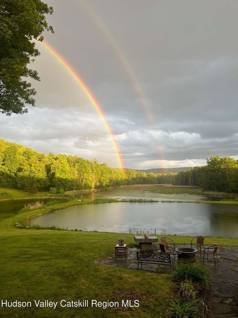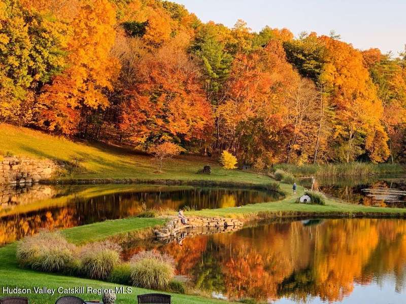 Escape to your own private retreat nestled in the woods! This 3-bedroom, 1.5 bath home offers the perfect blend of comfort and country charm. The spacious kitchen is designed for entertaining, with ample counter space and room for gathering both indoors as well as flowing out onto the two tiered deck overlooking the ponds and a waterfall that can be turned on simply by a switch in the home. Work from home or host extended family or friends with an additional flex room on the first floor. Unwind by the cozy fireplace in the living room on crisp winter evenings, or step outside and experience the serenity of the forest, open meadows, and water views. Upstairs, you will find 3 spacious bedrooms and an open sitting area complete with gorgeous views. Enjoy 18.3 secluded acres featuring 4 stocked ponds, ideal for fishing, reflection, and quiet afternoons outdoors. A 3-stall barn with tack room electric and water provides space for horses, hobbies, or storage, while the large detached garage adds even more room for vehicles and equipment. Whether you're looking for a peaceful year-round residence or a secluded getaway, this hidden gem is perfect for those seeking privacy, adventure, and a connection to the outdoors. Located 80 miles from NYC and close and convenient to historic Kingston, your peaceful retreat awaits in the heart of the Hudson Valley.