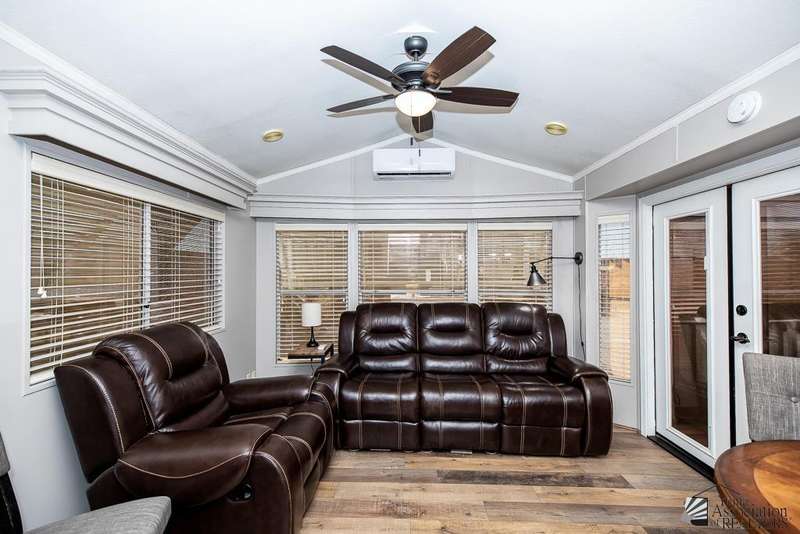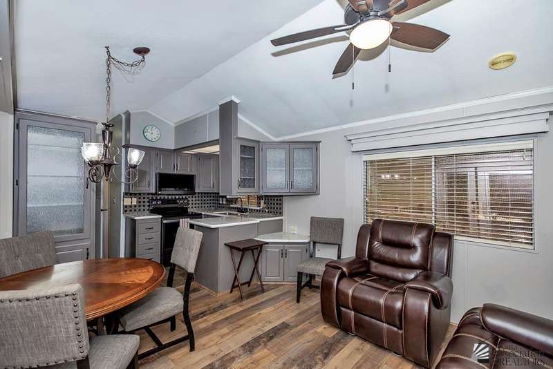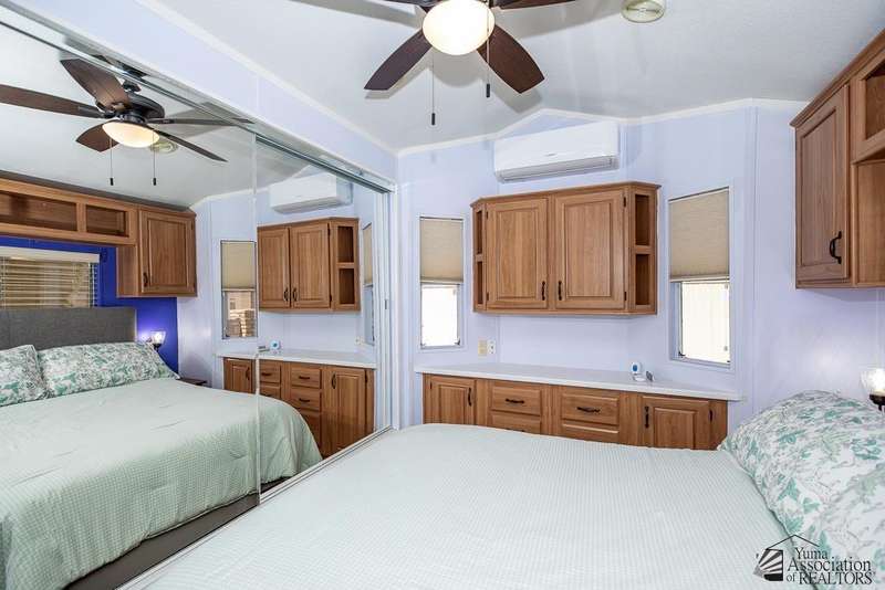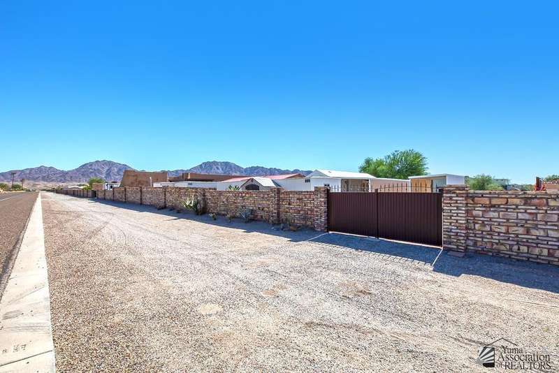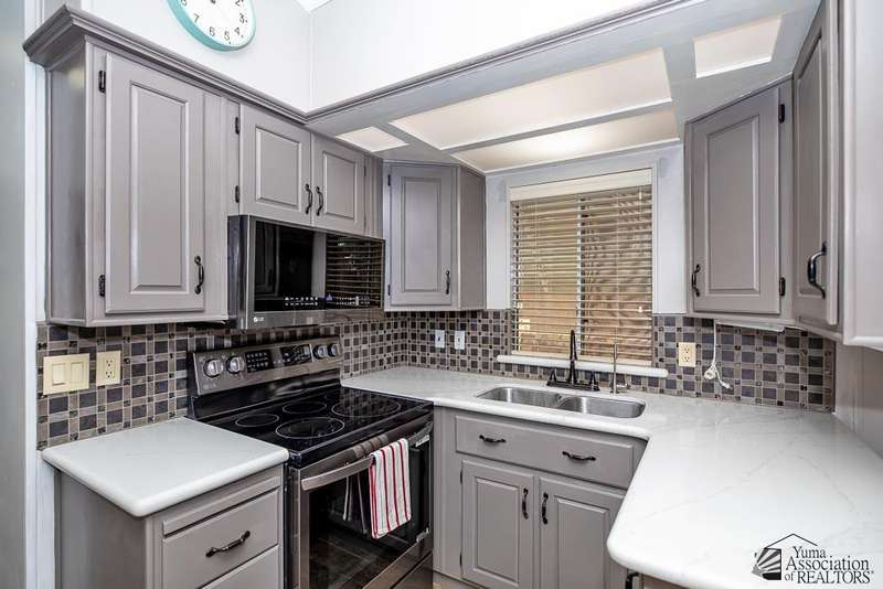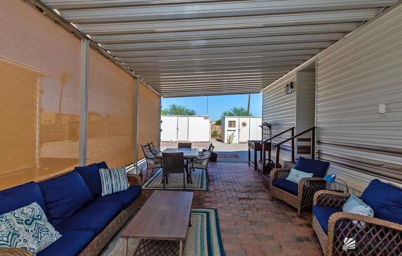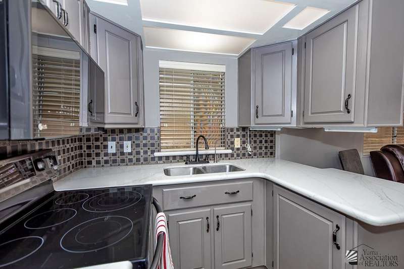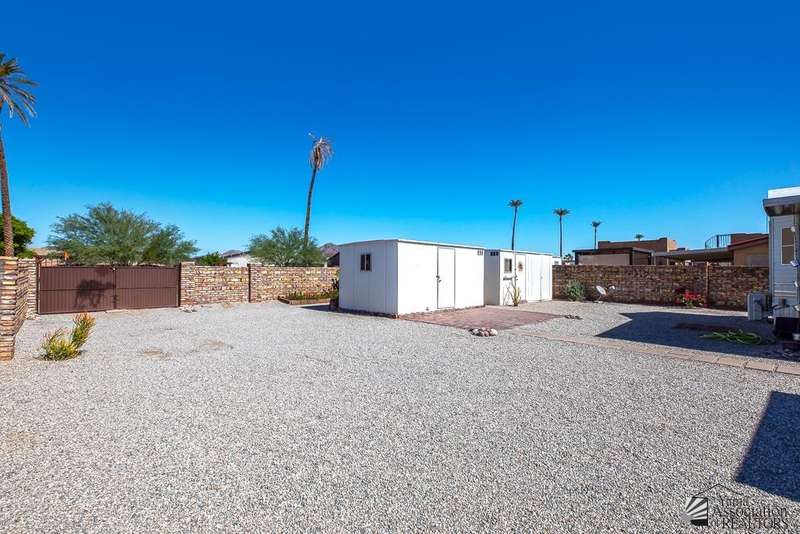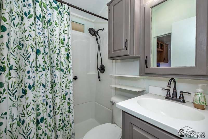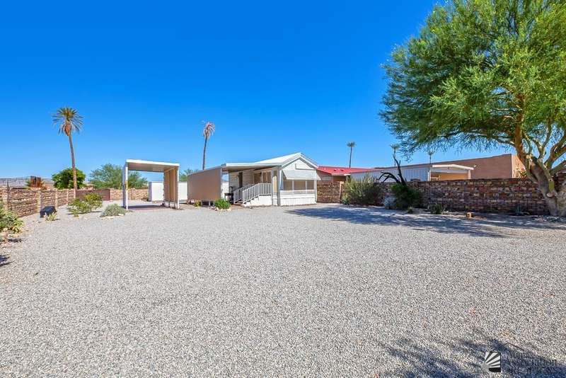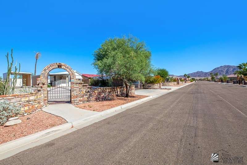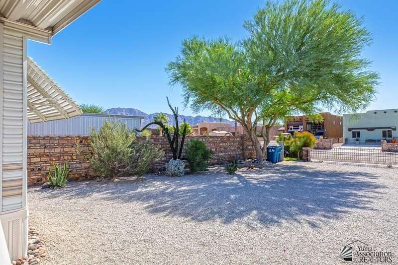 Located in Yuma’s Foothills area, this remodeled park model offers quality, comfort, and convenience for seasonal visitors or full-time residents who value easy living and low maintenance. The home features quartz countertops, warm, durable plank flooring that gives the home a polished look and low-maintenance living, and vaulted ceilings that make the main living and dining space feel open and inviting. All furnishings convey with the sale, including a newer motorized scooter. Two efficient mini-split systems provide year-round comfort. The property is fully fenced with an electric double gate in front and a second double gate in the back, allowing easy pull-through RV access. There’s full RV hookup service with 50-amp power, water, and sewer. Two large metal sheds provide excellent functionality—both equipped with power and lighting. One includes a washer and gas dryer, and the other is open with shelving, offering plenty of flexibility for use as a workshop, hobby room, or extra storage space. A third smaller Rubbermaid shed provides additional storage. The yard is beautifully landscaped and designed for easy upkeep, with beautiful mountain views and multiple outdoor sitting areas. A covered patio with furniture and a single carport provide shade and additional comfort. This property stands out for its upgrades, functionality, and thoughtful layout. Close to Yuma’s major employers in healthcare, military, agriculture, and logistics, and within minutes of golf, hiking, and local dining, it offers a move-in-ready option with features rarely found at this price point in the Foothills.