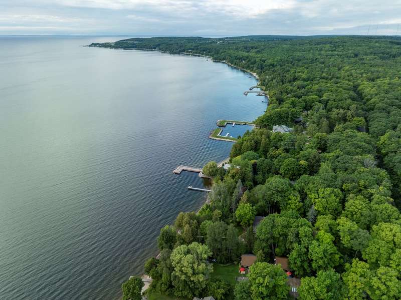 Zoned High-Density Residential w 100' of Bay Shore frontage, this property offers exceptional potential for hobby resort or waterfront development. Sellers have Hotel/Motel permit which includes four furnished vintage cottages--each 2 bedrooms, 1 bath, w/ freestanding gas stove--plus a 4,800 sq ft, 6-bedroom residence (7100sq/ft. total). Heating for main residence is currently a low pressure oil-fired hydronic boiler. Bath on lower level is 3/4 bathroom w/ shower & sink. Two field stone fireplaces with a hand-picked Door County stone staircase down to the water add to the iconic Door County authenticity of Andropolis Waterfront cottages- a rare opportunity to acquire a resort business and piece of Door County history! Commercial MLS #144474.